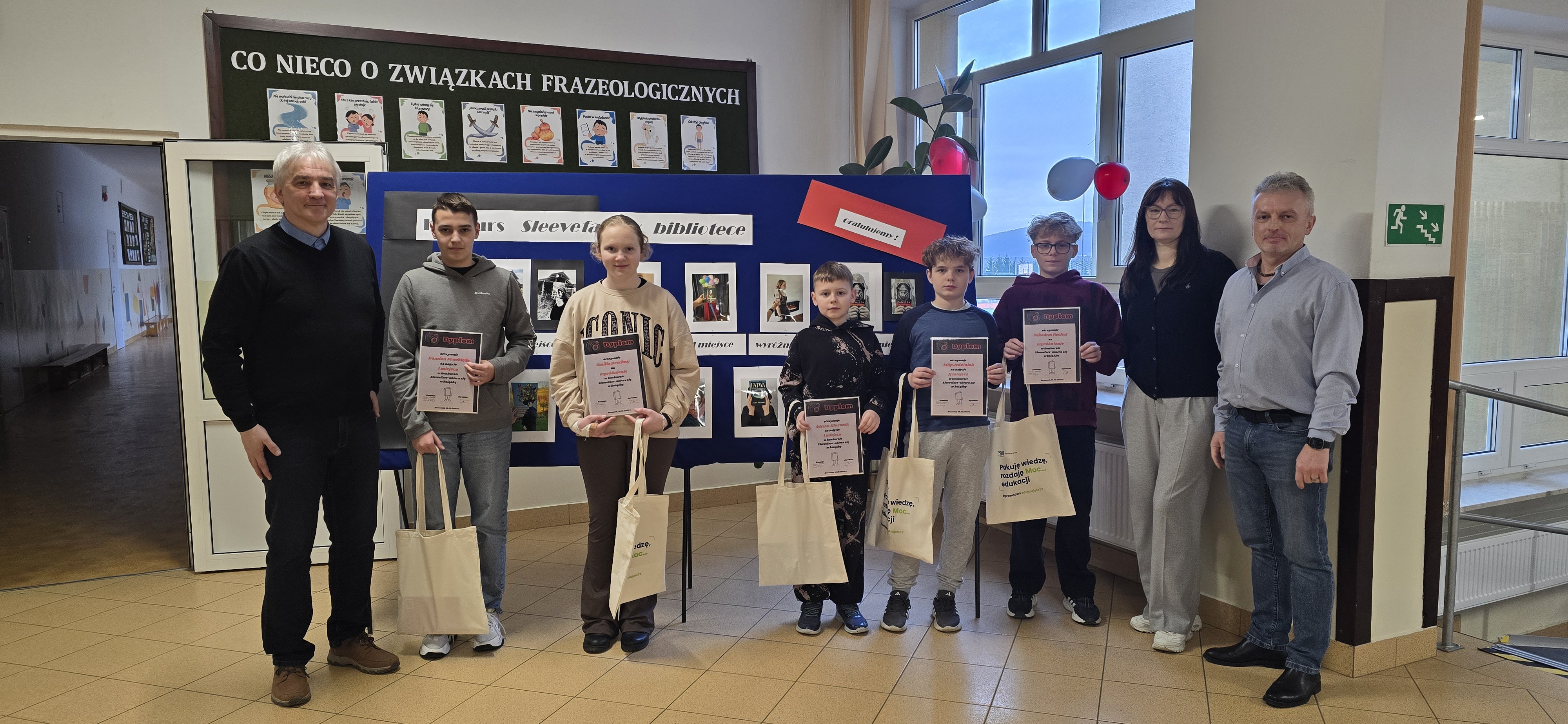 Konkurs pokazał, że biblioteka to nie tylko cisza i powaga. To przestrzeń spotkań, zabawy i twórczych eksperymentów. Młodzież udowodniła, że książka może inspirować na wiele sposobów – nie tylko treścią, ale też formą. Jeśli ktoś jeszcze uważa, że biblioteka to nudne miejsce, powinien koniecznie zajrzeć na naszą wystawę konkursowych prac. Tu książki naprawdę wychodzą do ludzi – dosłownie!