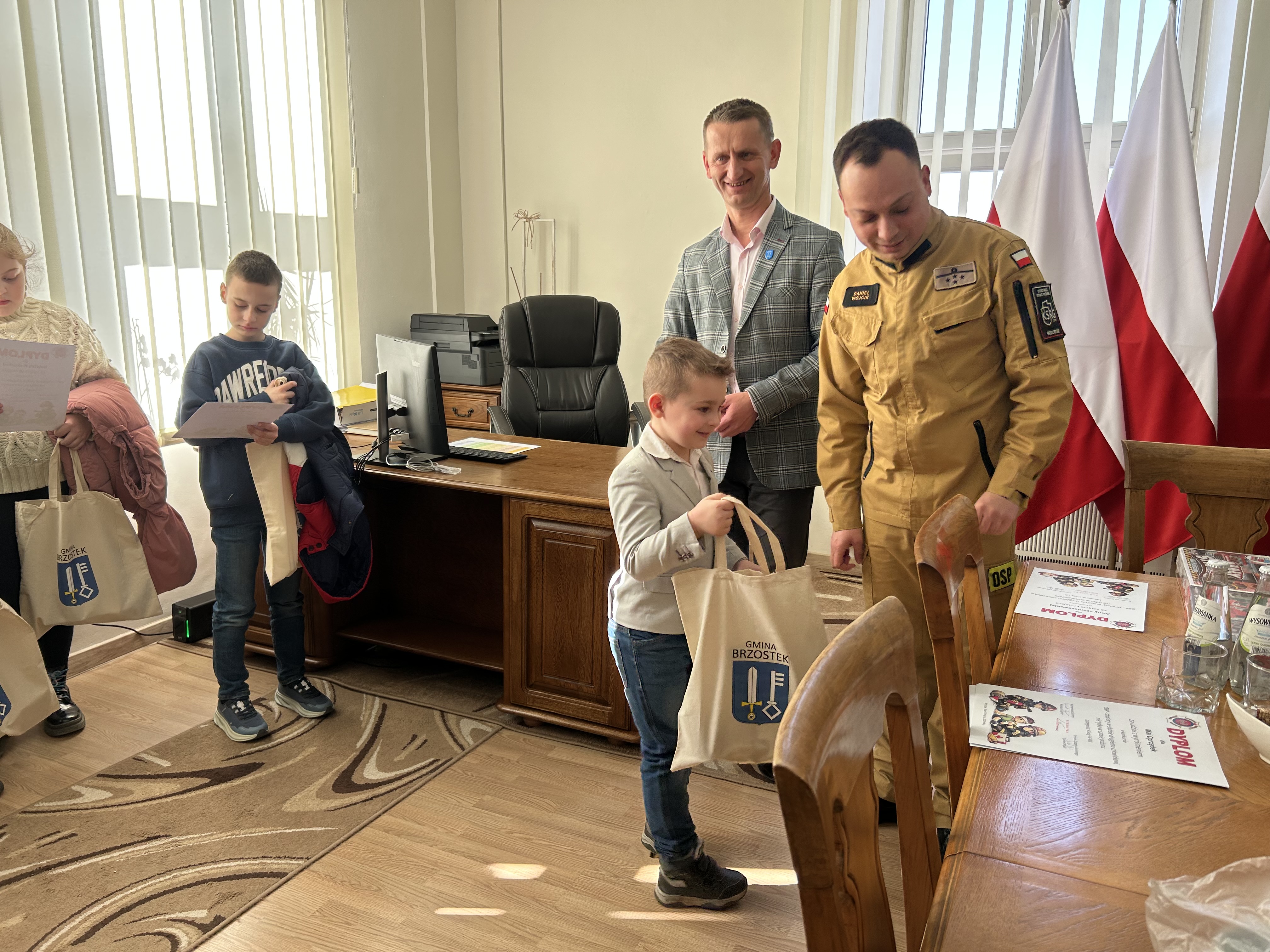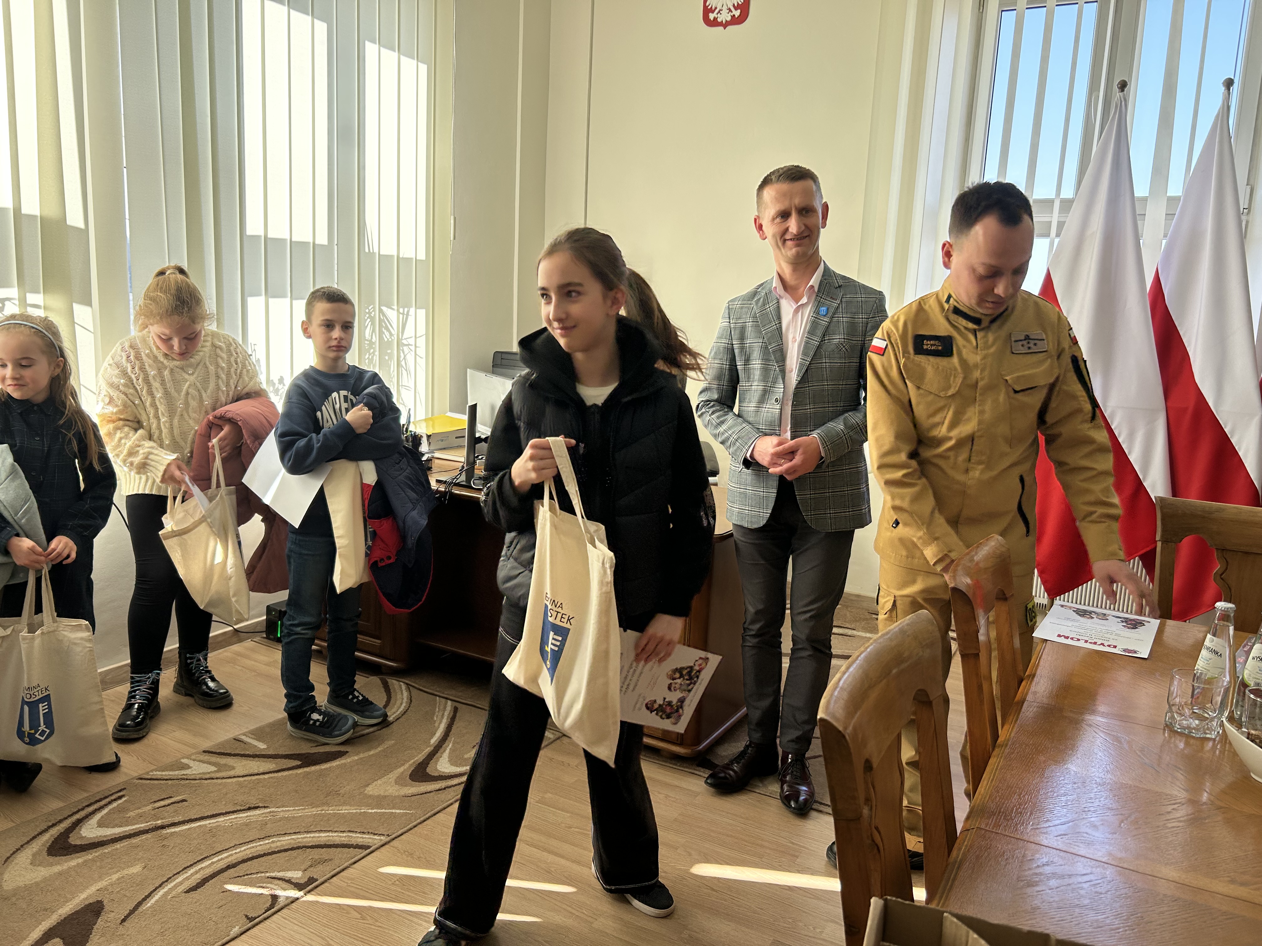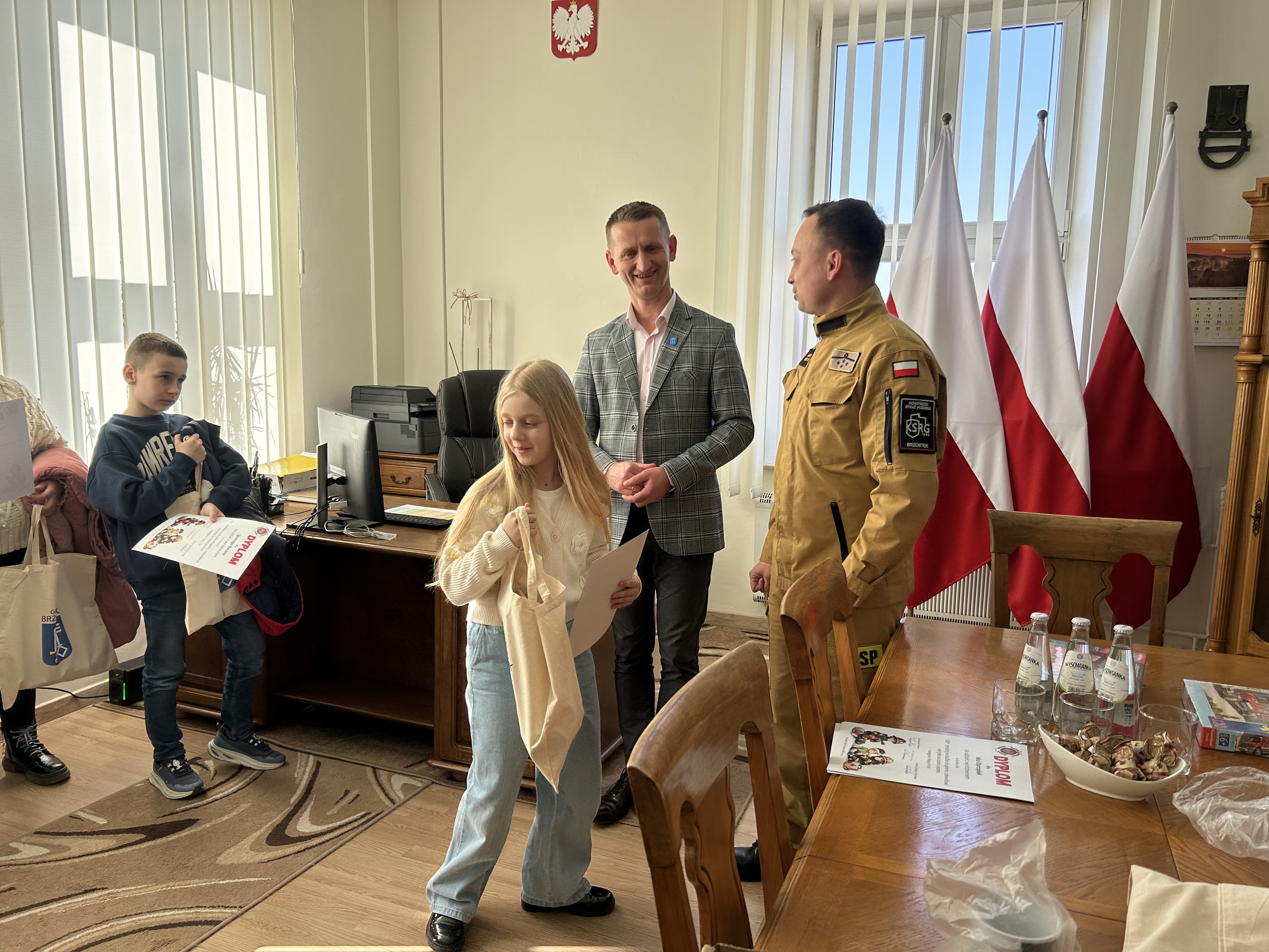 Podczas podsumowania konkursu burmistrz Zbigniew Kowalski oraz prezes Zarządu Gminnego Daniel Wójcik podziękowali uczniom za udział i podkreślili ważną rolę strażaków w życiu lokalnej społeczności.