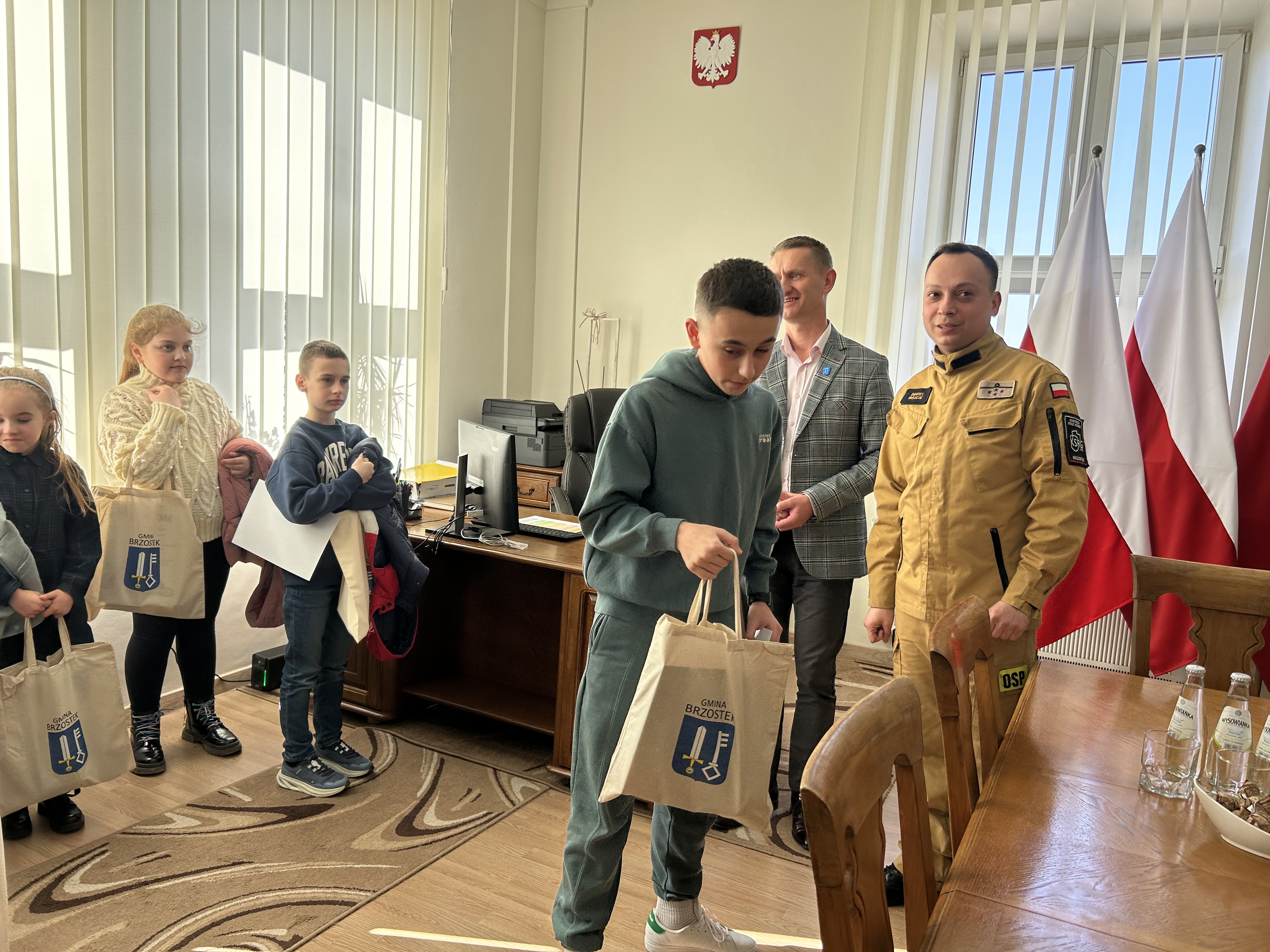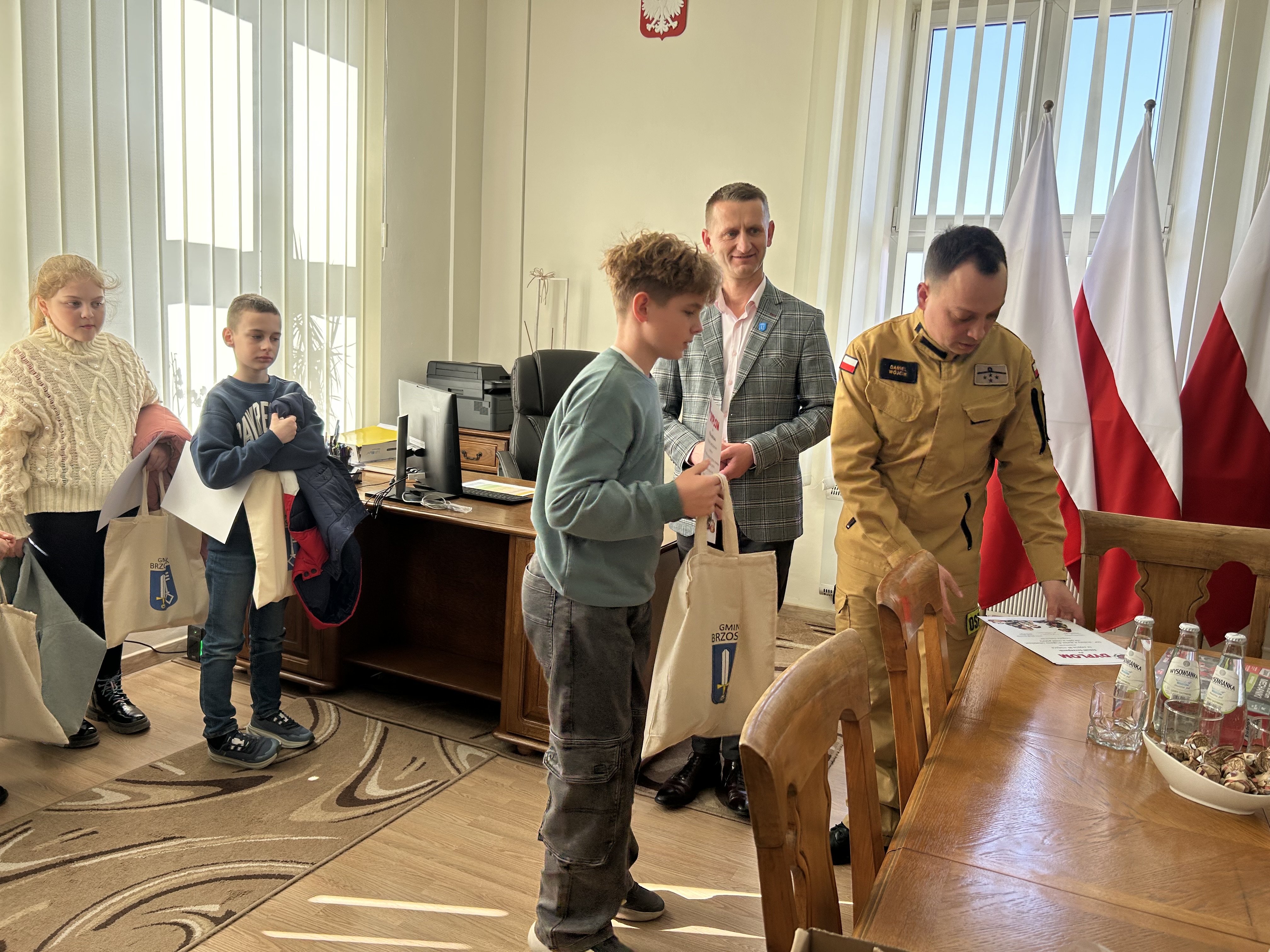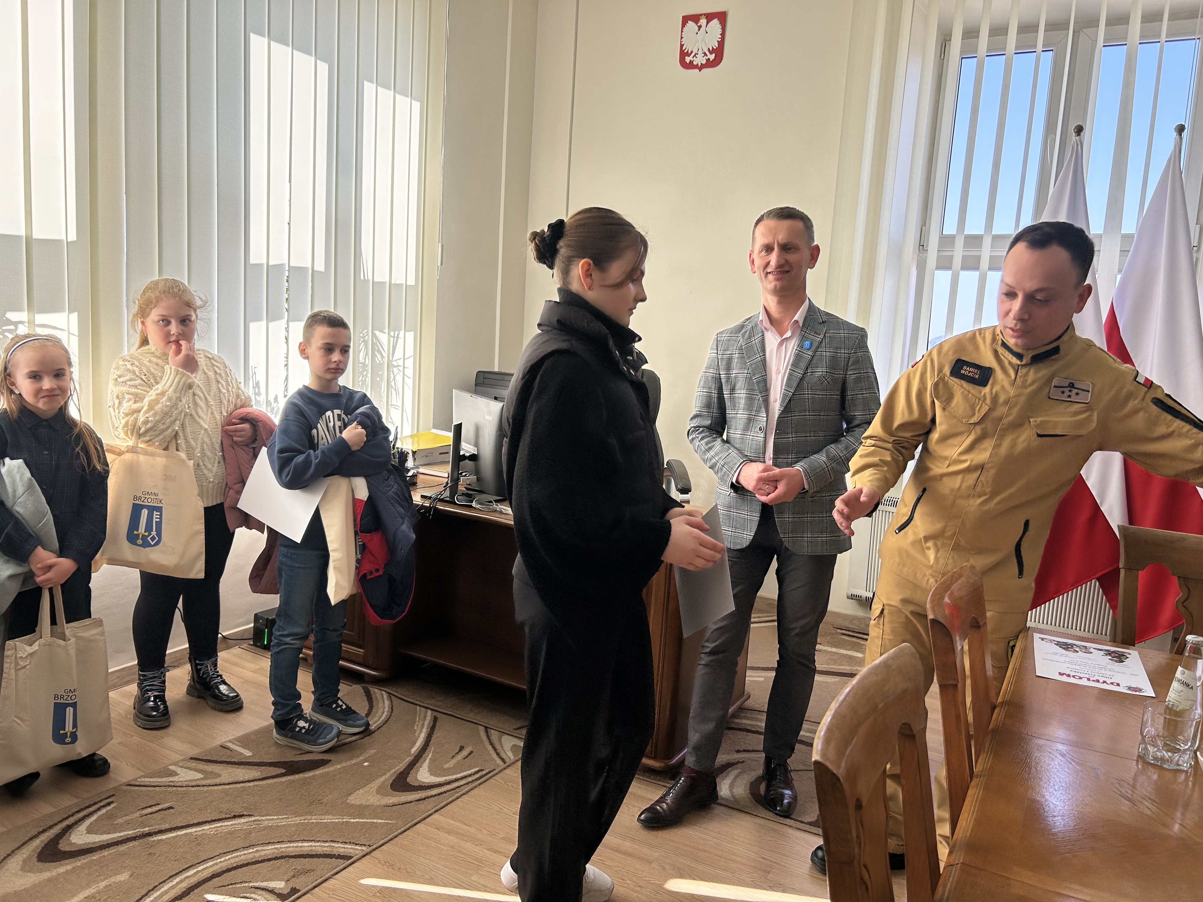 Podczas podsumowania konkursu burmistrz Zbigniew Kowalski oraz prezes Zarządu Gminnego Daniel Wójcik podziękowali uczniom za udział i podkreślili ważną rolę strażaków w życiu lokalnej społeczności.