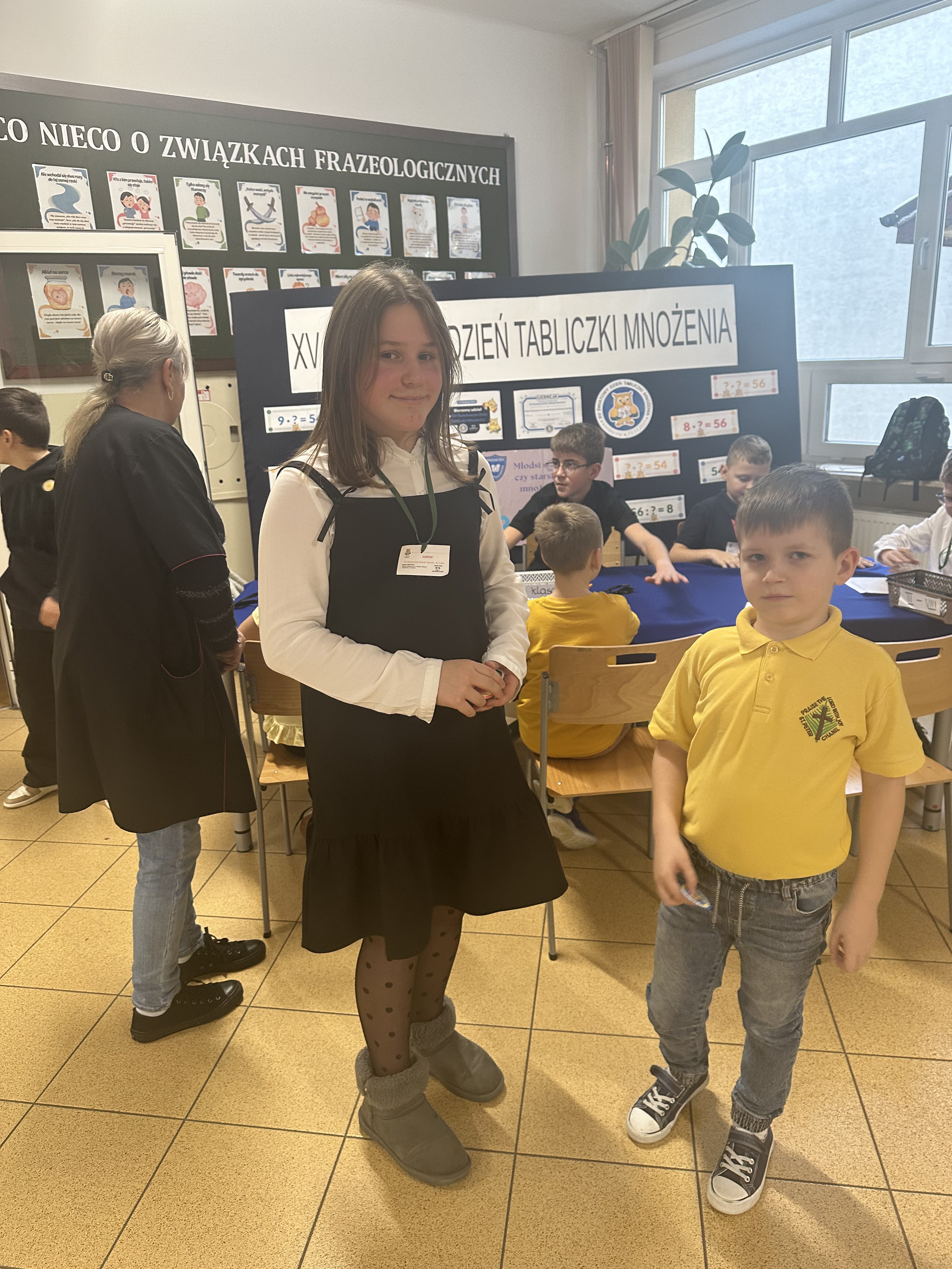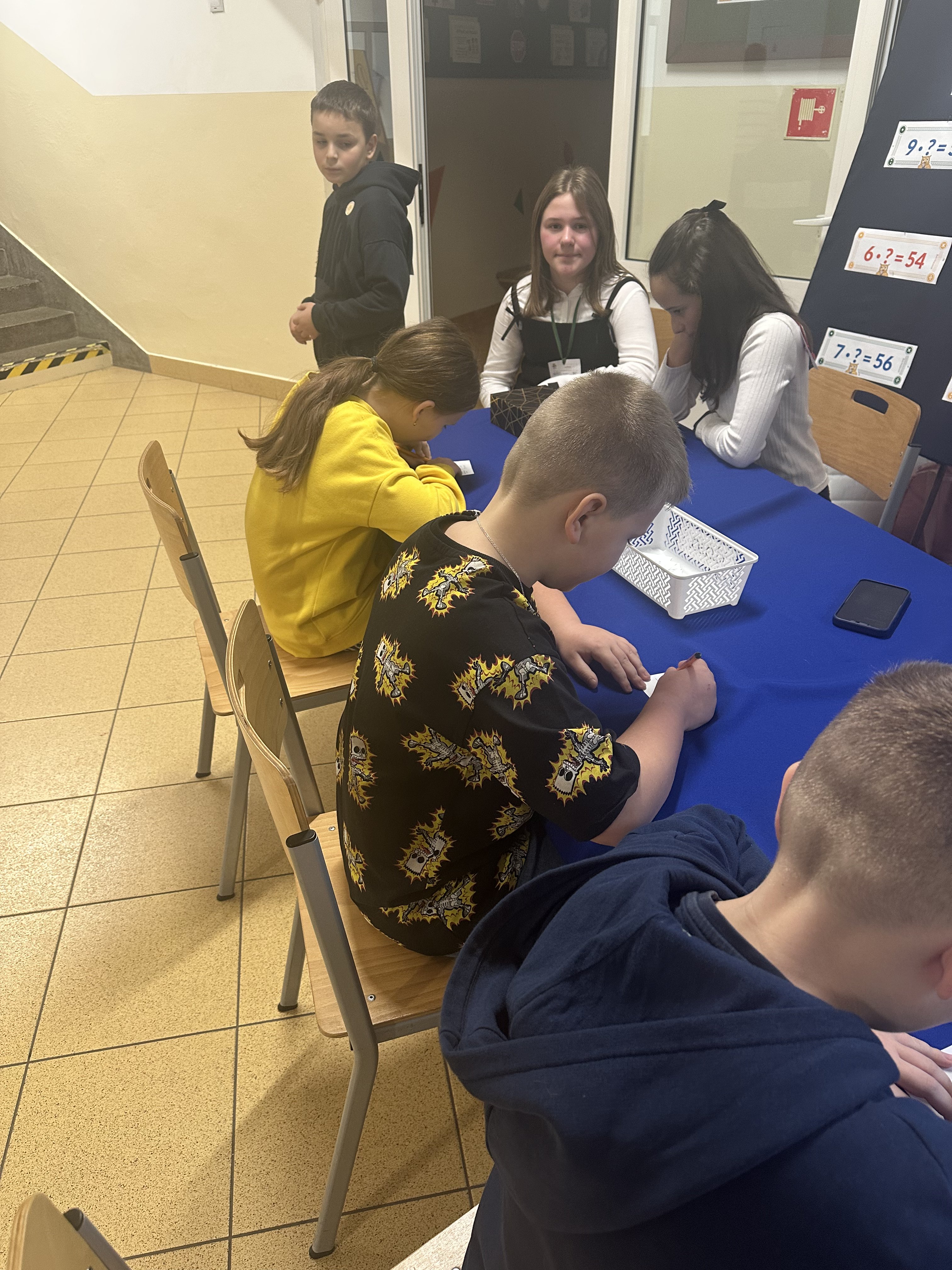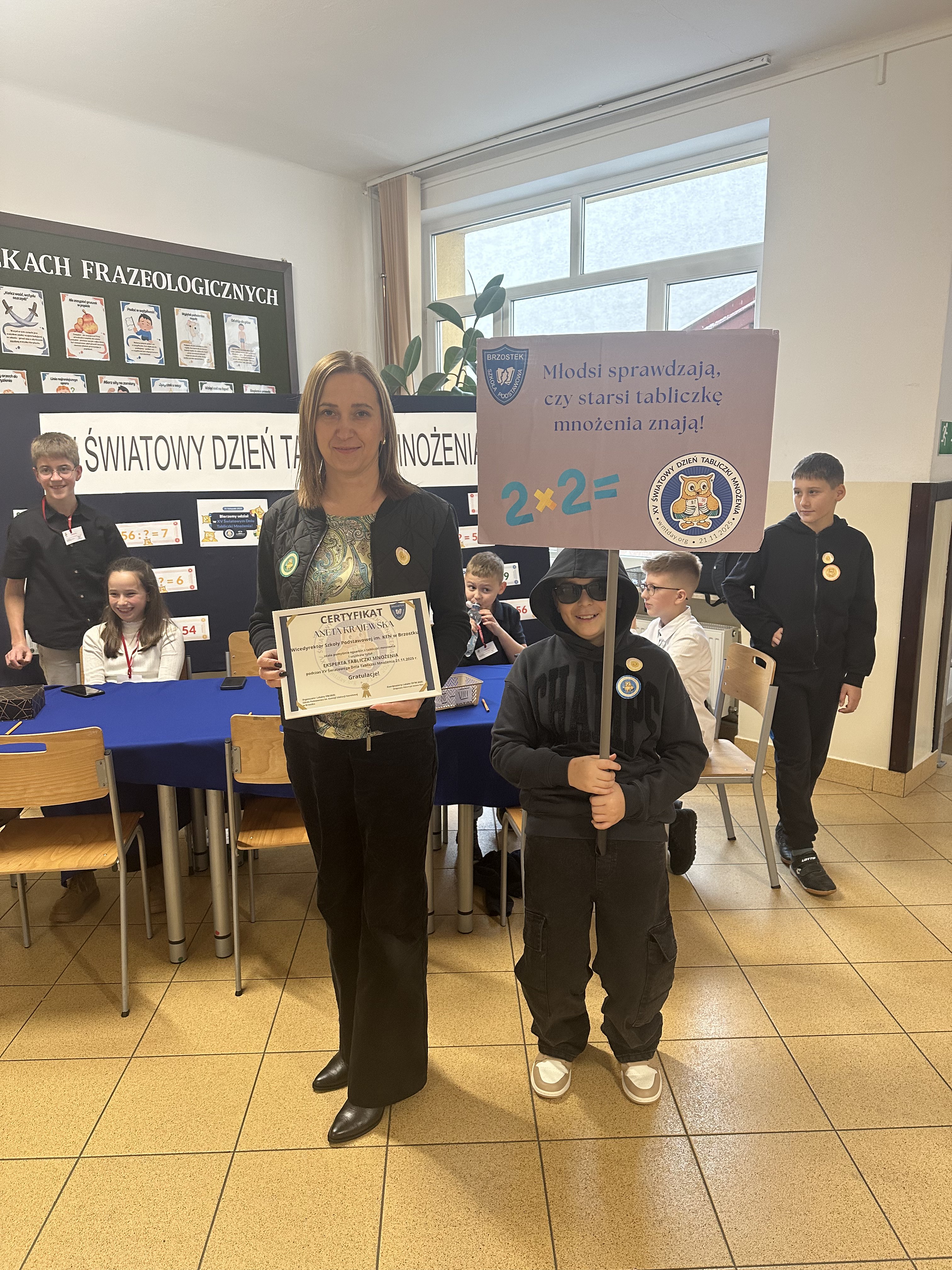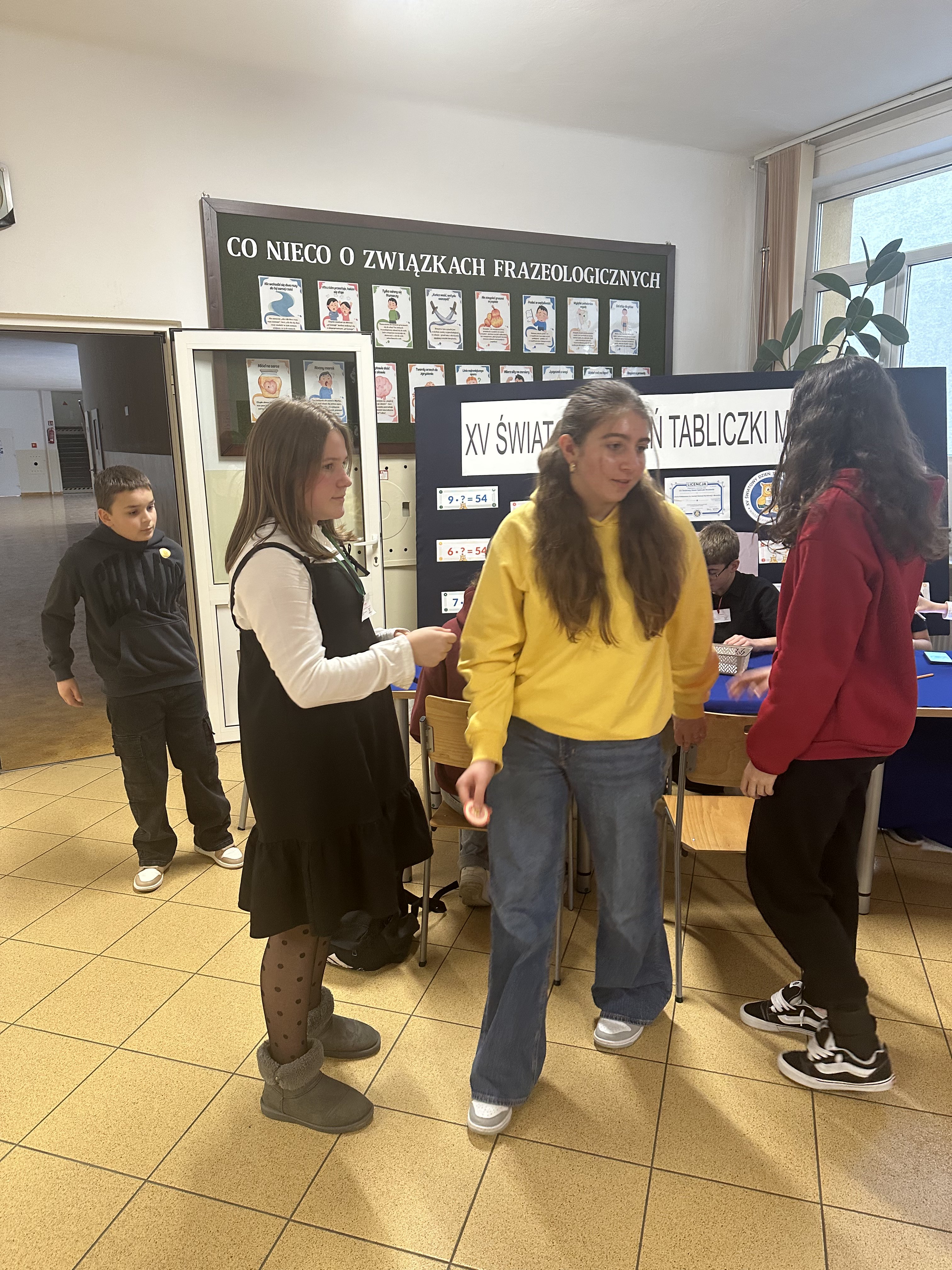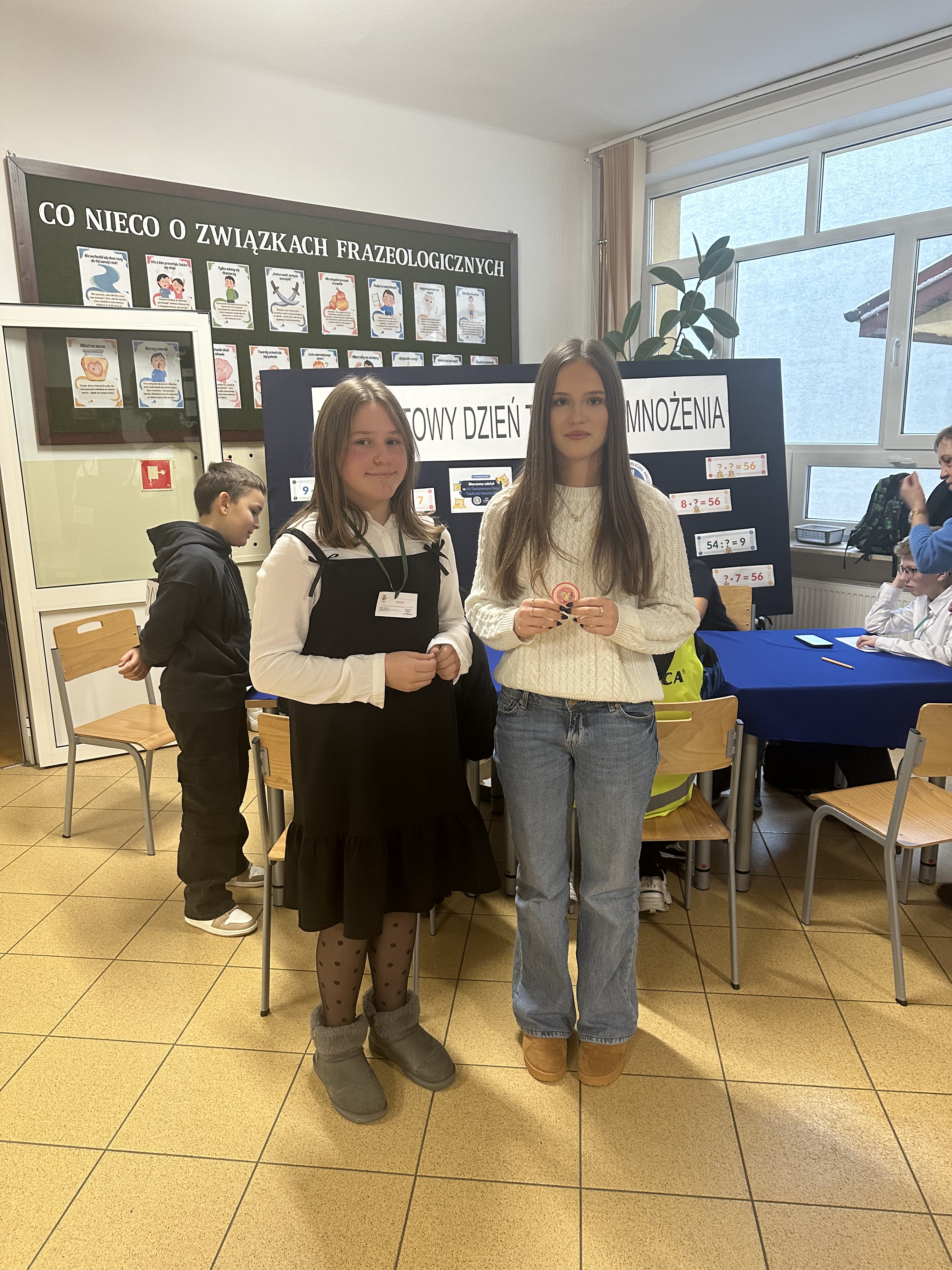 21 listopada w naszej szkole obchodziliśmy XV Światowy Dzień Tabliczki Mnożenia – wydarzenie, które od lat zachęca uczniów na całym świecie do przypomnienia sobie podstawowych faktów matematycznych w przyjemny i niecodzienny sposób. Hasłem akcji jest „Młodsi sprawdzają, czy starsi tabliczkę mnożenia znają”, dlatego tego dnia w nasze szkole na korytarzu szkolnym można było spotkać wyjątkowych egzaminatorów. Wyposażeni w losy z przykładami tabliczki mnożenia, egzaminowali nauczycieli, pracowników szkoły oraz uczniów klas starszych i młodszych. Każdy chętny mógł wziąć udział w krótkim, kilkuminutowym teście. Po prawidłowym rozwiązaniu pięciu przykładów uczestnicy otrzymywali naklejki Eksperta Tabliczki Mnożenia, co było dla nich dużą satysfakcją i powodem do dumy.