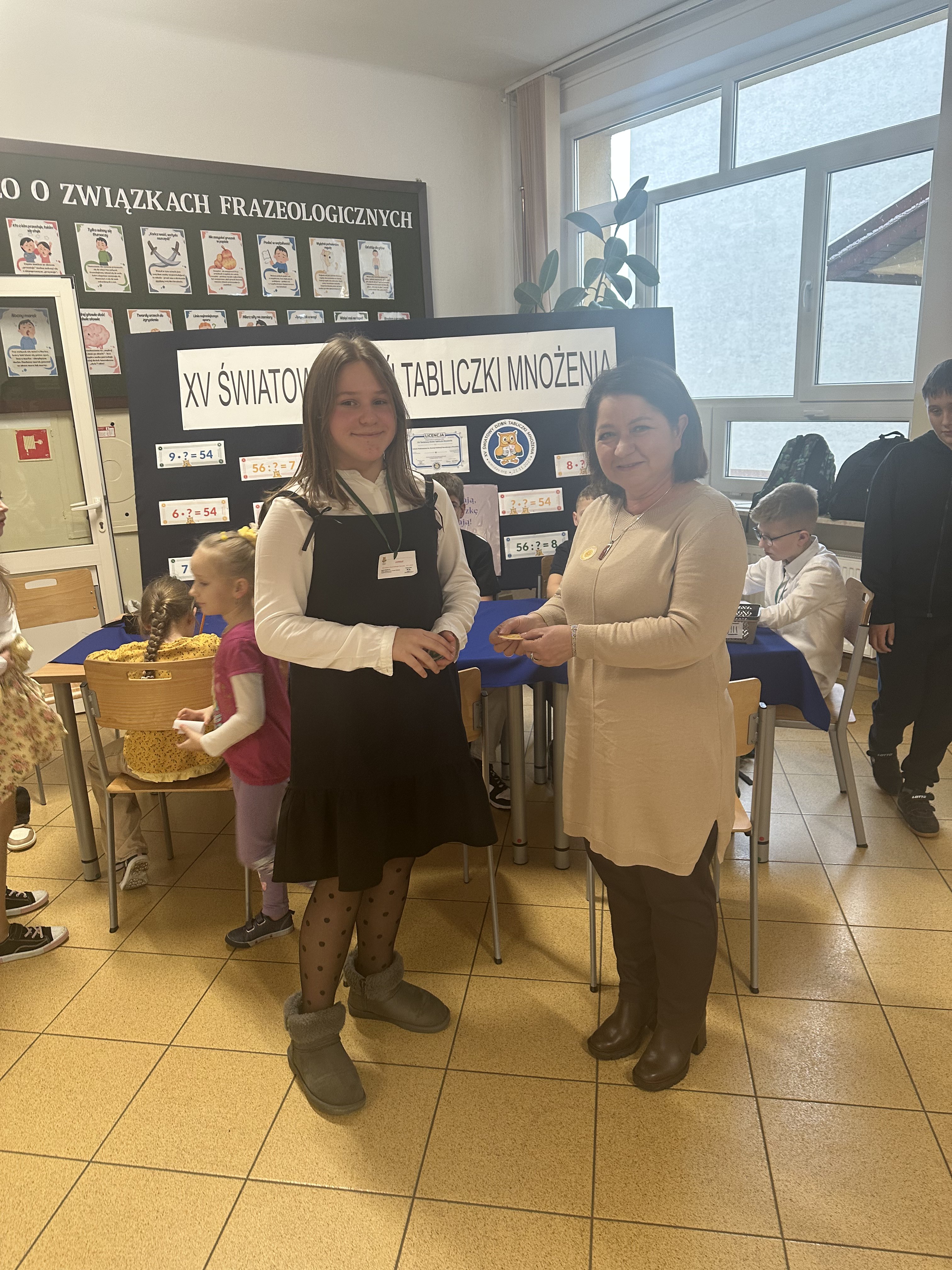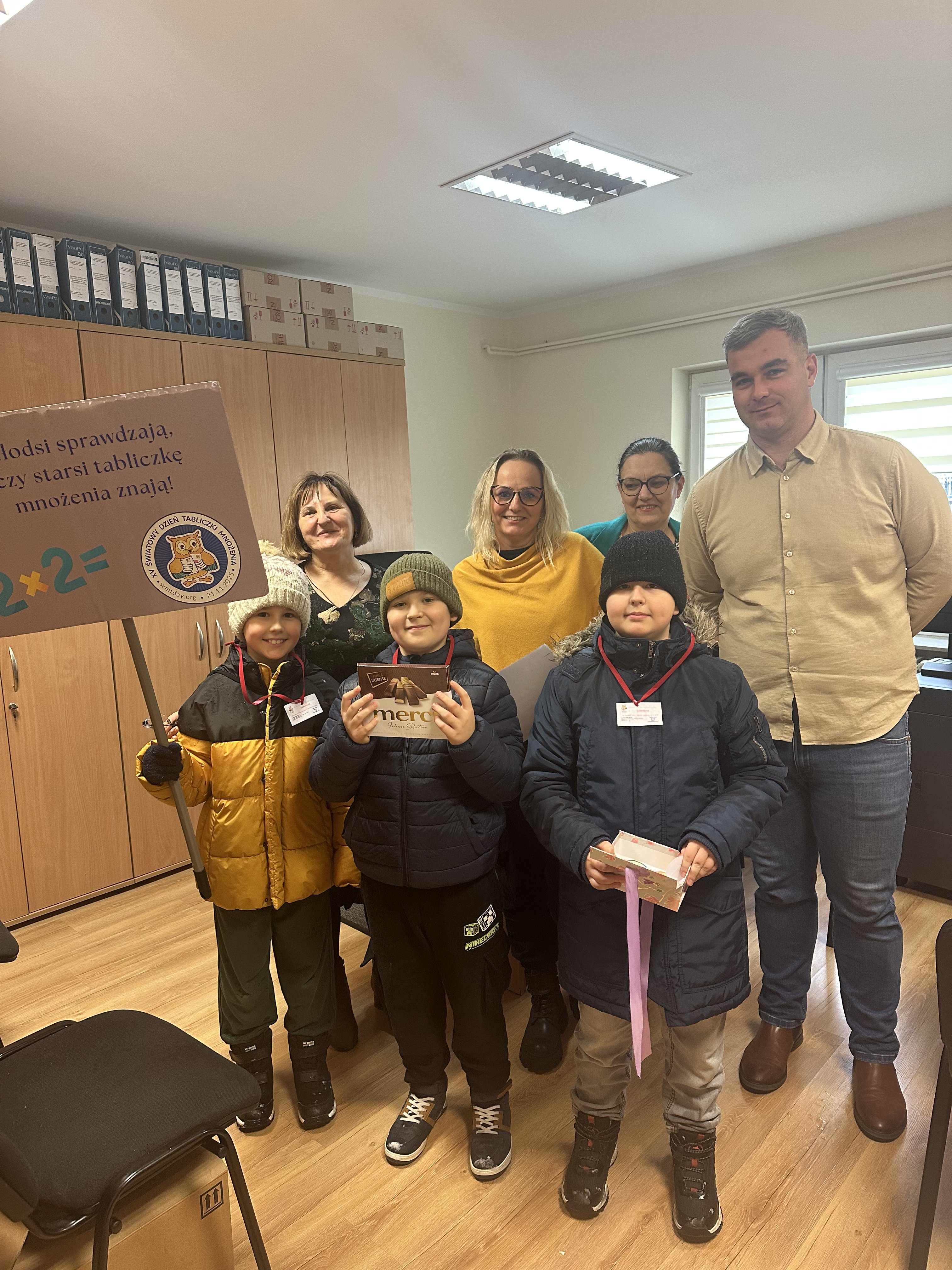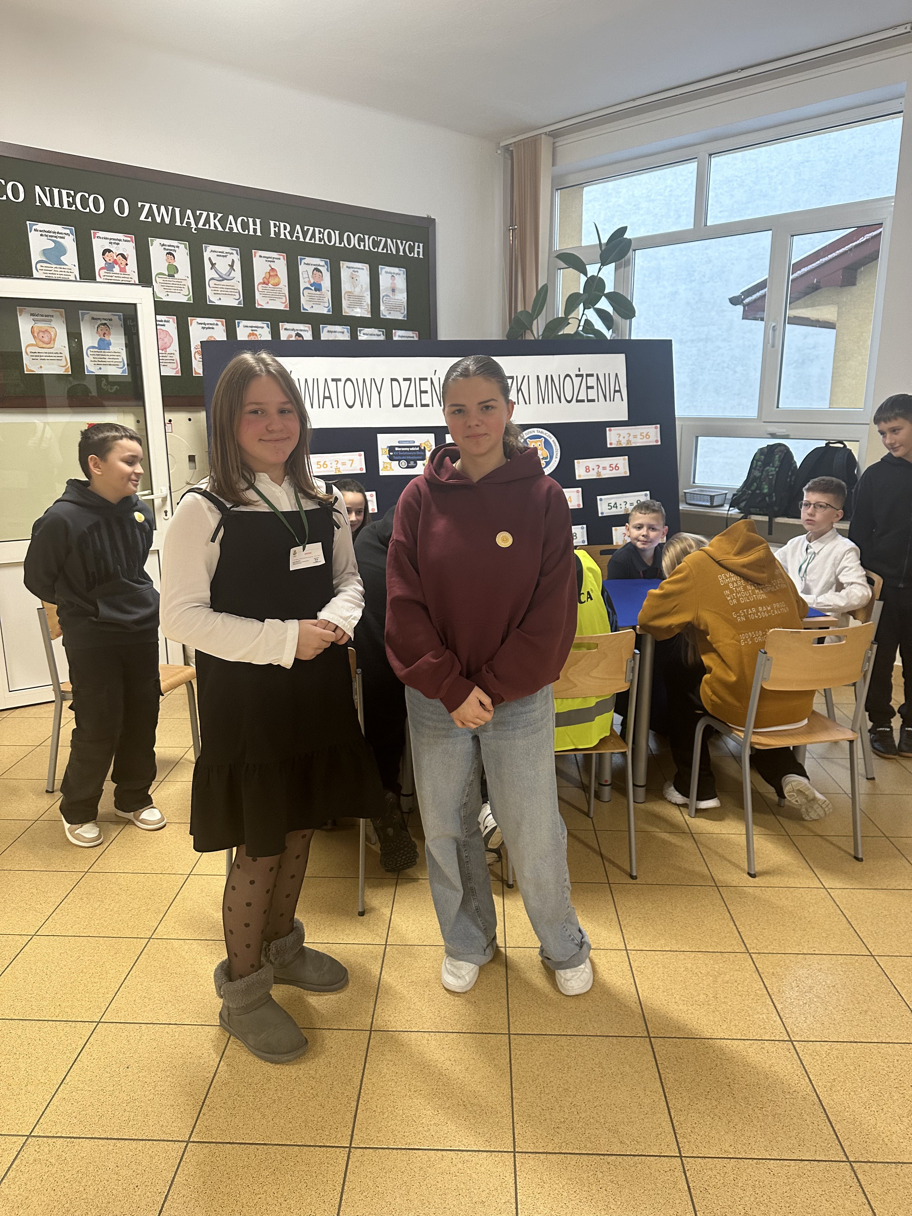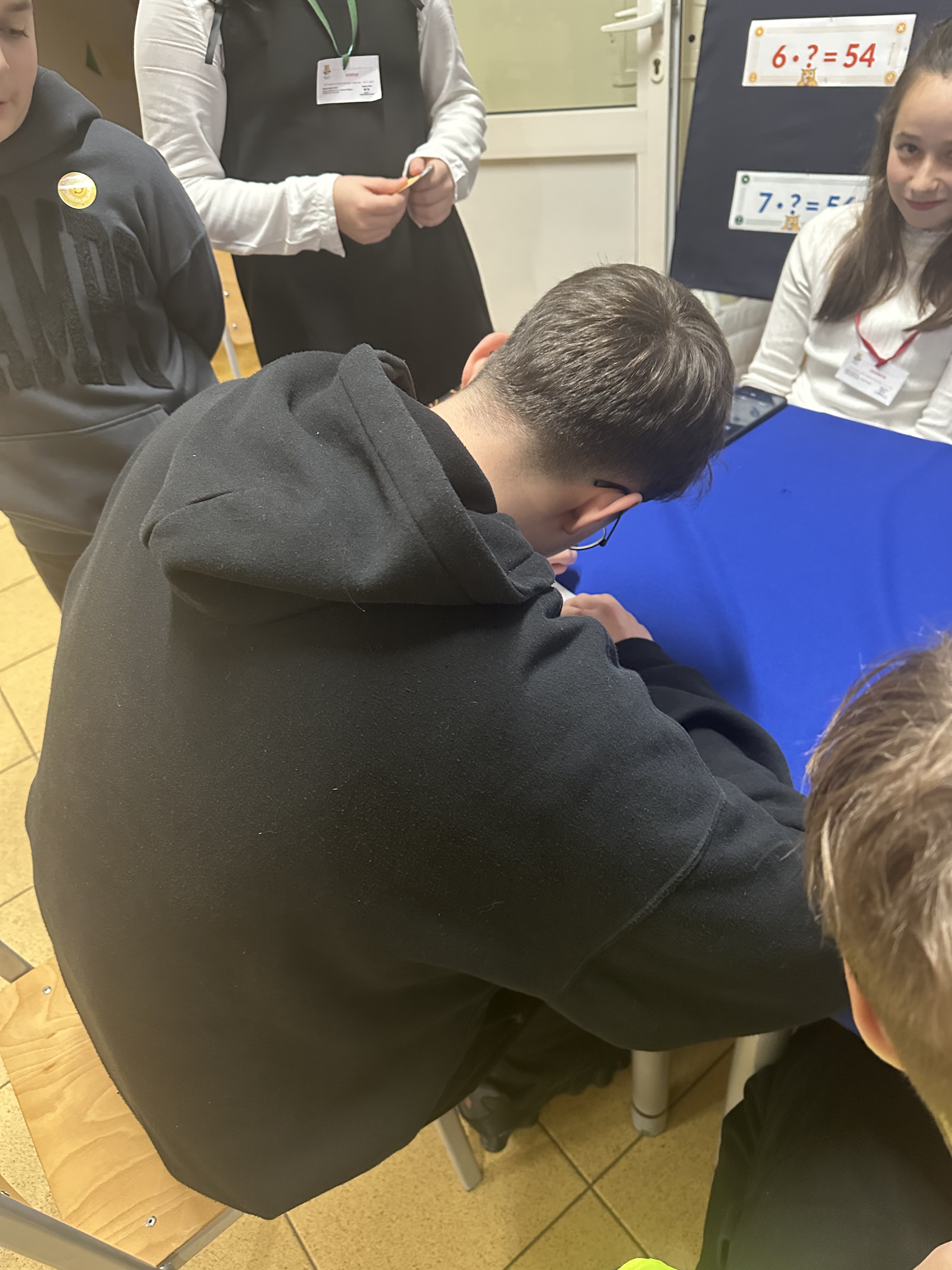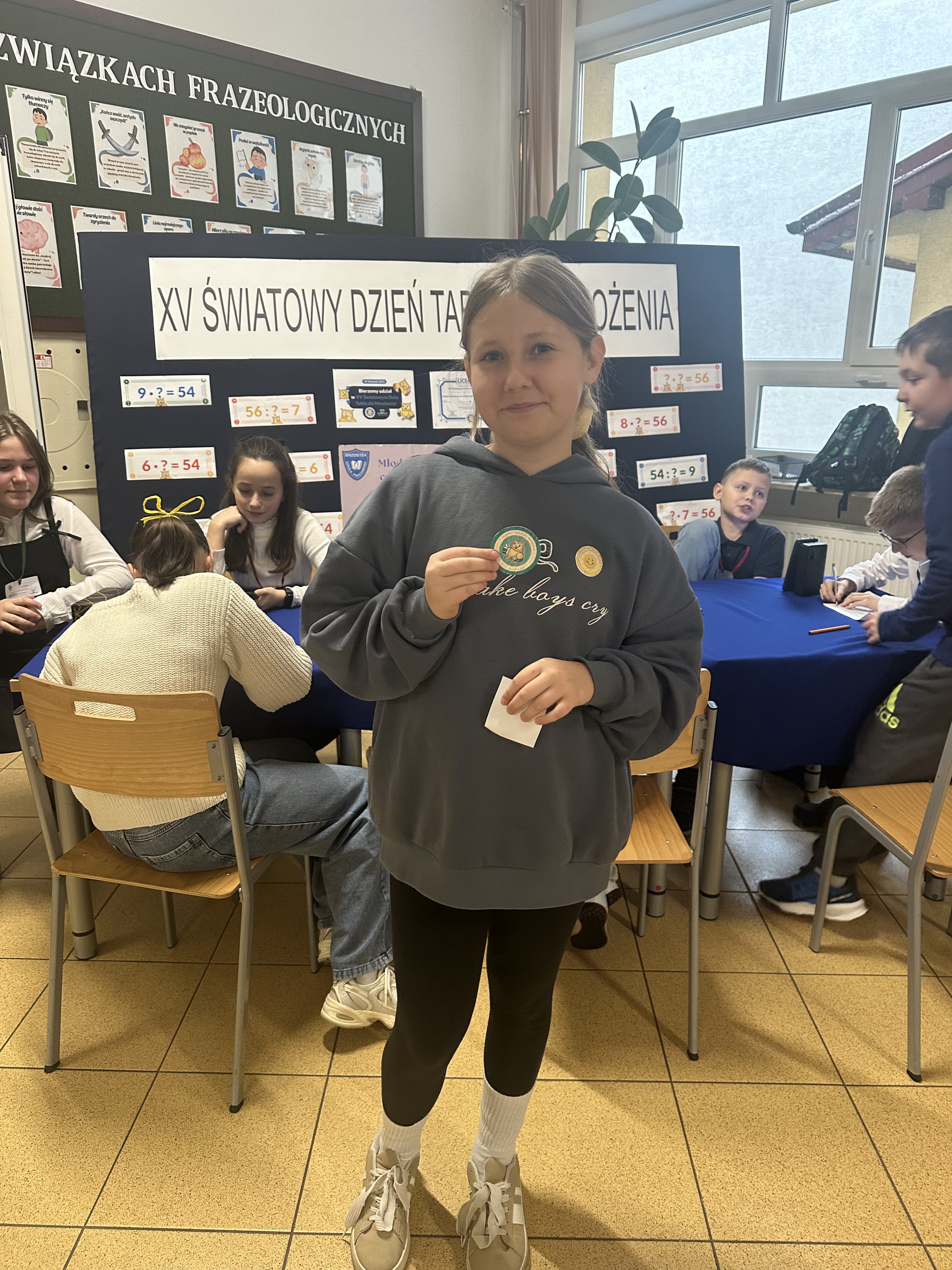 21 listopada w naszej szkole obchodziliśmy XV Światowy Dzień Tabliczki Mnożenia – wydarzenie, które od lat zachęca uczniów na całym świecie do przypomnienia sobie podstawowych faktów matematycznych w przyjemny i niecodzienny sposób. Hasłem akcji jest „Młodsi sprawdzają, czy starsi tabliczkę mnożenia znają”, dlatego tego dnia w nasze szkole na korytarzu szkolnym można było spotkać wyjątkowych egzaminatorów. Wyposażeni w losy z przykładami tabliczki mnożenia, egzaminowali nauczycieli, pracowników szkoły oraz uczniów klas starszych i młodszych. Każdy chętny mógł wziąć udział w krótkim, kilkuminutowym teście. Po prawidłowym rozwiązaniu pięciu przykładów uczestnicy otrzymywali naklejki Eksperta Tabliczki Mnożenia, co było dla nich dużą satysfakcją i powodem do dumy.