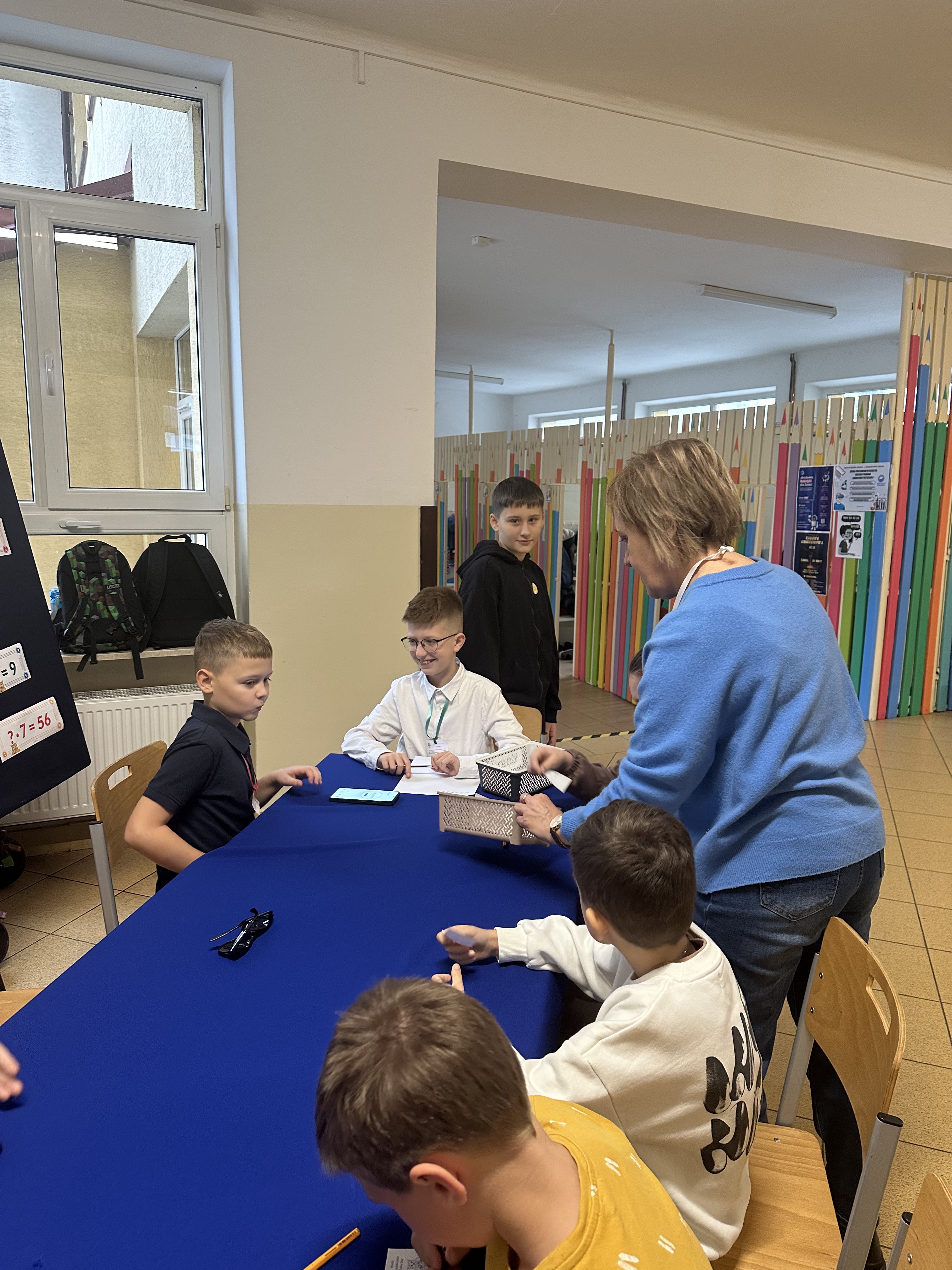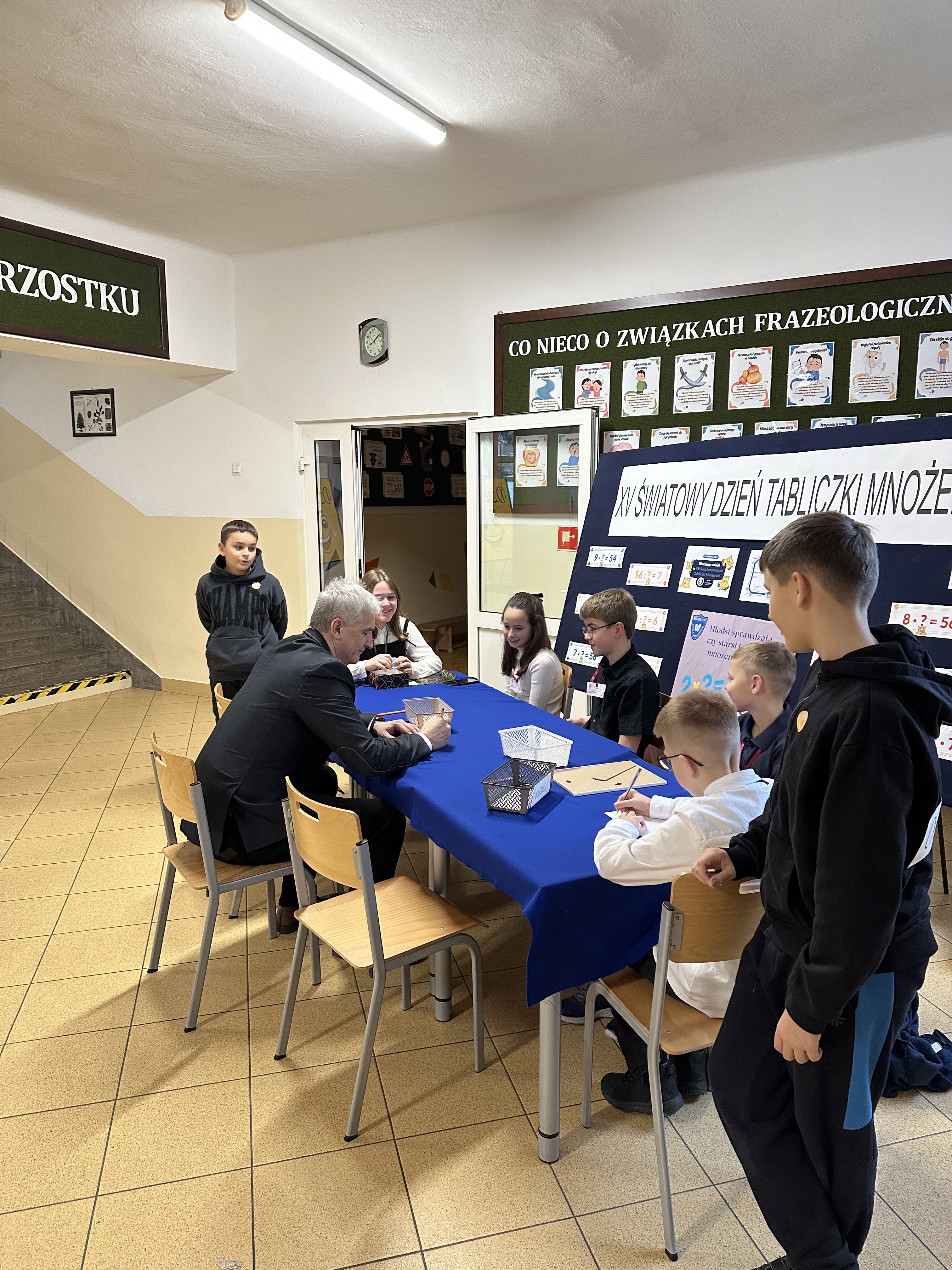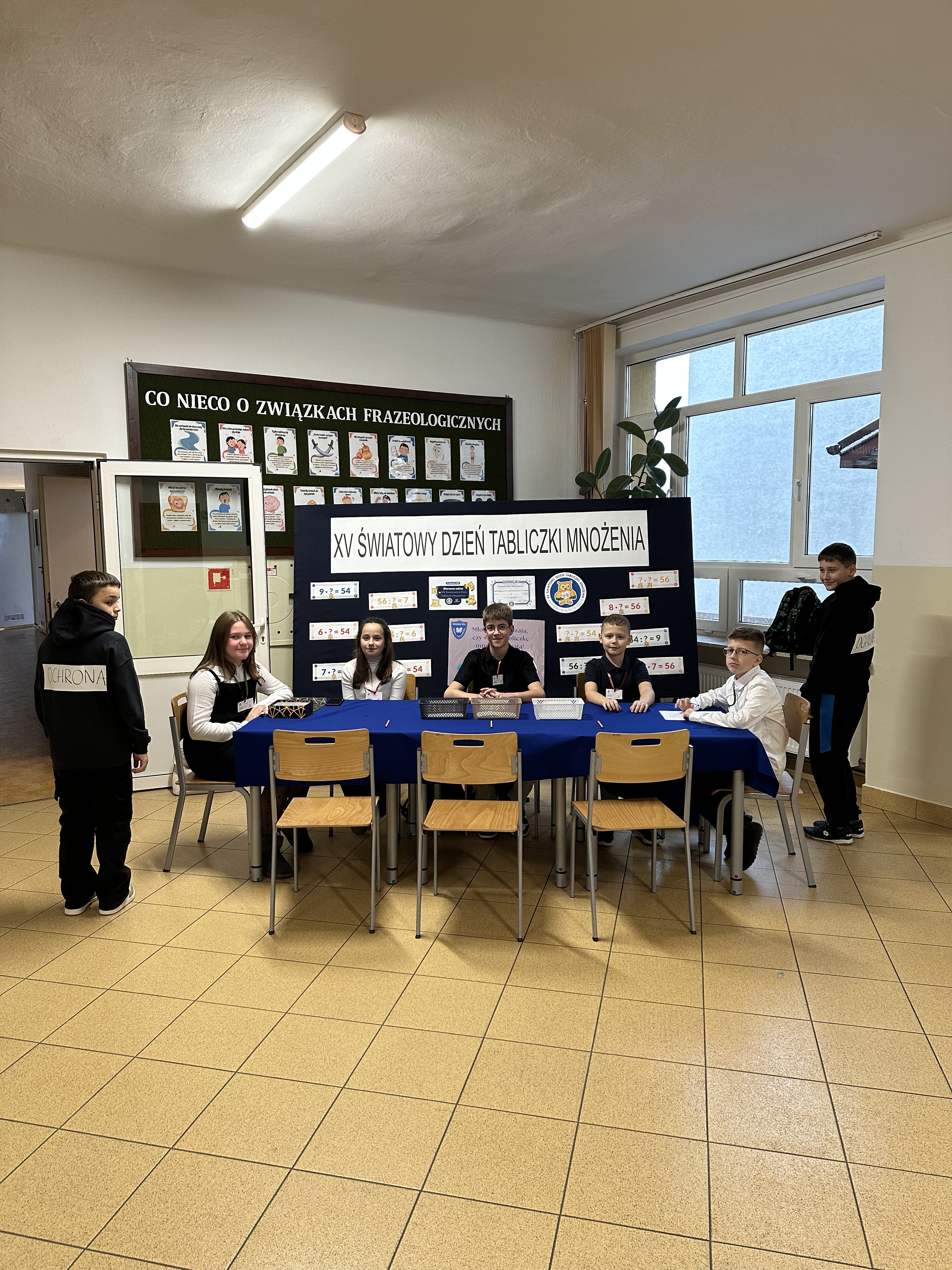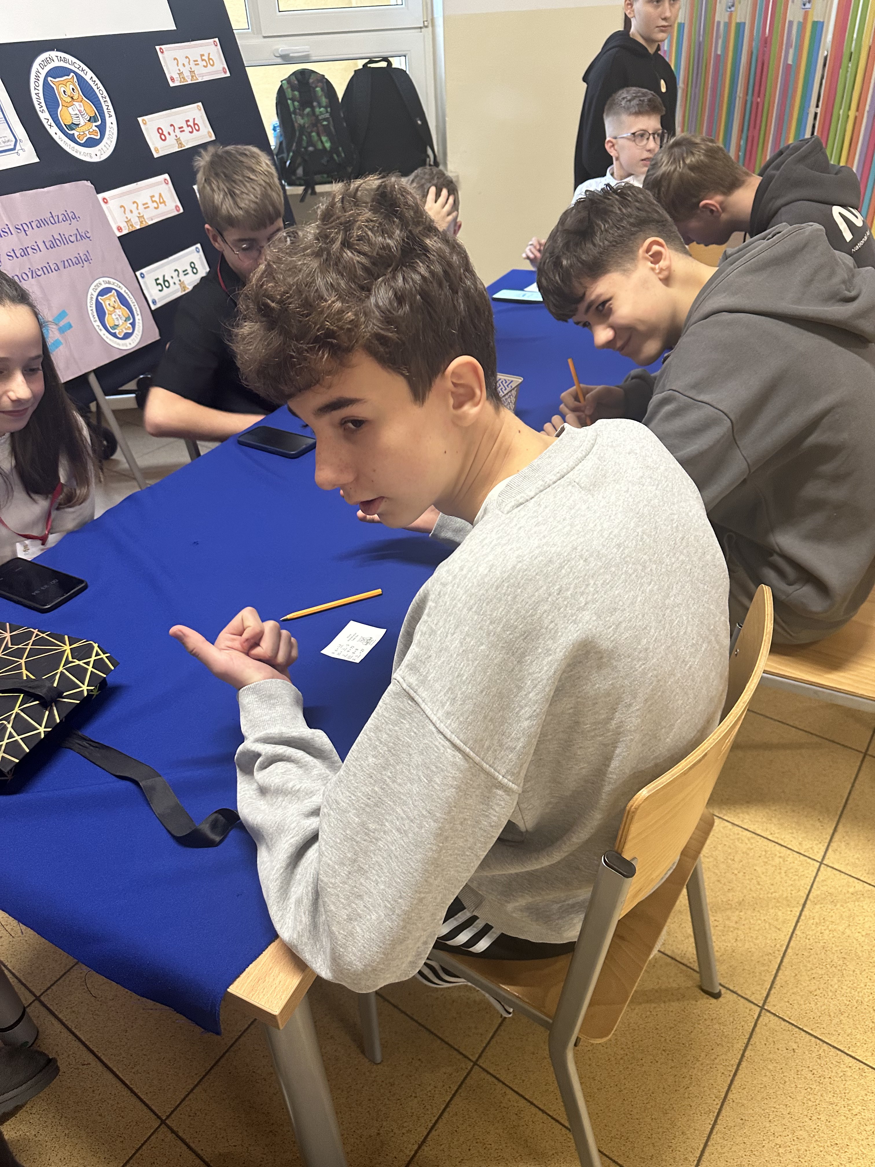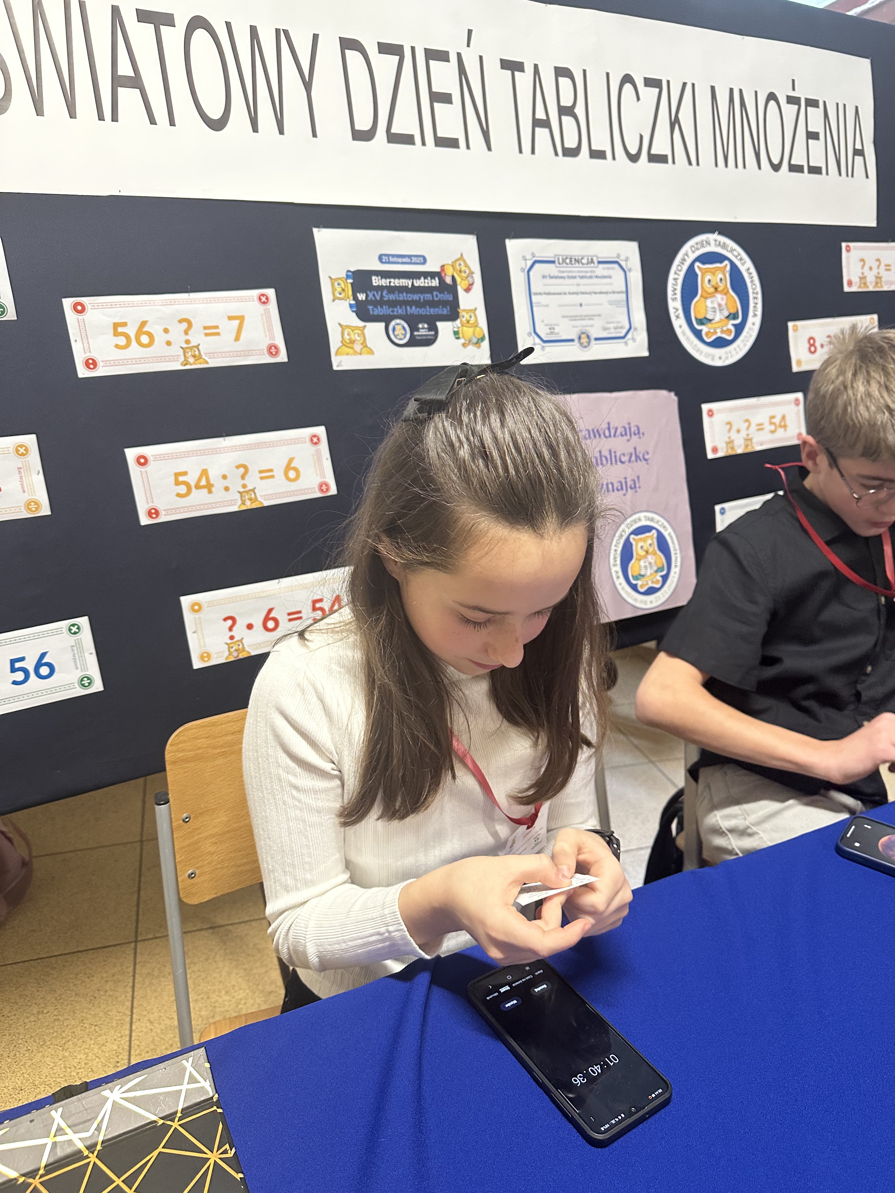 21 listopada w naszej szkole obchodziliśmy XV Światowy Dzień Tabliczki Mnożenia – wydarzenie, które od lat zachęca uczniów na całym świecie do przypomnienia sobie podstawowych faktów matematycznych w przyjemny i niecodzienny sposób. Hasłem akcji jest „Młodsi sprawdzają, czy starsi tabliczkę mnożenia znają”, dlatego tego dnia w nasze szkole na korytarzu szkolnym można było spotkać wyjątkowych egzaminatorów. Wyposażeni w losy z przykładami tabliczki mnożenia, egzaminowali nauczycieli, pracowników szkoły oraz uczniów klas starszych i młodszych. Każdy chętny mógł wziąć udział w krótkim, kilkuminutowym teście. Po prawidłowym rozwiązaniu pięciu przykładów uczestnicy otrzymywali naklejki Eksperta Tabliczki Mnożenia, co było dla nich dużą satysfakcją i powodem do dumy.