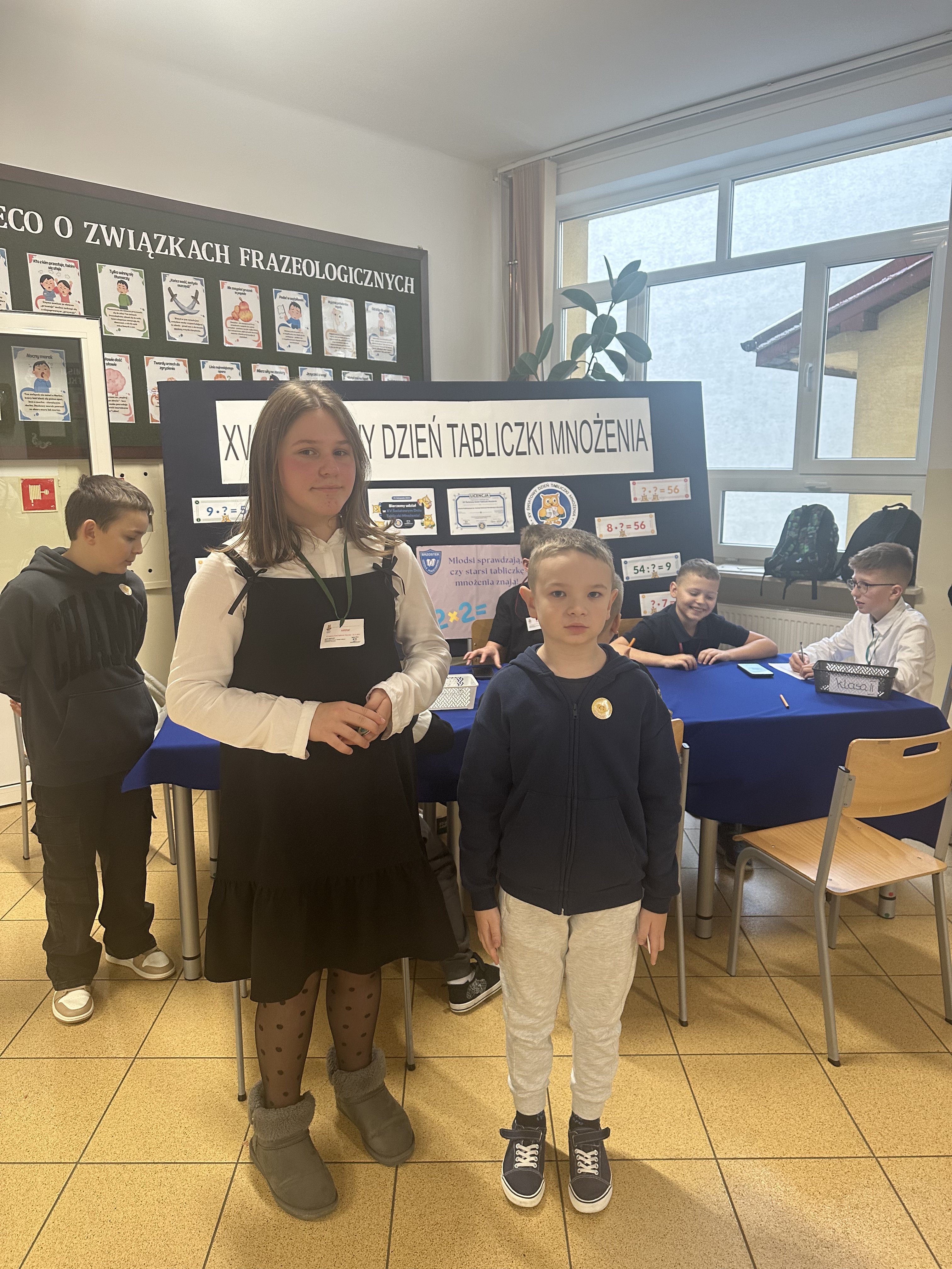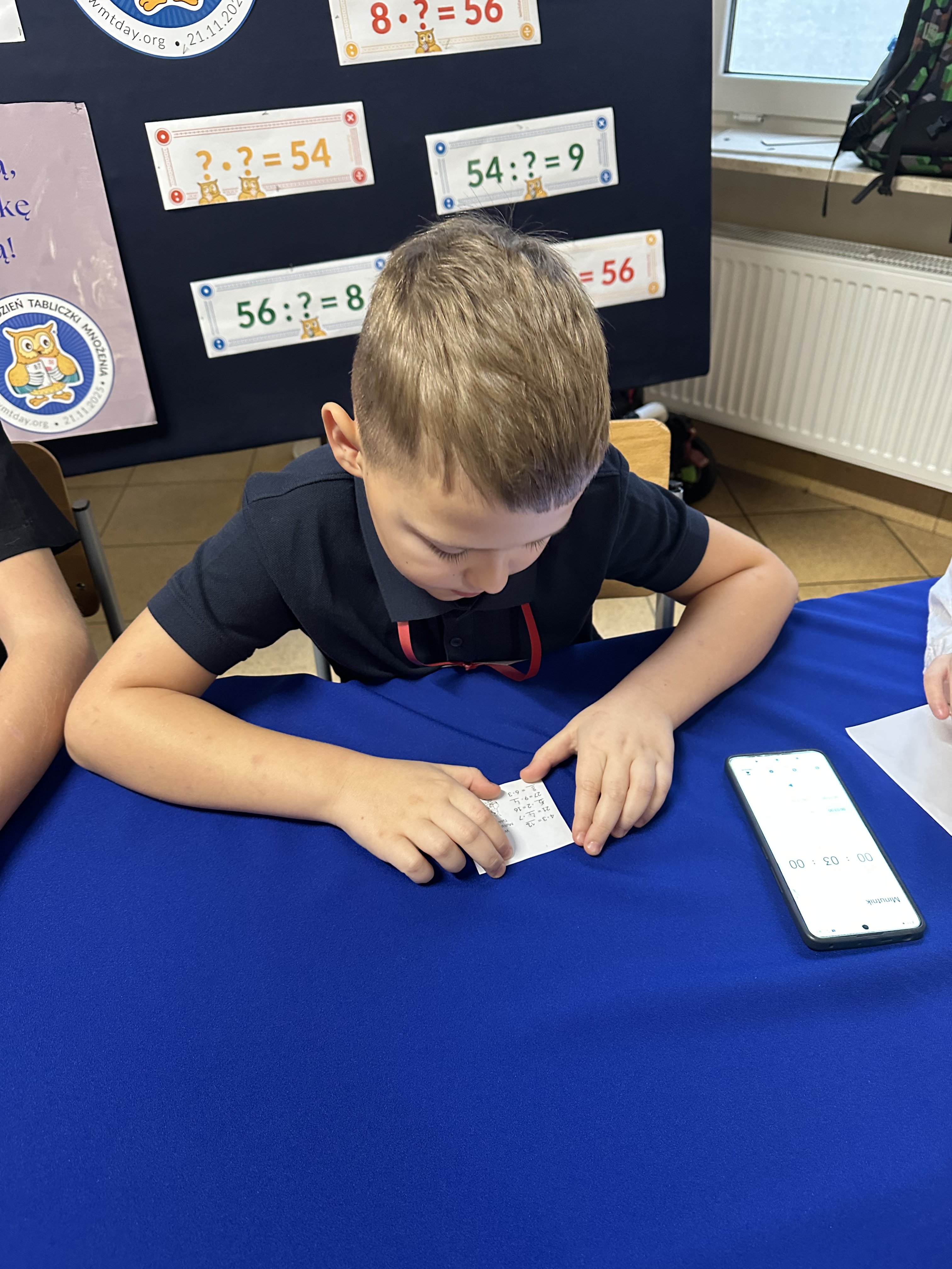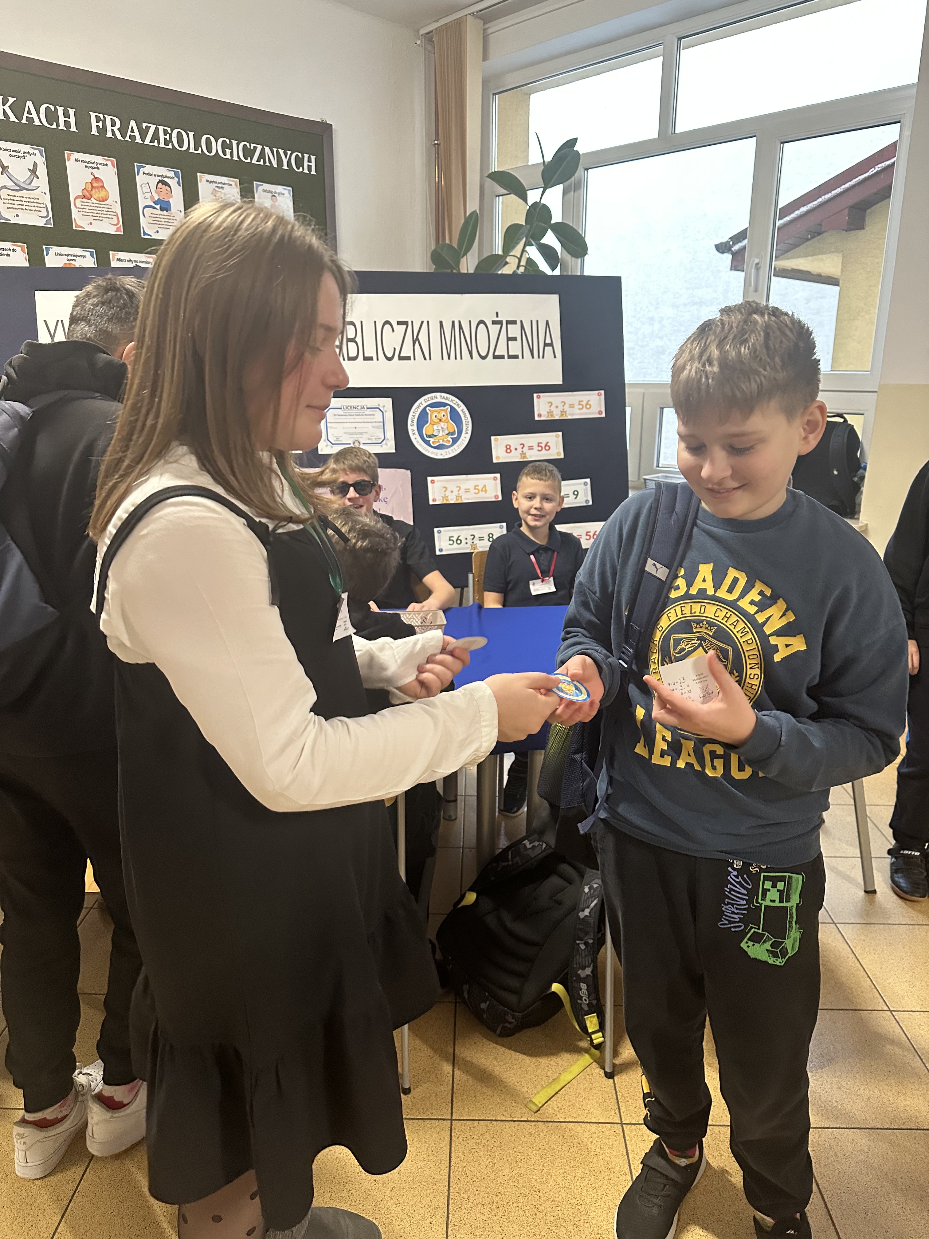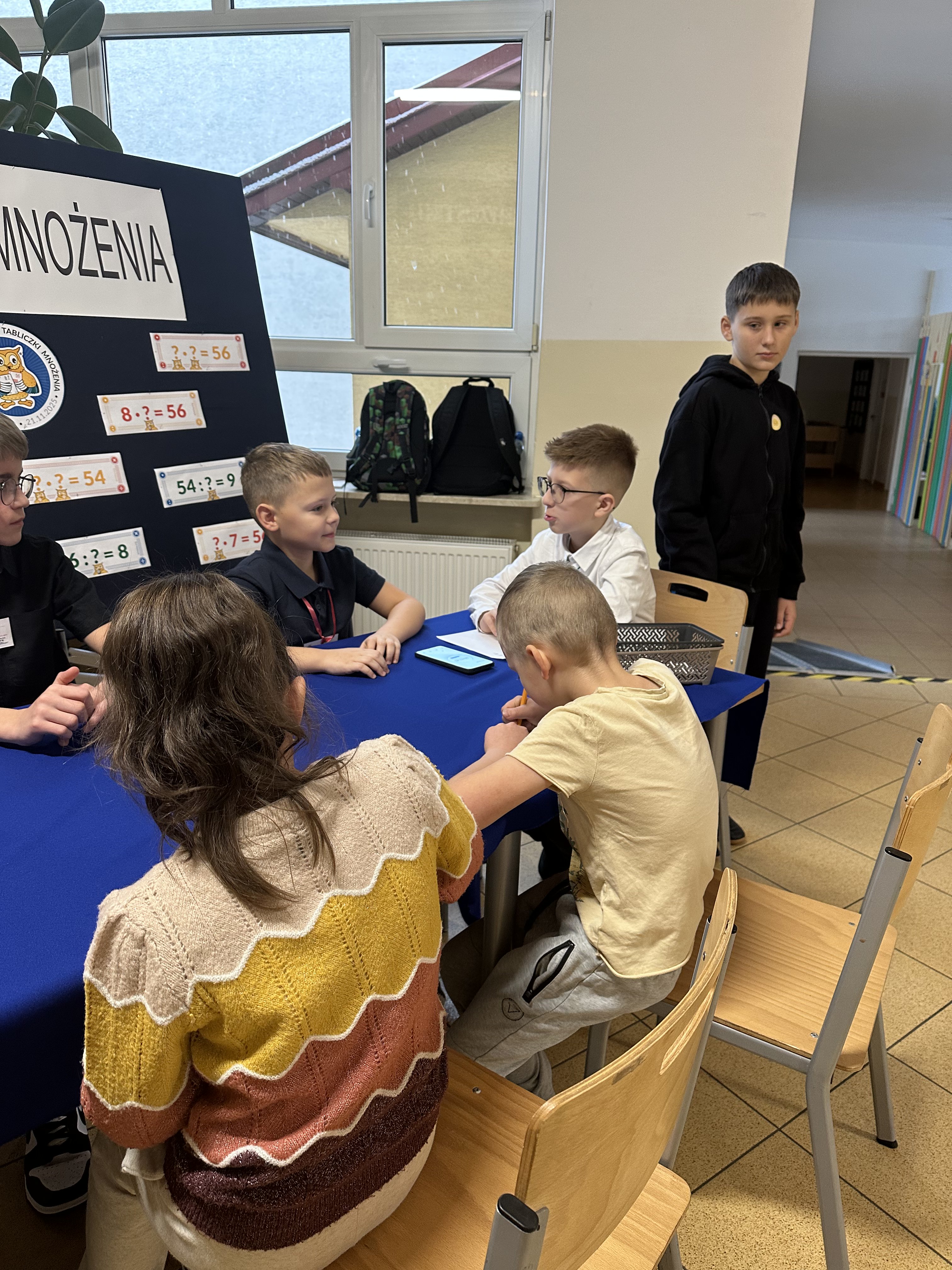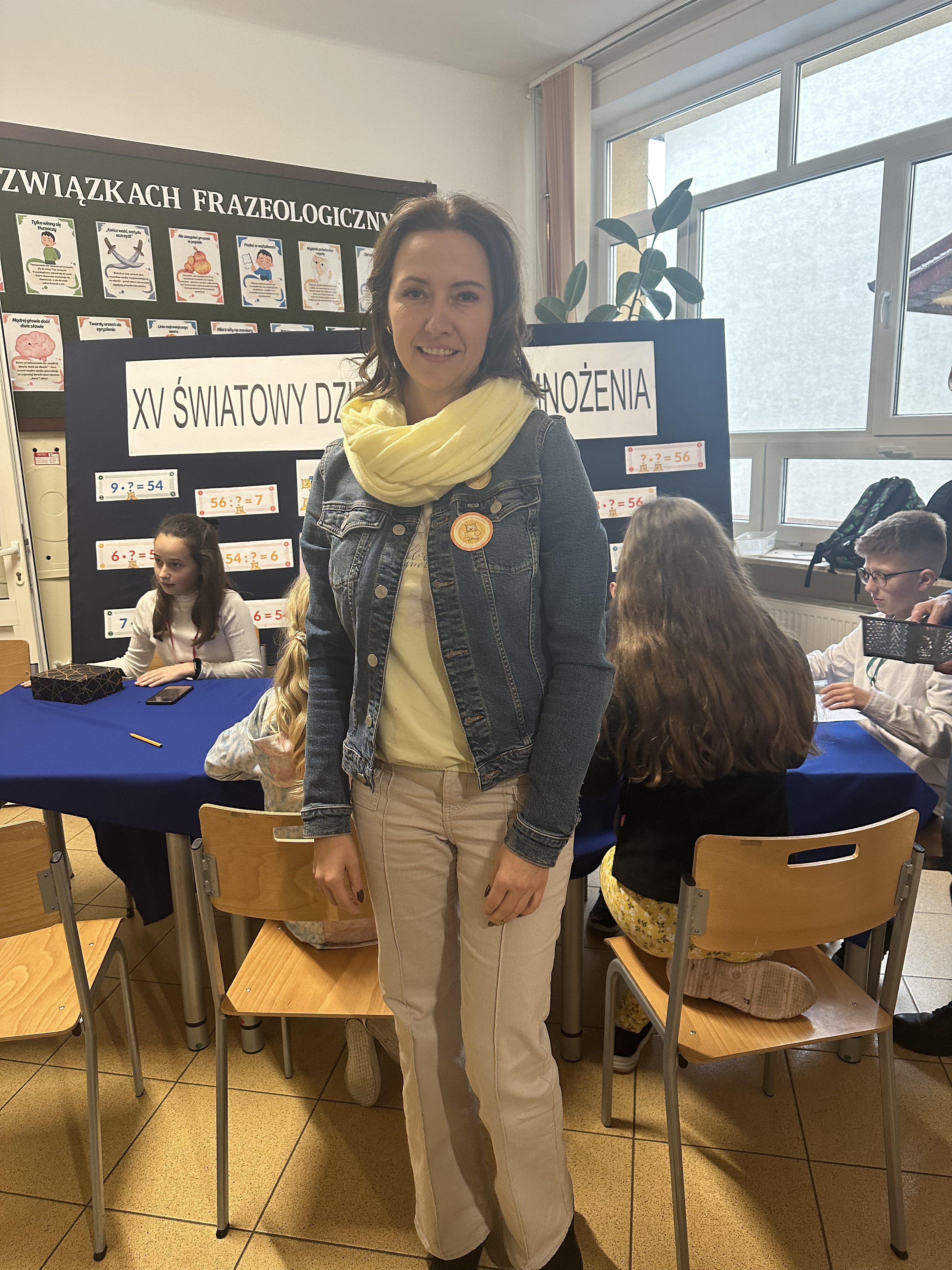 21 listopada w naszej szkole obchodziliśmy XV Światowy Dzień Tabliczki Mnożenia – wydarzenie, które od lat zachęca uczniów na całym świecie do przypomnienia sobie podstawowych faktów matematycznych w przyjemny i niecodzienny sposób. Hasłem akcji jest „Młodsi sprawdzają, czy starsi tabliczkę mnożenia znają”, dlatego tego dnia w nasze szkole na korytarzu szkolnym można było spotkać wyjątkowych egzaminatorów. Wyposażeni w losy z przykładami tabliczki mnożenia, egzaminowali nauczycieli, pracowników szkoły oraz uczniów klas starszych i młodszych. Każdy chętny mógł wziąć udział w krótkim, kilkuminutowym teście. Po prawidłowym rozwiązaniu pięciu przykładów uczestnicy otrzymywali naklejki Eksperta Tabliczki Mnożenia, co było dla nich dużą satysfakcją i powodem do dumy.