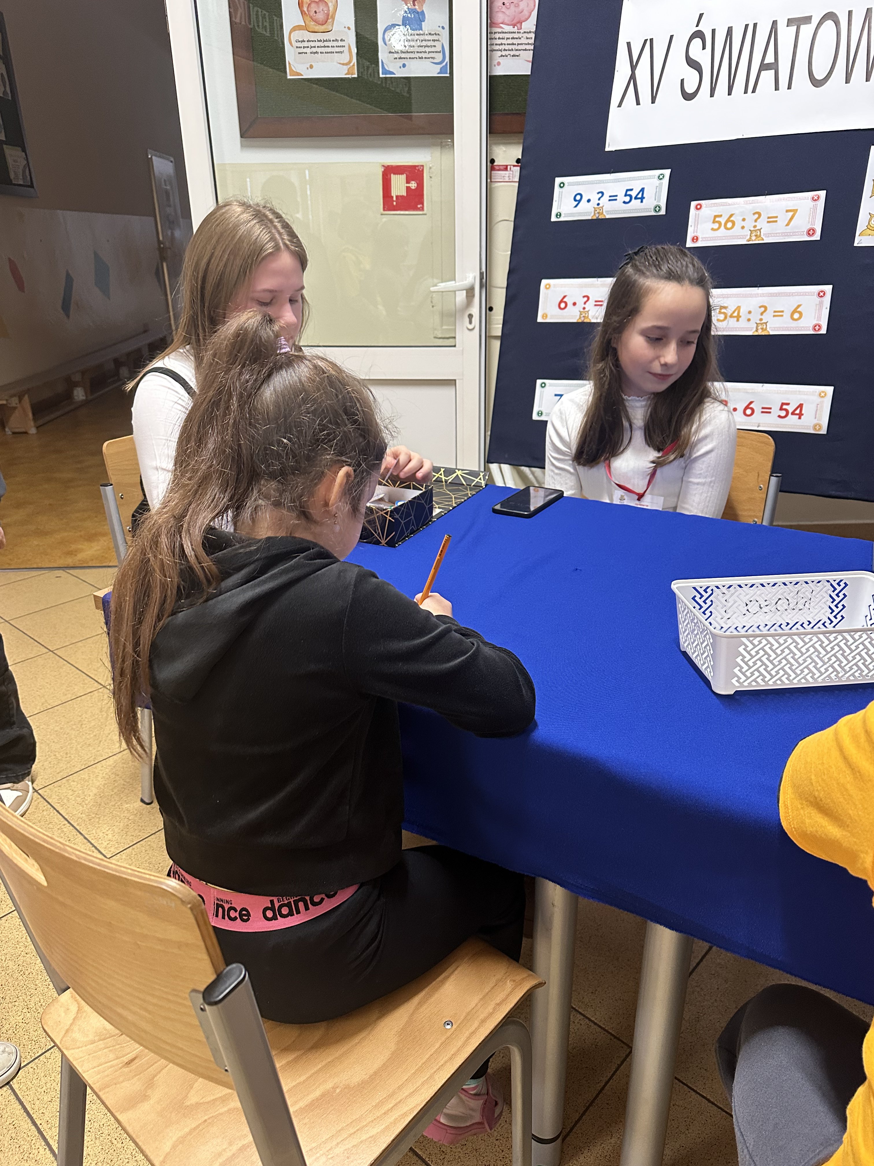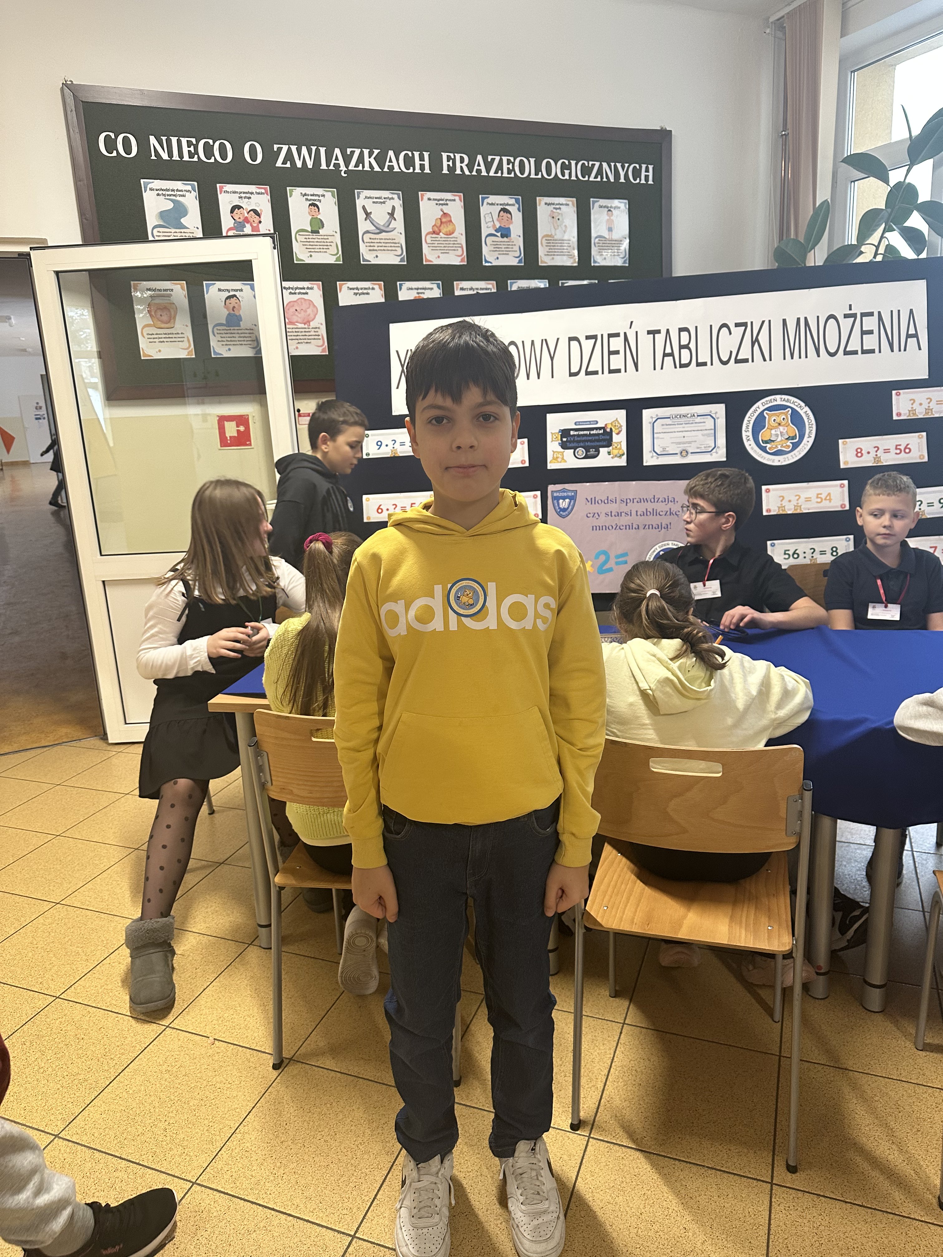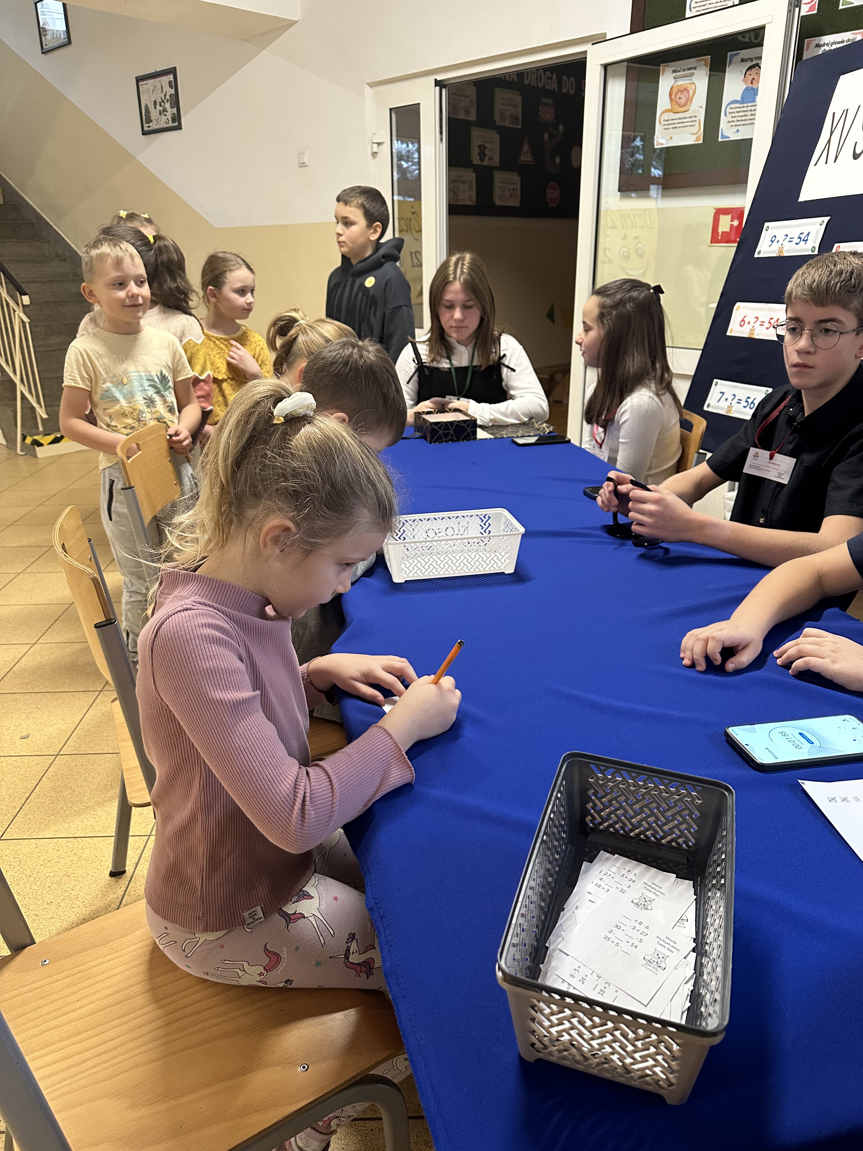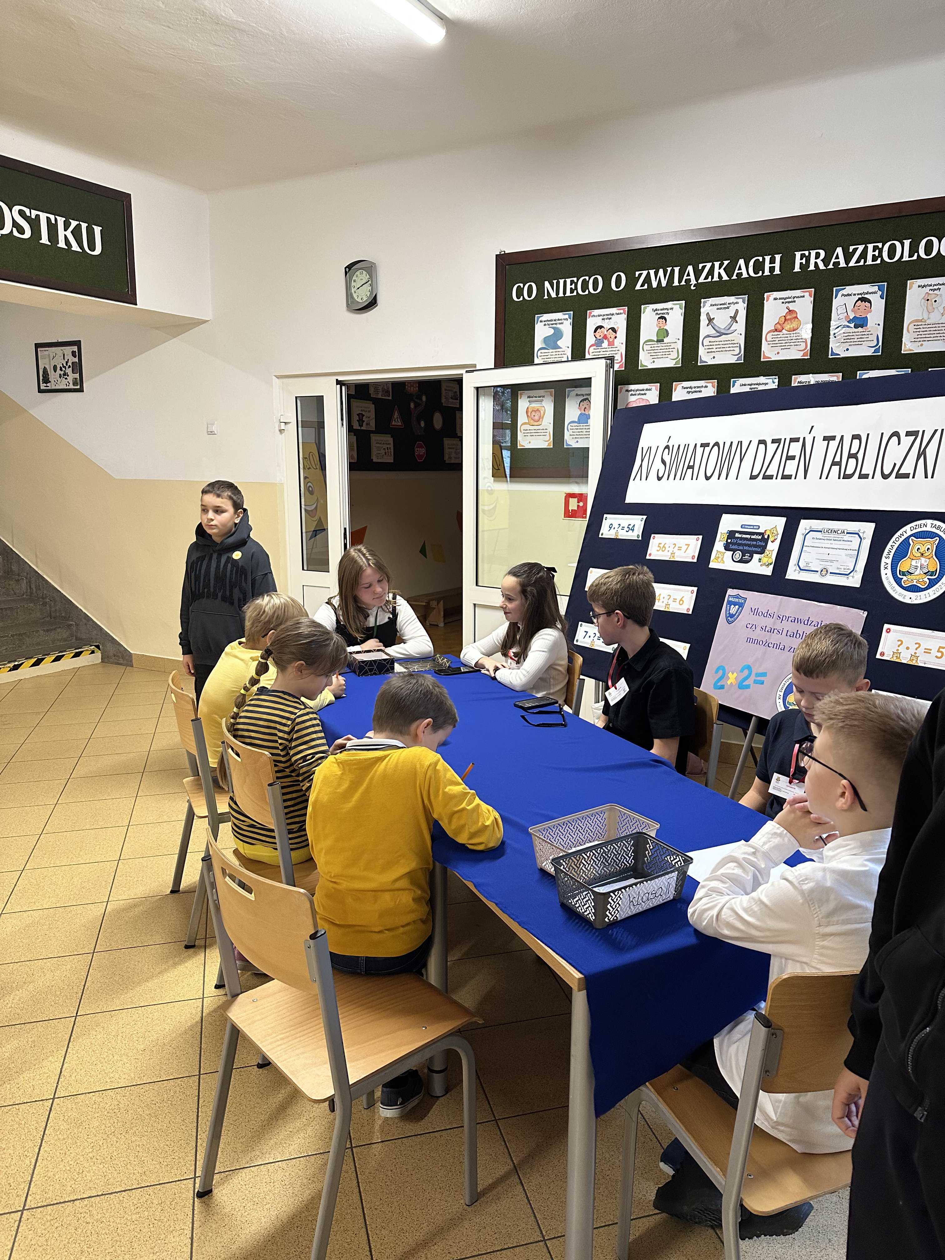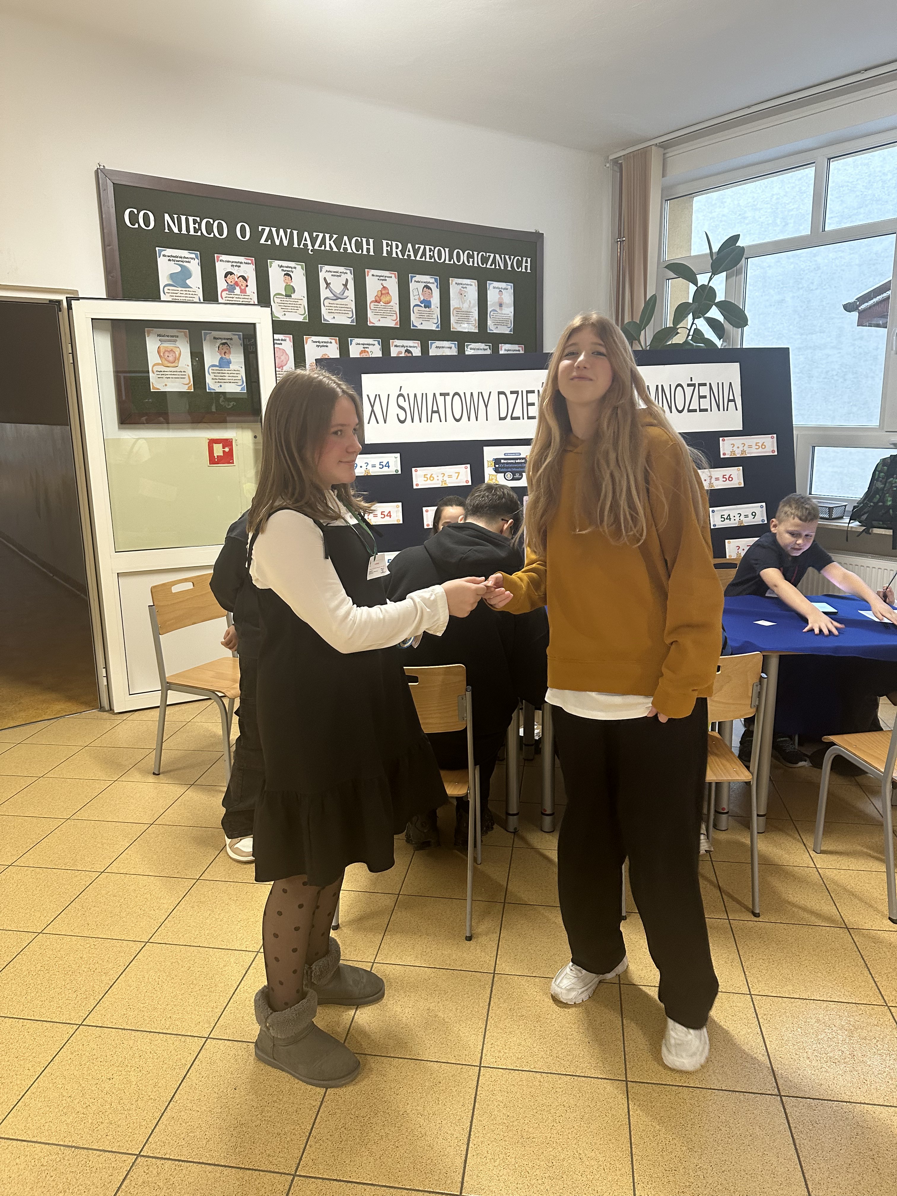 21 listopada w naszej szkole obchodziliśmy XV Światowy Dzień Tabliczki Mnożenia – wydarzenie, które od lat zachęca uczniów na całym świecie do przypomnienia sobie podstawowych faktów matematycznych w przyjemny i niecodzienny sposób. Hasłem akcji jest „Młodsi sprawdzają, czy starsi tabliczkę mnożenia znają”, dlatego tego dnia w nasze szkole na korytarzu szkolnym można było spotkać wyjątkowych egzaminatorów. Wyposażeni w losy z przykładami tabliczki mnożenia, egzaminowali nauczycieli, pracowników szkoły oraz uczniów klas starszych i młodszych. Każdy chętny mógł wziąć udział w krótkim, kilkuminutowym teście. Po prawidłowym rozwiązaniu pięciu przykładów uczestnicy otrzymywali naklejki Eksperta Tabliczki Mnożenia, co było dla nich dużą satysfakcją i powodem do dumy.
