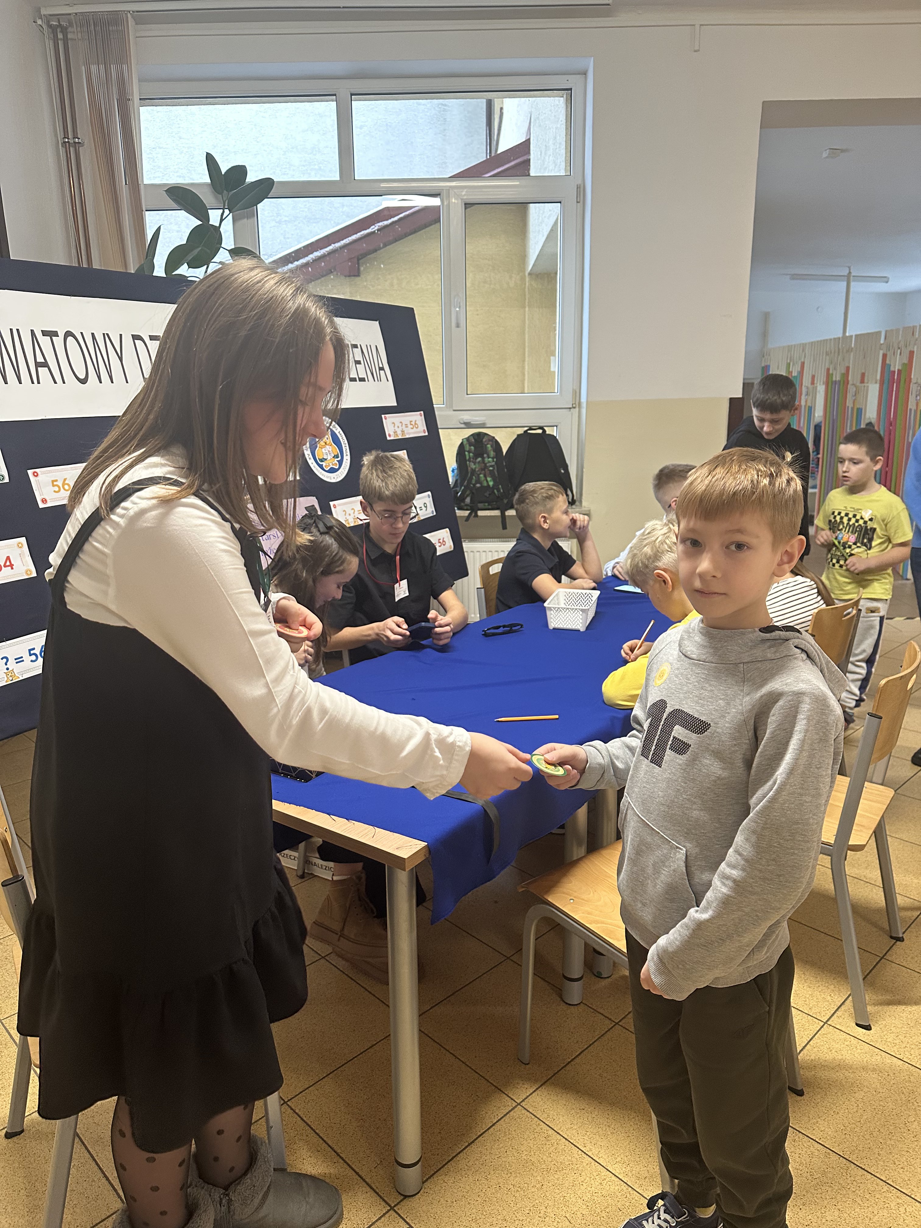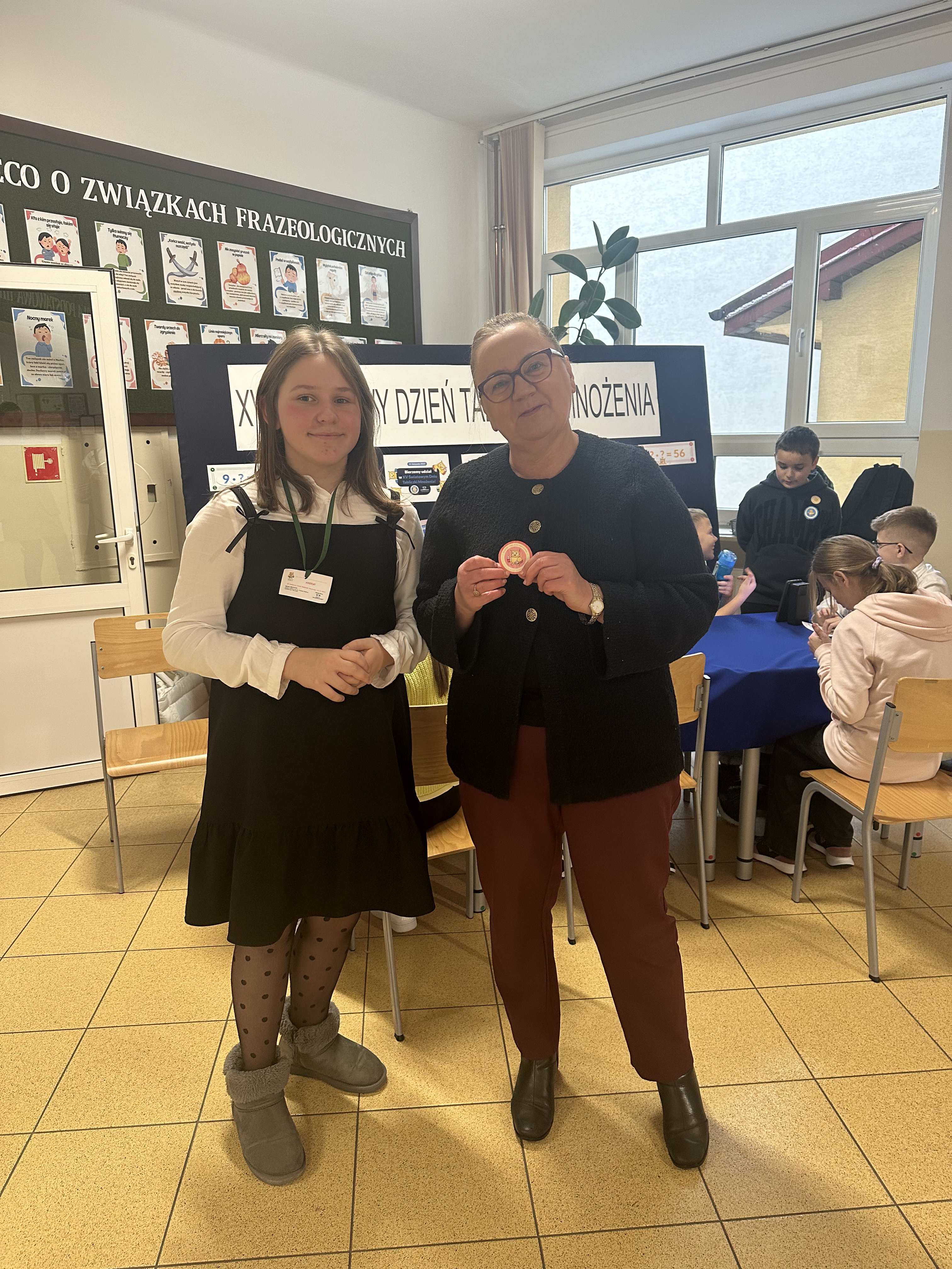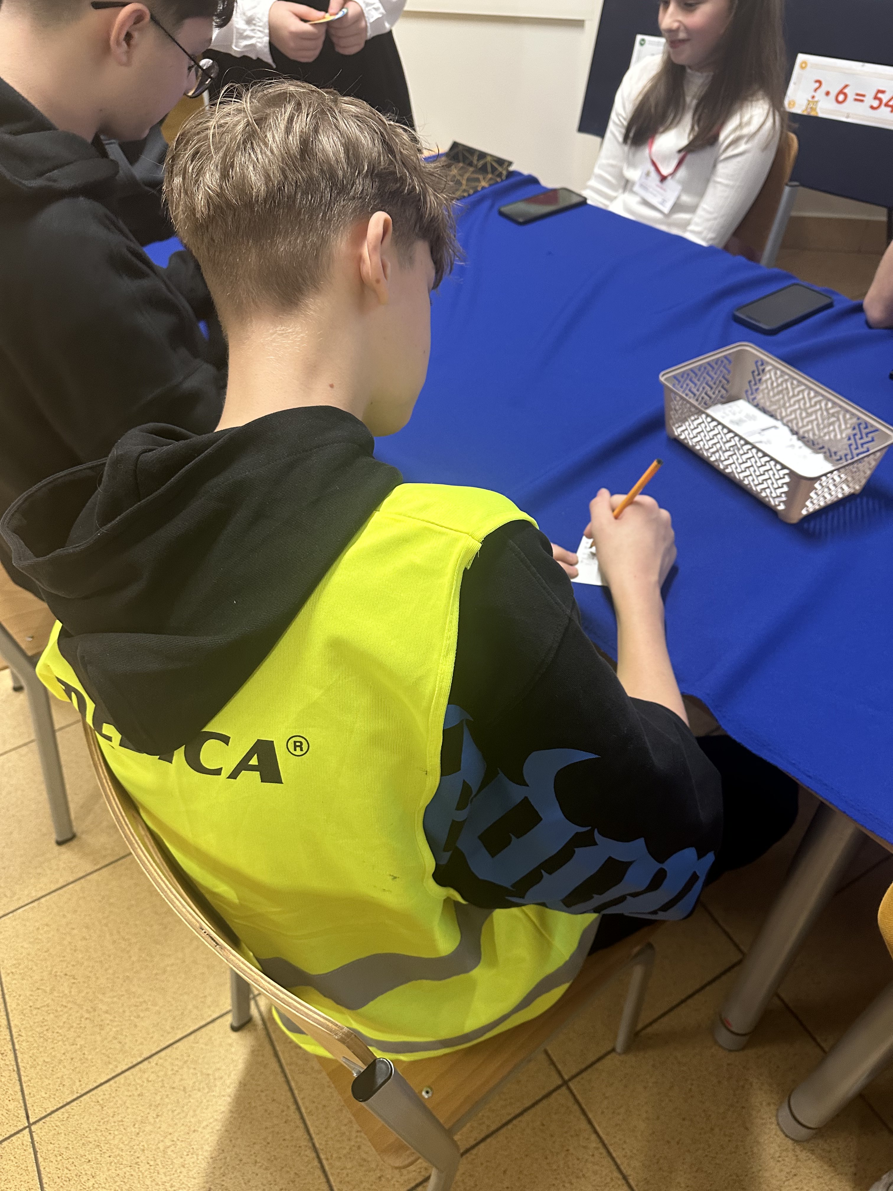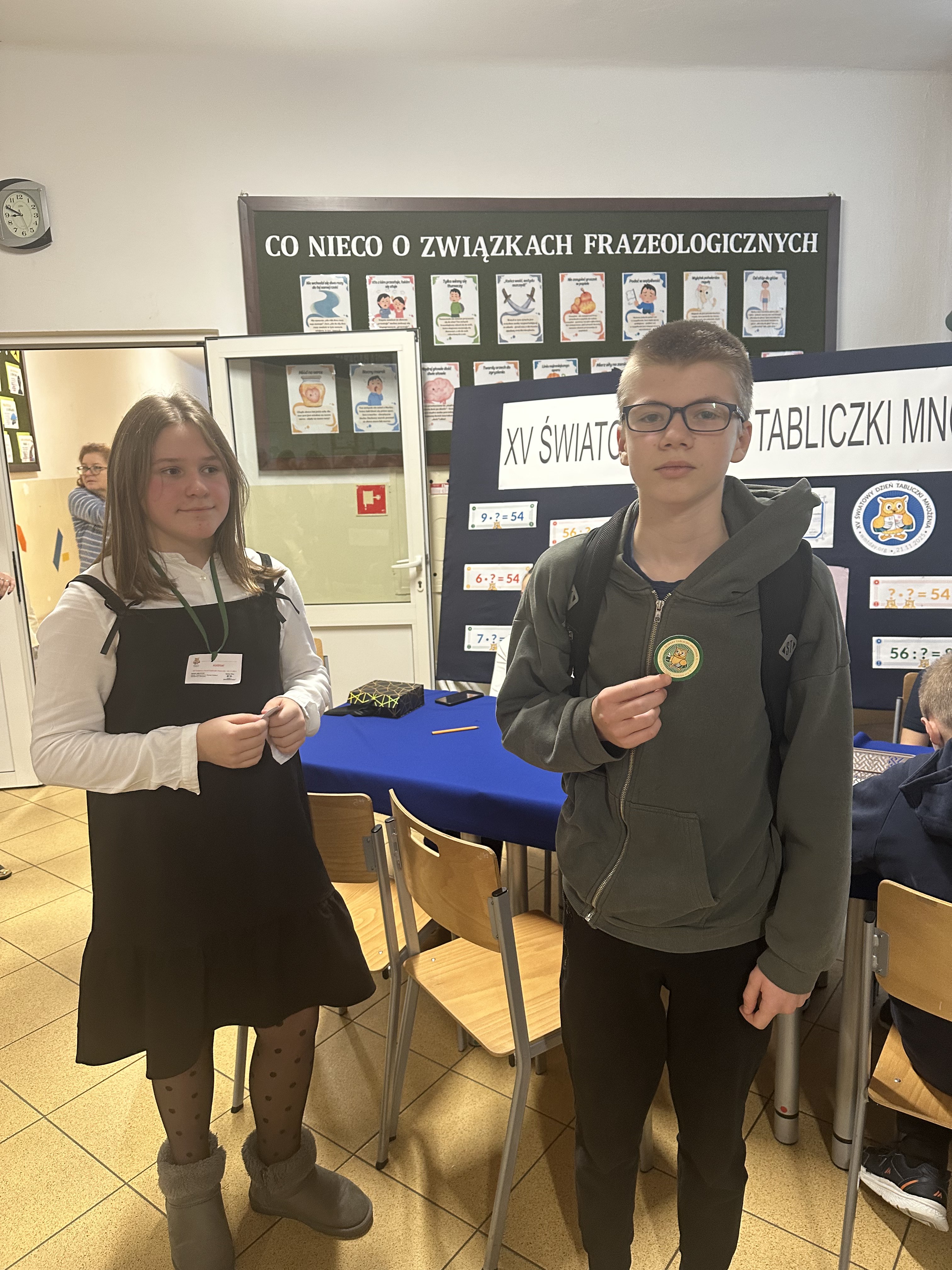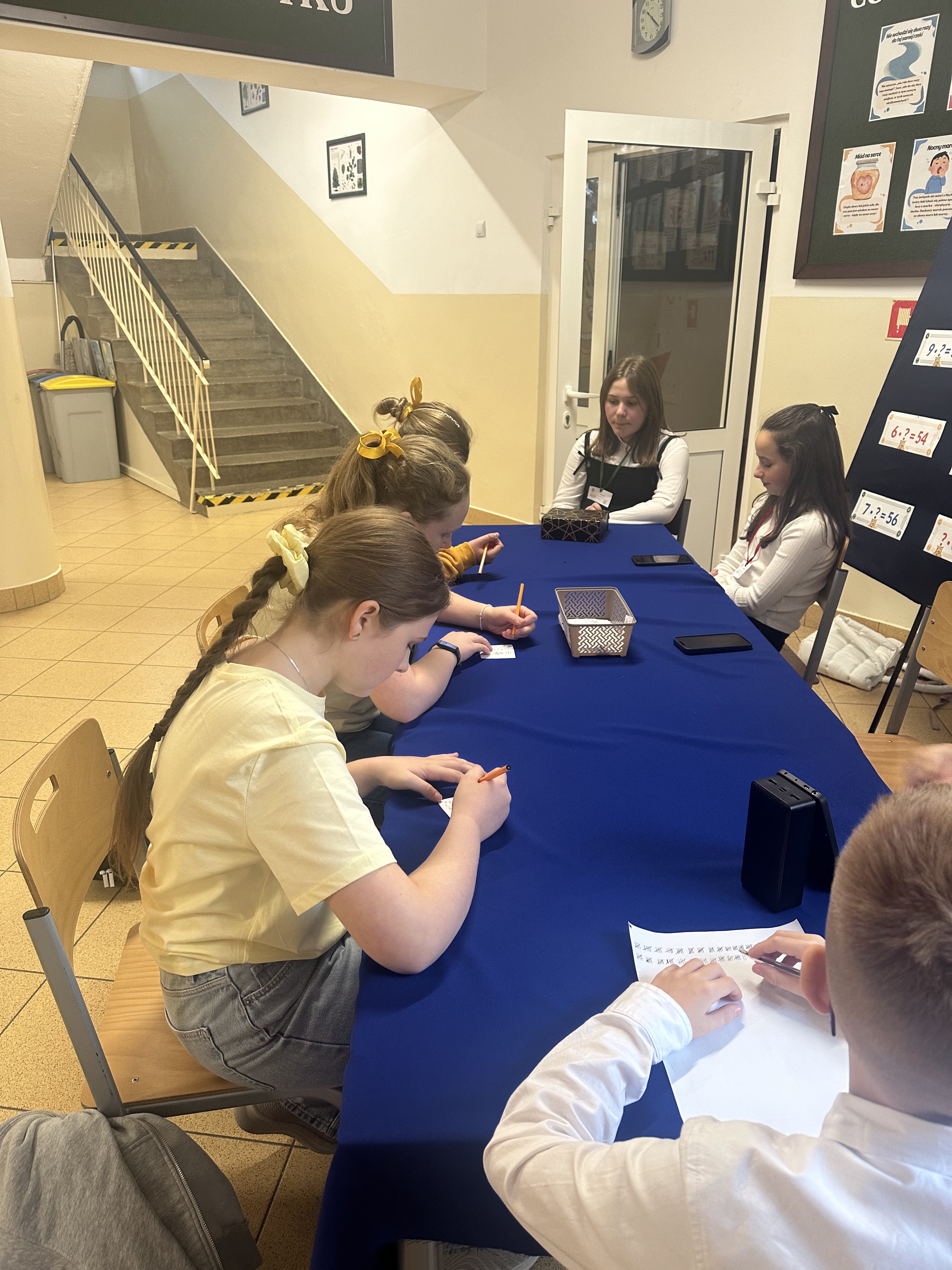 21 listopada w naszej szkole obchodziliśmy XV Światowy Dzień Tabliczki Mnożenia – wydarzenie, które od lat zachęca uczniów na całym świecie do przypomnienia sobie podstawowych faktów matematycznych w przyjemny i niecodzienny sposób. Hasłem akcji jest „Młodsi sprawdzają, czy starsi tabliczkę mnożenia znają”, dlatego tego dnia w nasze szkole na korytarzu szkolnym można było spotkać wyjątkowych egzaminatorów. Wyposażeni w losy z przykładami tabliczki mnożenia, egzaminowali nauczycieli, pracowników szkoły oraz uczniów klas starszych i młodszych. Każdy chętny mógł wziąć udział w krótkim, kilkuminutowym teście. Po prawidłowym rozwiązaniu pięciu przykładów uczestnicy otrzymywali naklejki Eksperta Tabliczki Mnożenia, co było dla nich dużą satysfakcją i powodem do dumy.