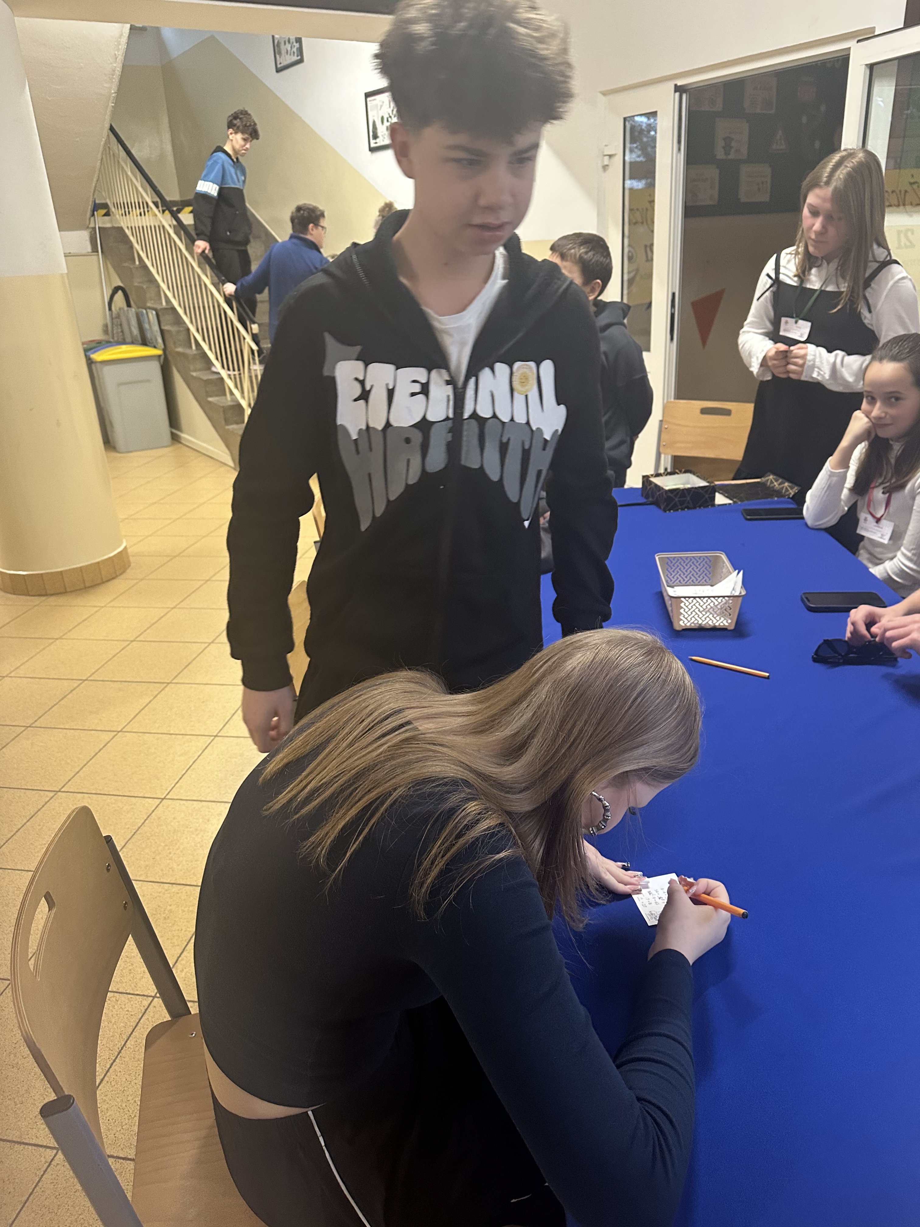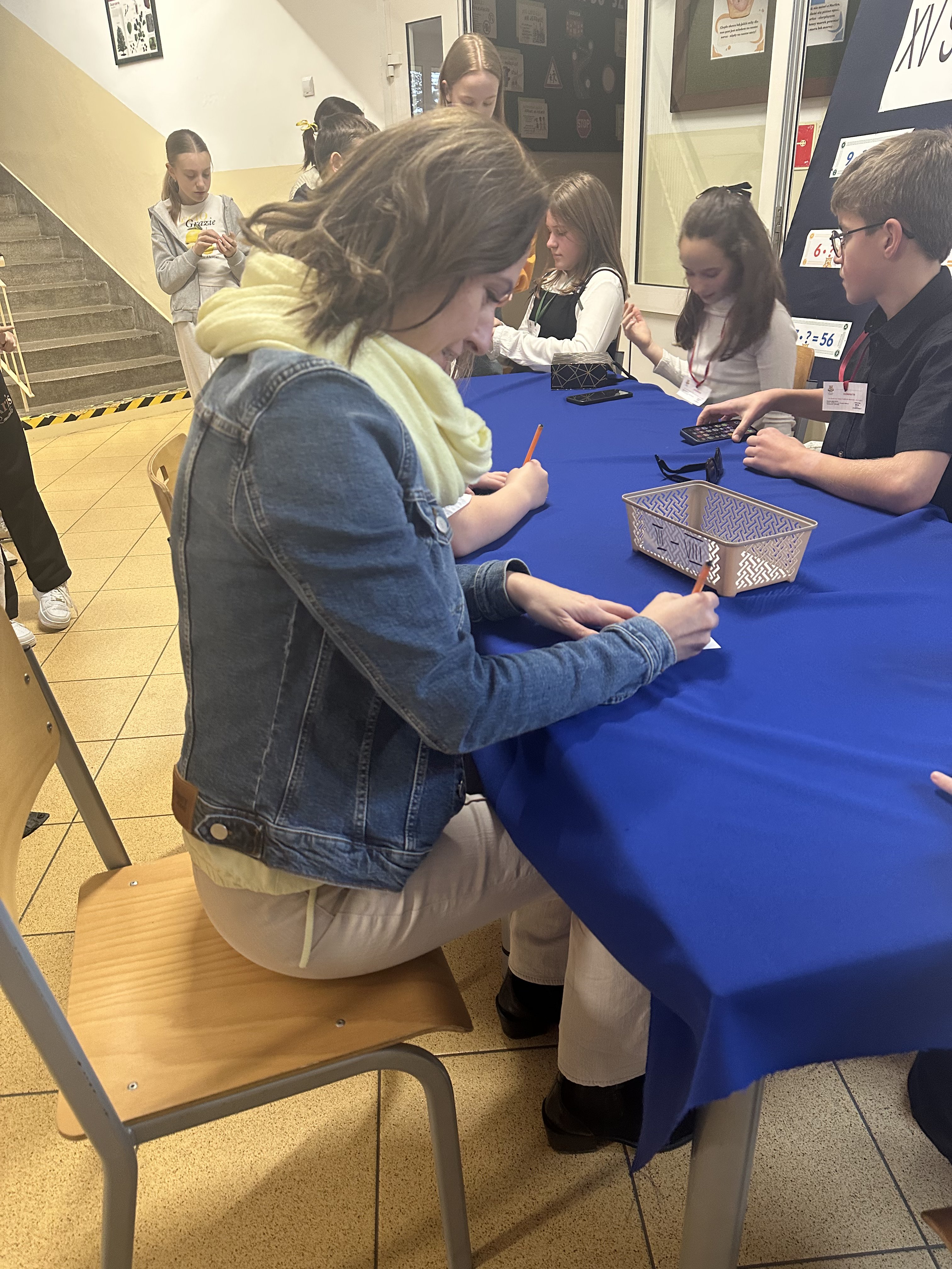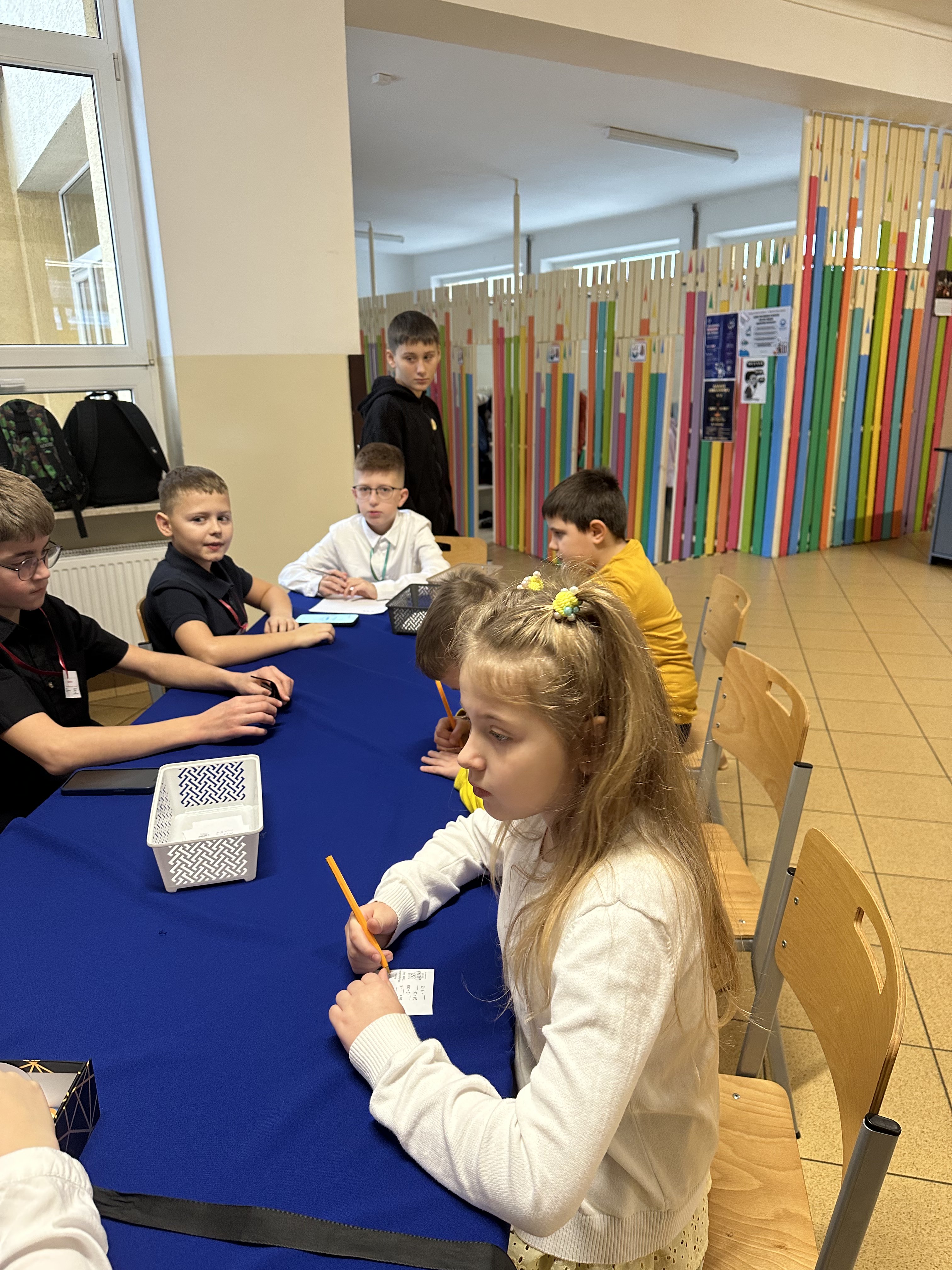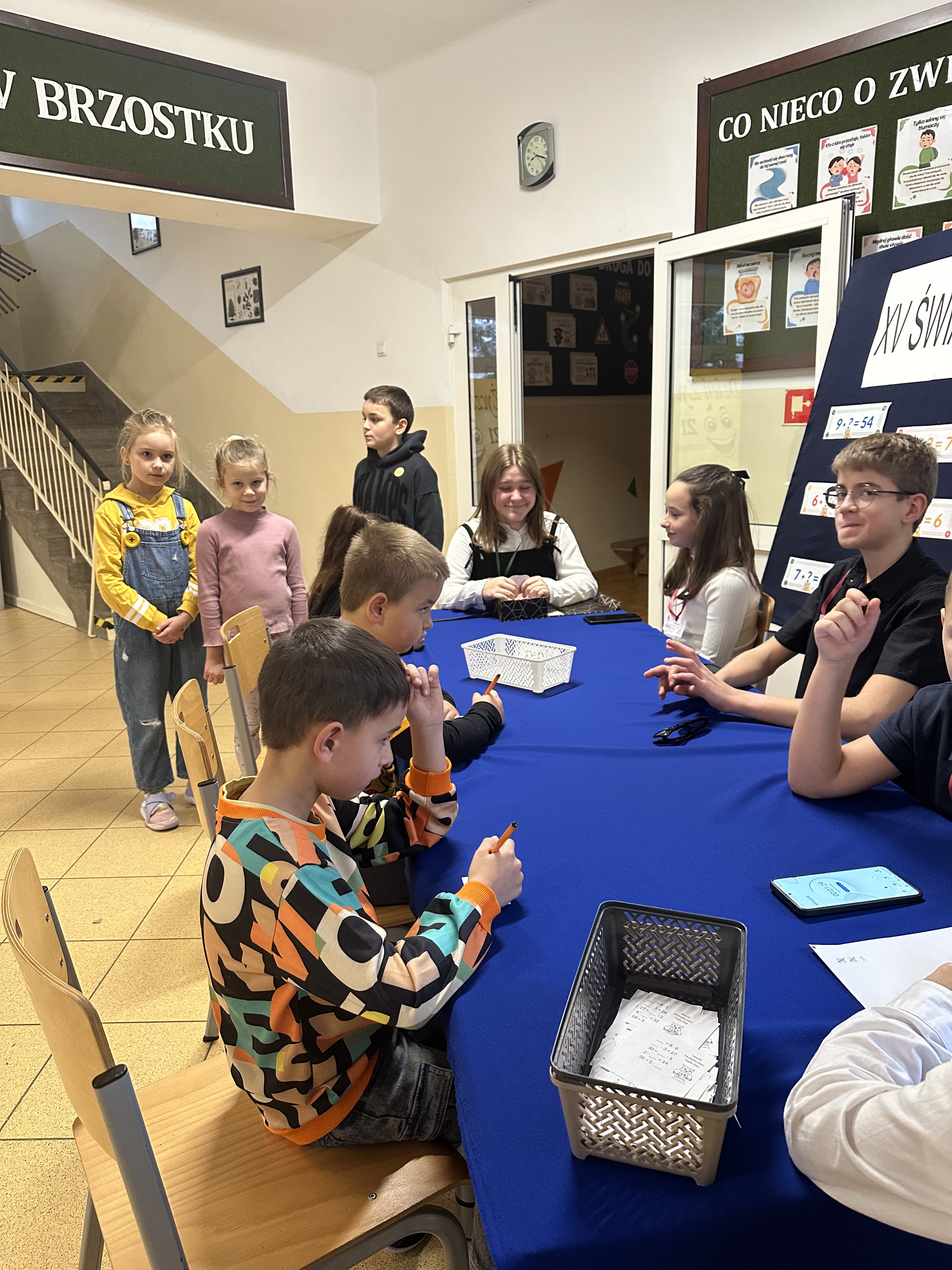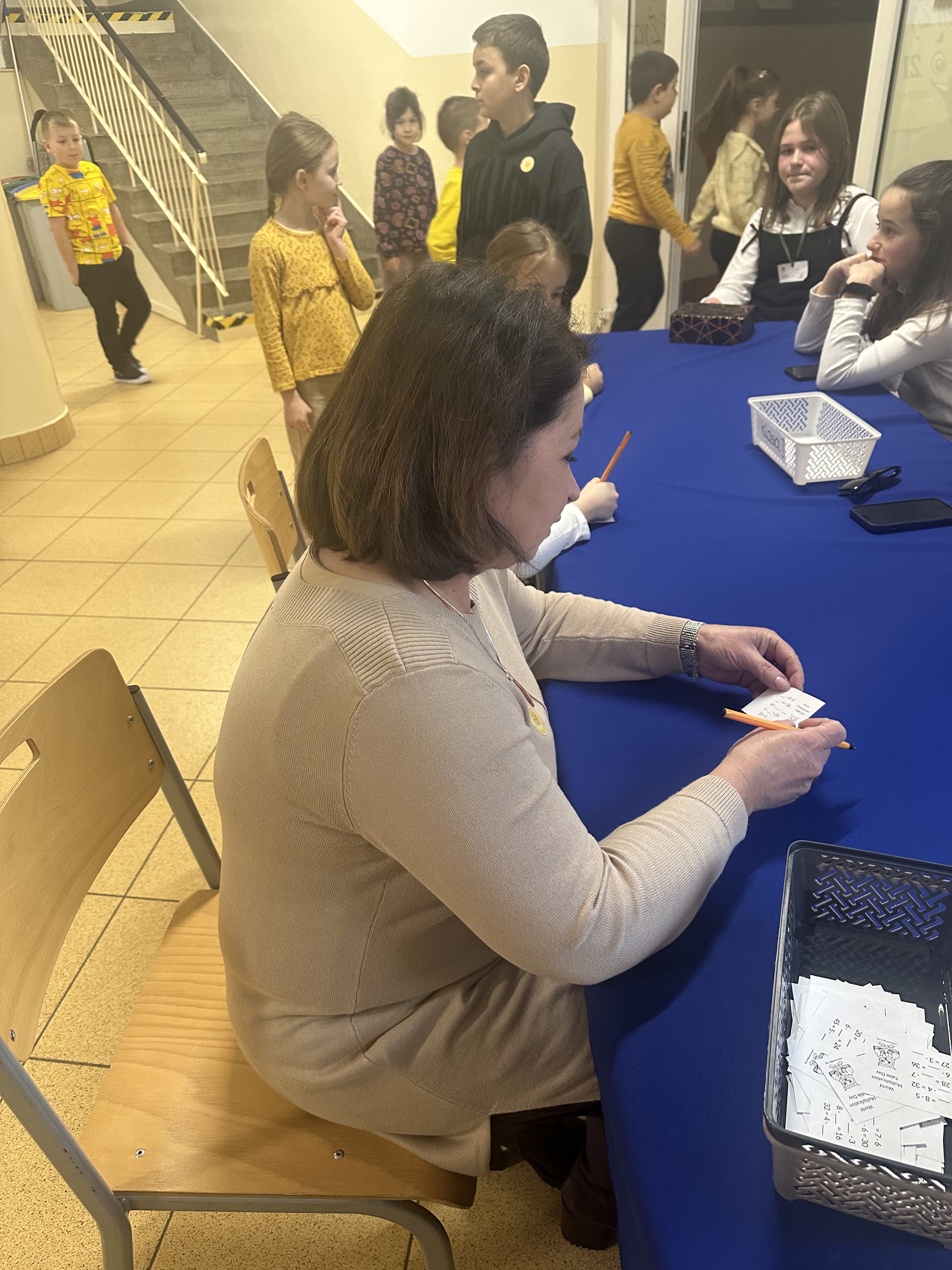 21 listopada w naszej szkole obchodziliśmy XV Światowy Dzień Tabliczki Mnożenia – wydarzenie, które od lat zachęca uczniów na całym świecie do przypomnienia sobie podstawowych faktów matematycznych w przyjemny i niecodzienny sposób. Hasłem akcji jest „Młodsi sprawdzają, czy starsi tabliczkę mnożenia znają”, dlatego tego dnia w nasze szkole na korytarzu szkolnym można było spotkać wyjątkowych egzaminatorów. Wyposażeni w losy z przykładami tabliczki mnożenia, egzaminowali nauczycieli, pracowników szkoły oraz uczniów klas starszych i młodszych. Każdy chętny mógł wziąć udział w krótkim, kilkuminutowym teście. Po prawidłowym rozwiązaniu pięciu przykładów uczestnicy otrzymywali naklejki Eksperta Tabliczki Mnożenia, co było dla nich dużą satysfakcją i powodem do dumy.