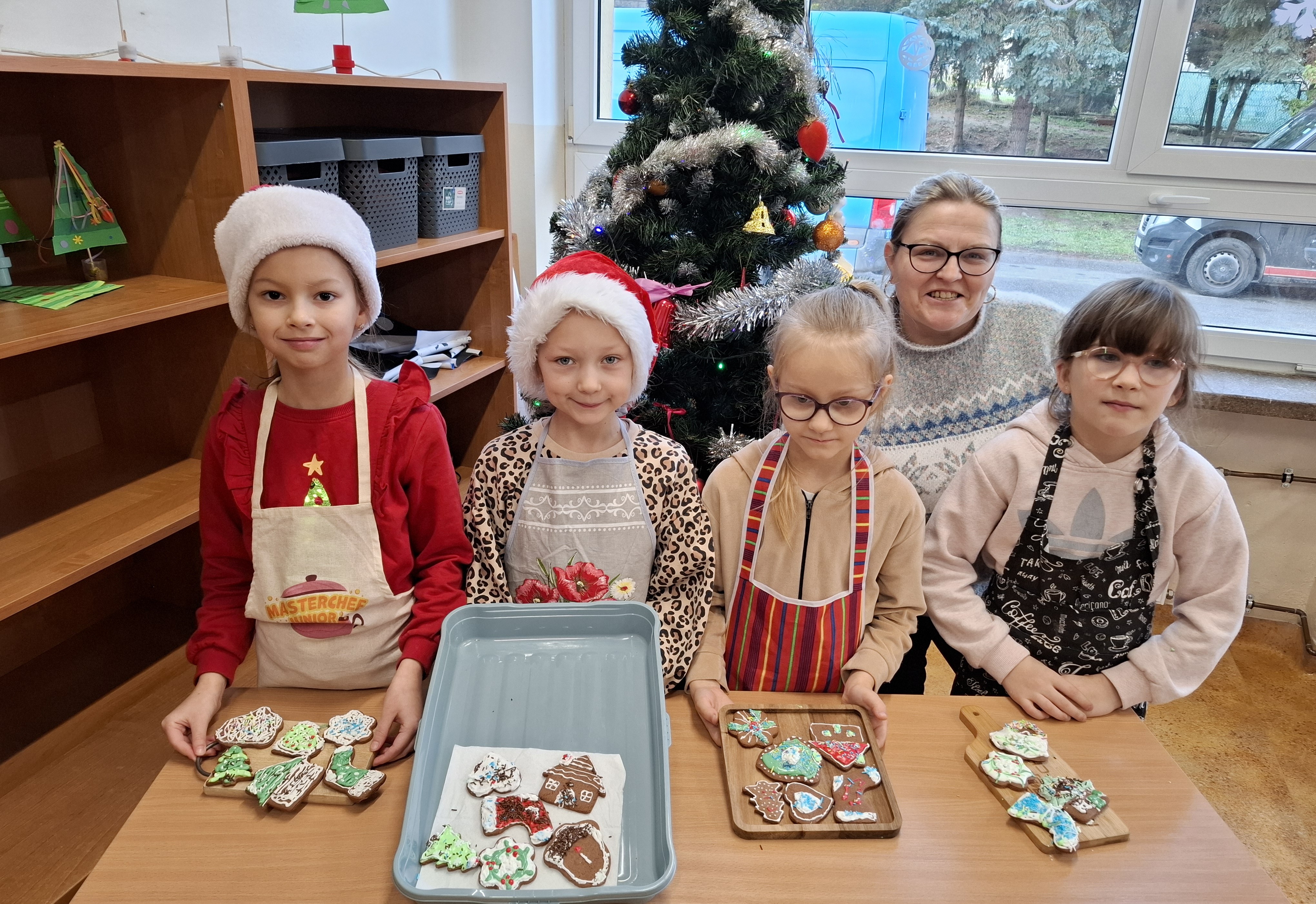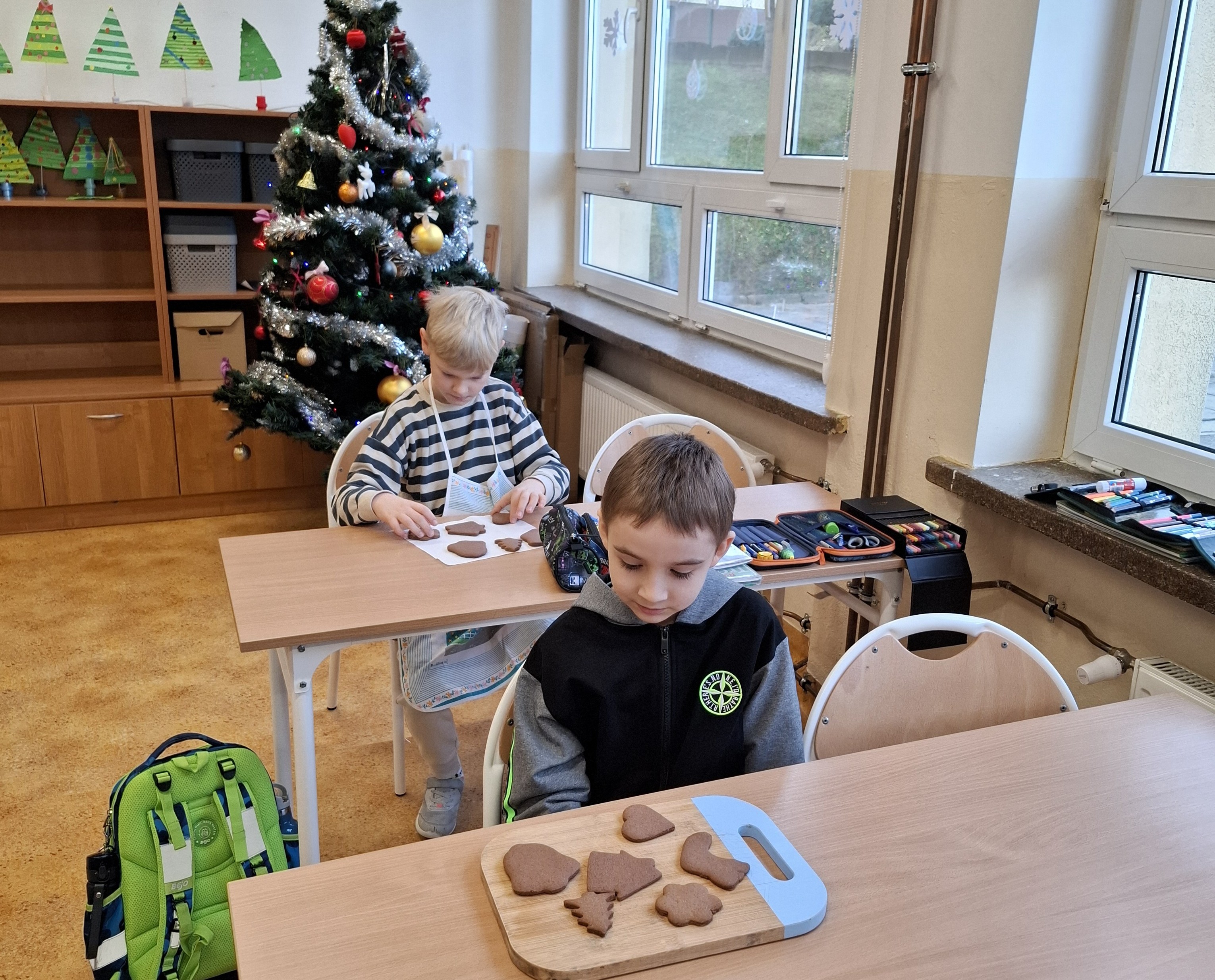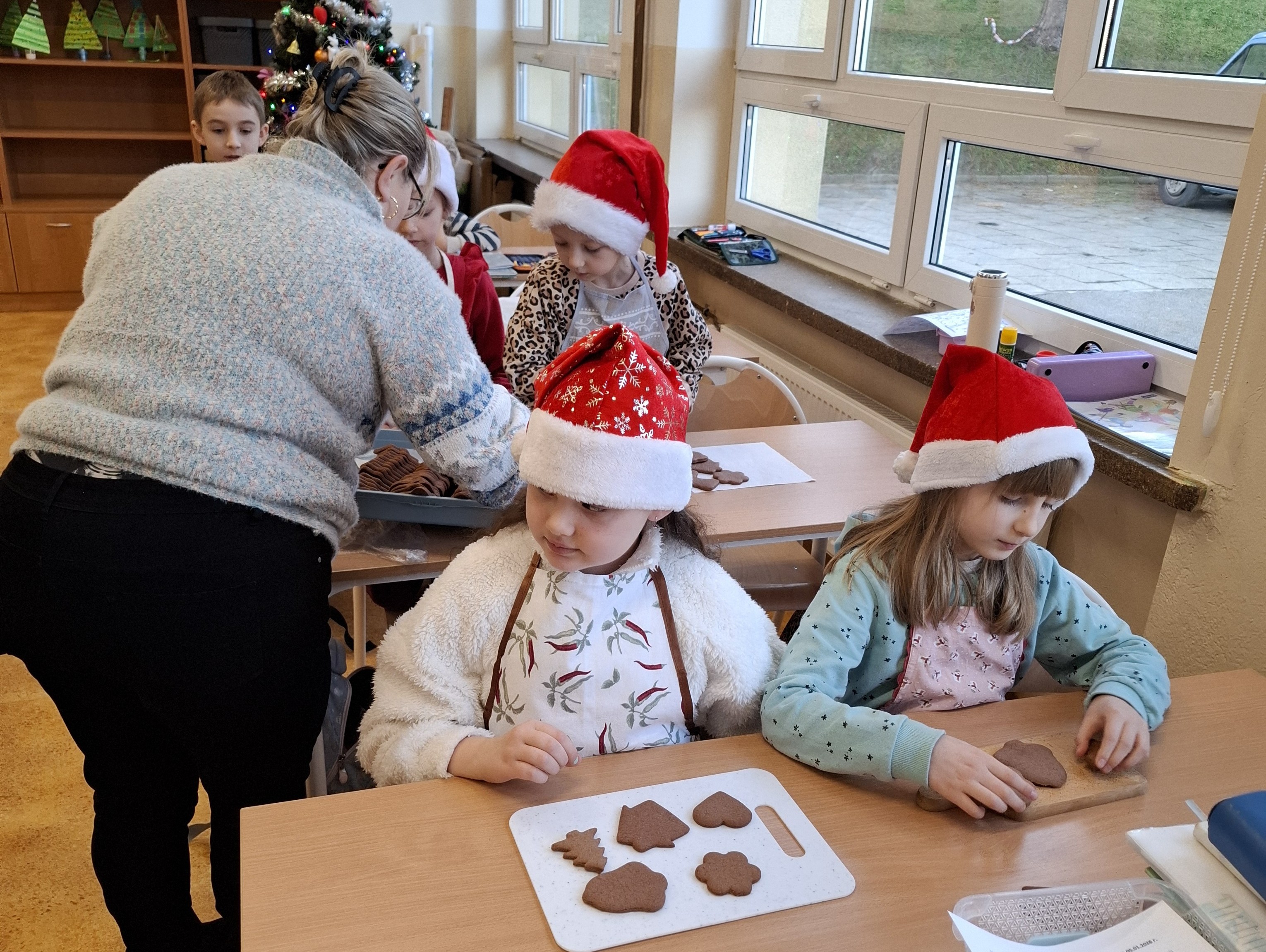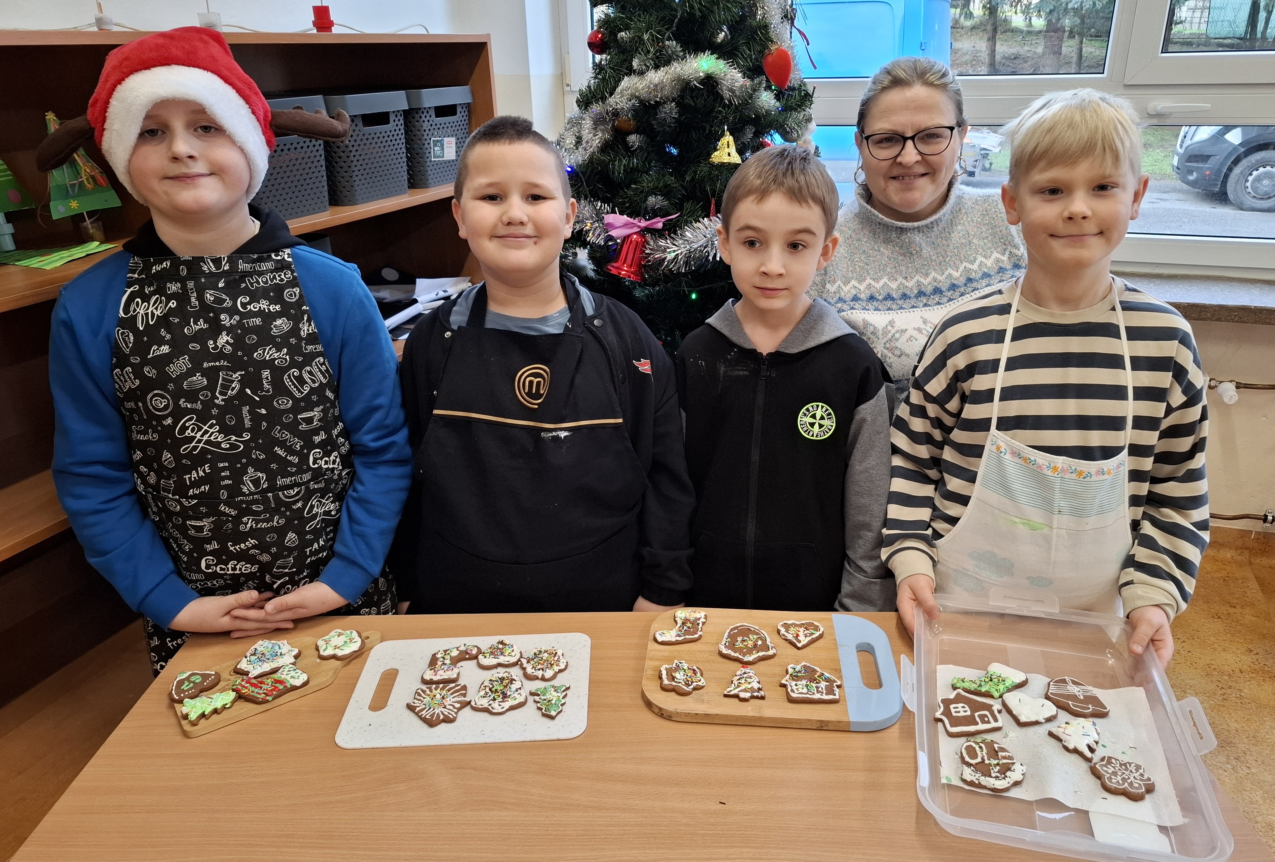 W Polsce już w XII wieku wyrabiano ciasto z miodem. 200 lat później przyprawiono je ostrymi, wonnymi korzeniami: pieprzem, goździkami, imbirem i cynamonem. To były już prawdziwe pierniki. Pieczono je na szczególne uroczystości, także dla zdrowia. W XV wieku spopularyzowano produkcję piernika, a takie miasta jak Gdańsk, Toruń i Kraków zasłynęły z ich wybornego smaku. Ciasto zarabiano 20 lat wcześniej, aby długo leżakowało i przeszło aromatem. W XVII i XVIII wieku pierniki zdobyły najwyższe uznanie. Pieczono nie tylko dla smaku i zdrowia, lecz także dla zabawy. Dla przybliżenia niezwykłej piernikowej tajemnicy przyrządzania średniowiecznych piernikowych delicji, zaprosiliśmy do naszej klasy mamę jednego z chłopców, panią Marię, która zapoznała uczniów z recepturą piernikowego ciasta, jak również wyczarowała aromatyczne pierniki o przeróżnych kształtach. Drugoklasiści własnoręcznie je udekorowali wyjątkowymi wzorami z błyszczącego lukru. Wykazali się ogromnym zaangażowaniem i kreatywnością. Było przy tym dużo śmiechu i zabawy. W czasie zajęć wszyscy degustowali korzenne ciasteczka. Warsztaty dekorowania pierników to doskonała okazja, by poczuć magię nadchodzących świąt i stworzyć własne, słodkie ozdoby świąteczne. Każdy uczestnik opuścił lekcję z piękną i smaczną pamiątką w dłoniach! Szczególne podziękowania, kierujemy do naszego gościa – pani Marii.