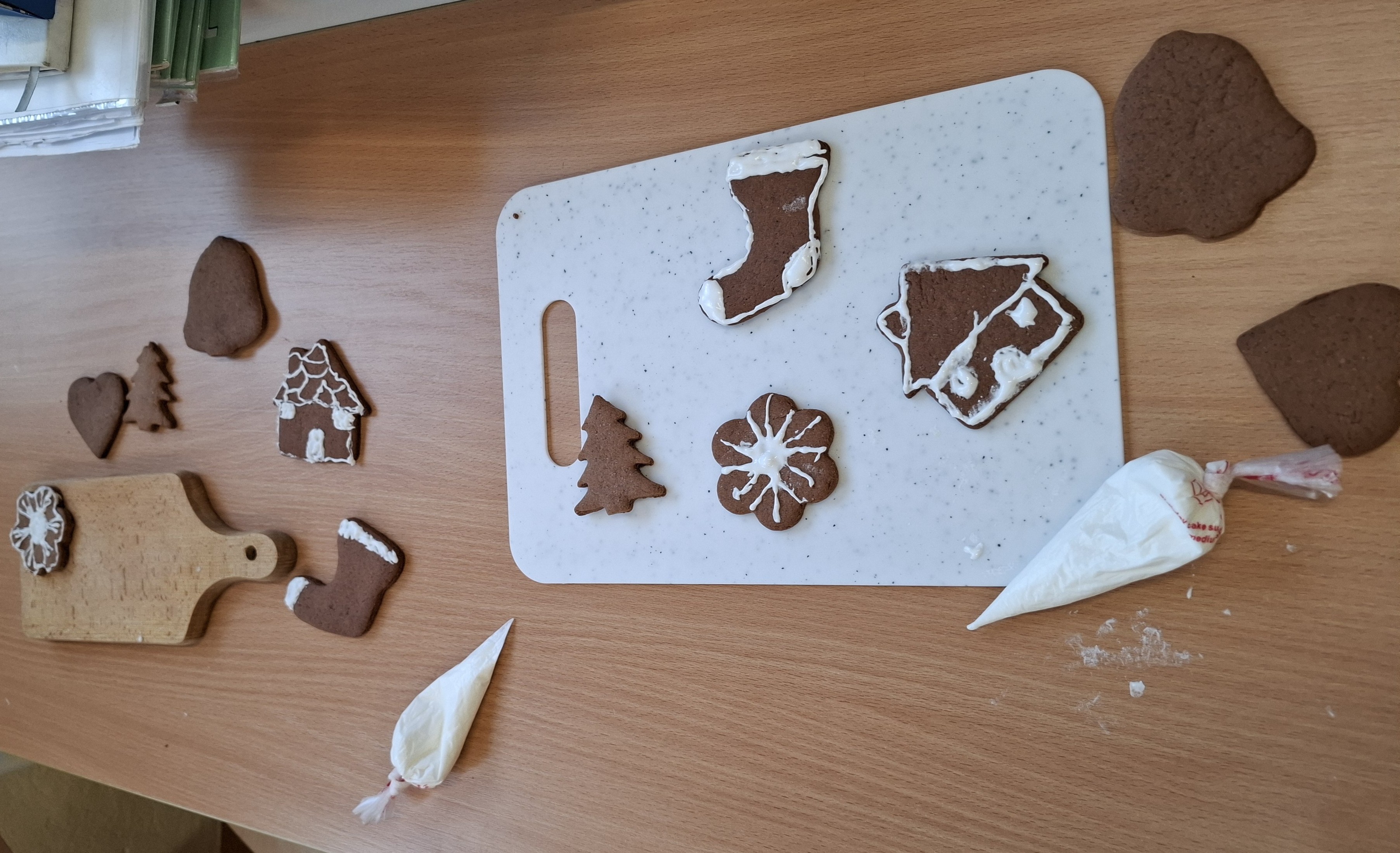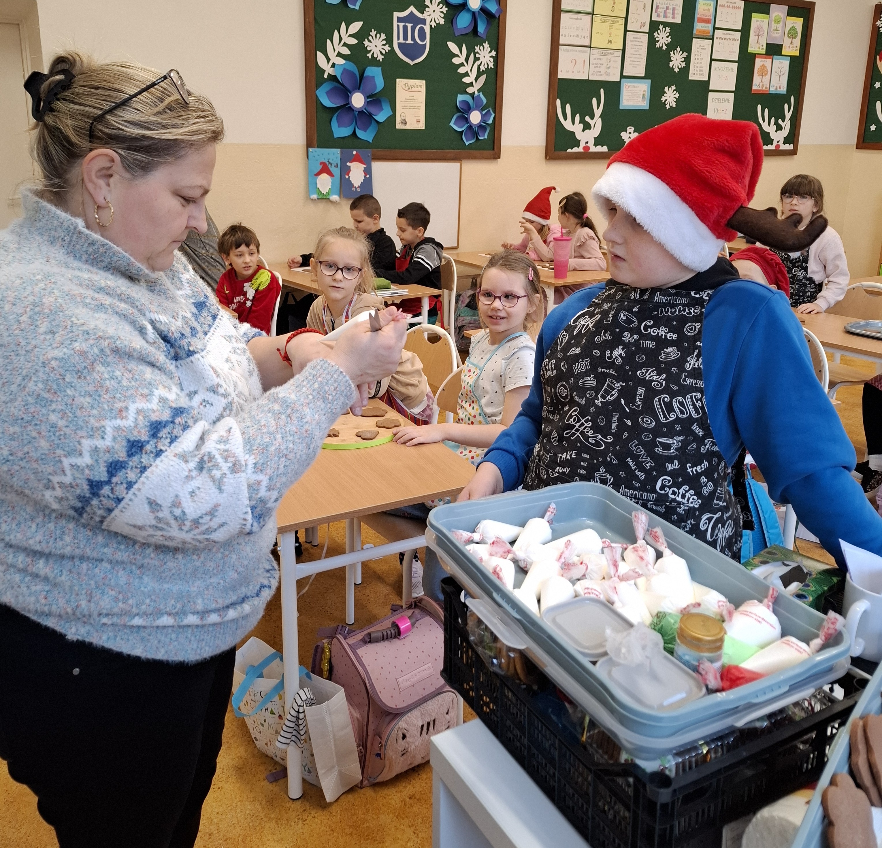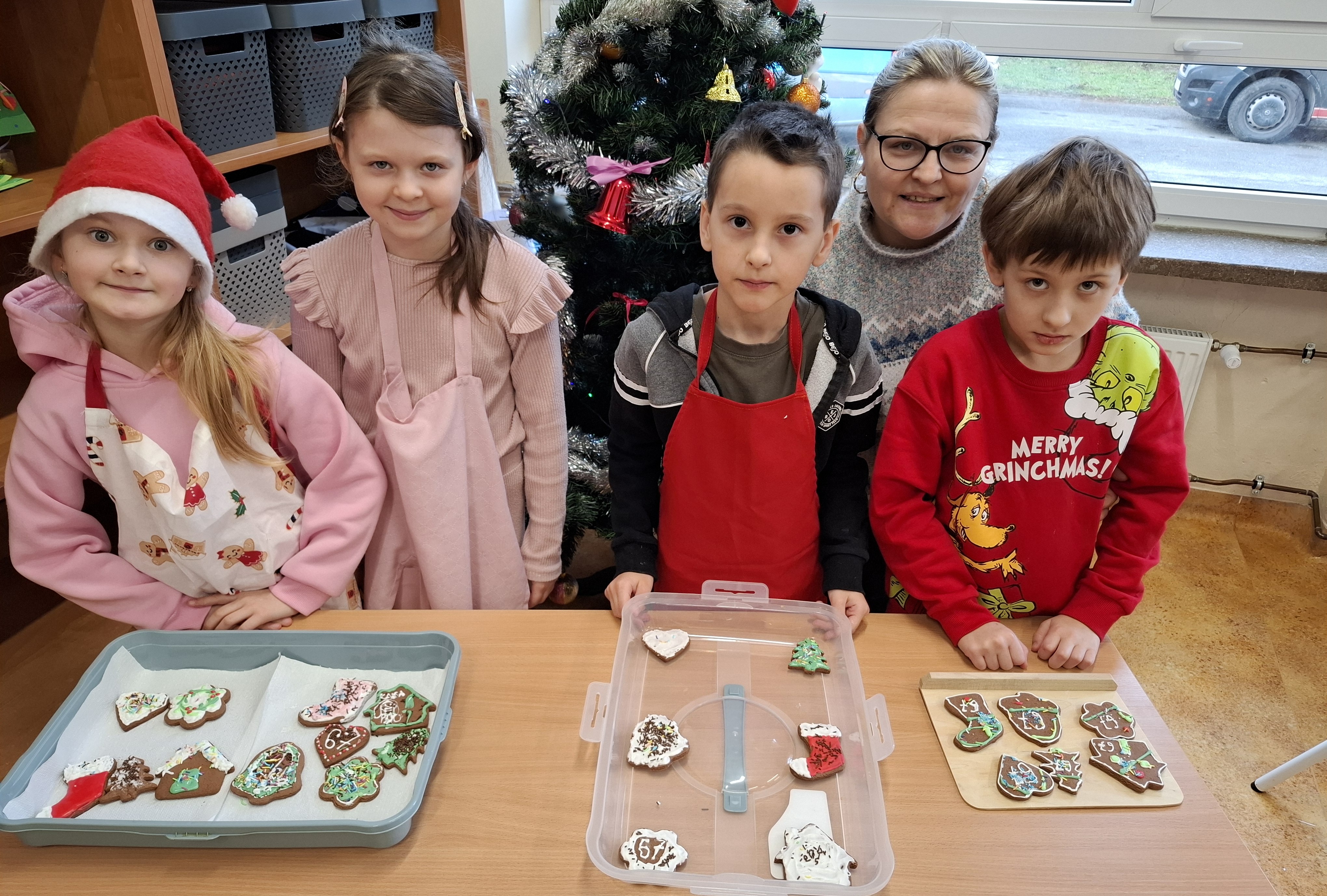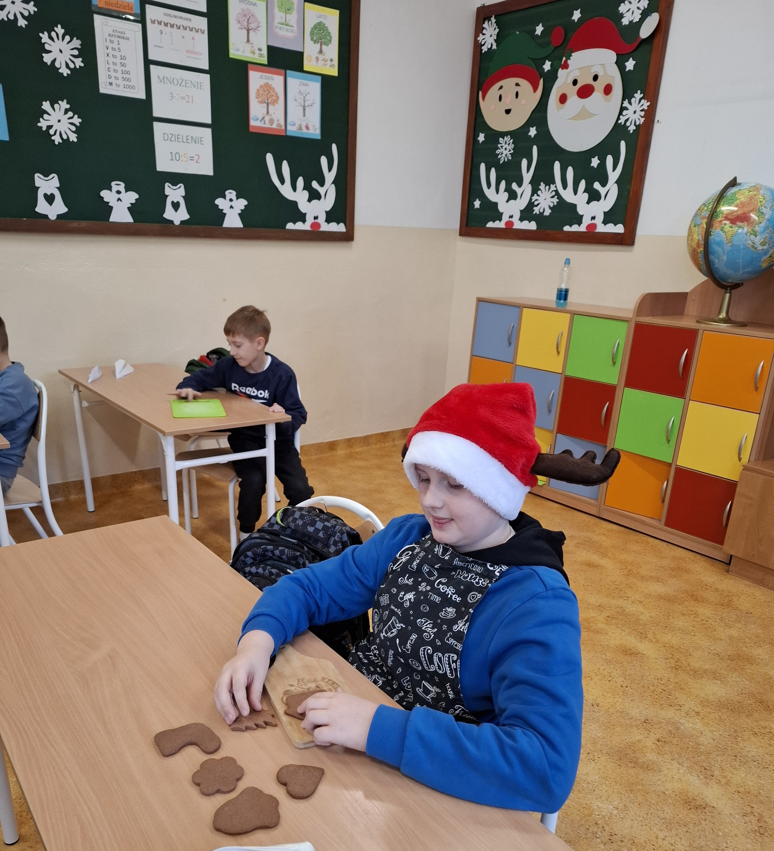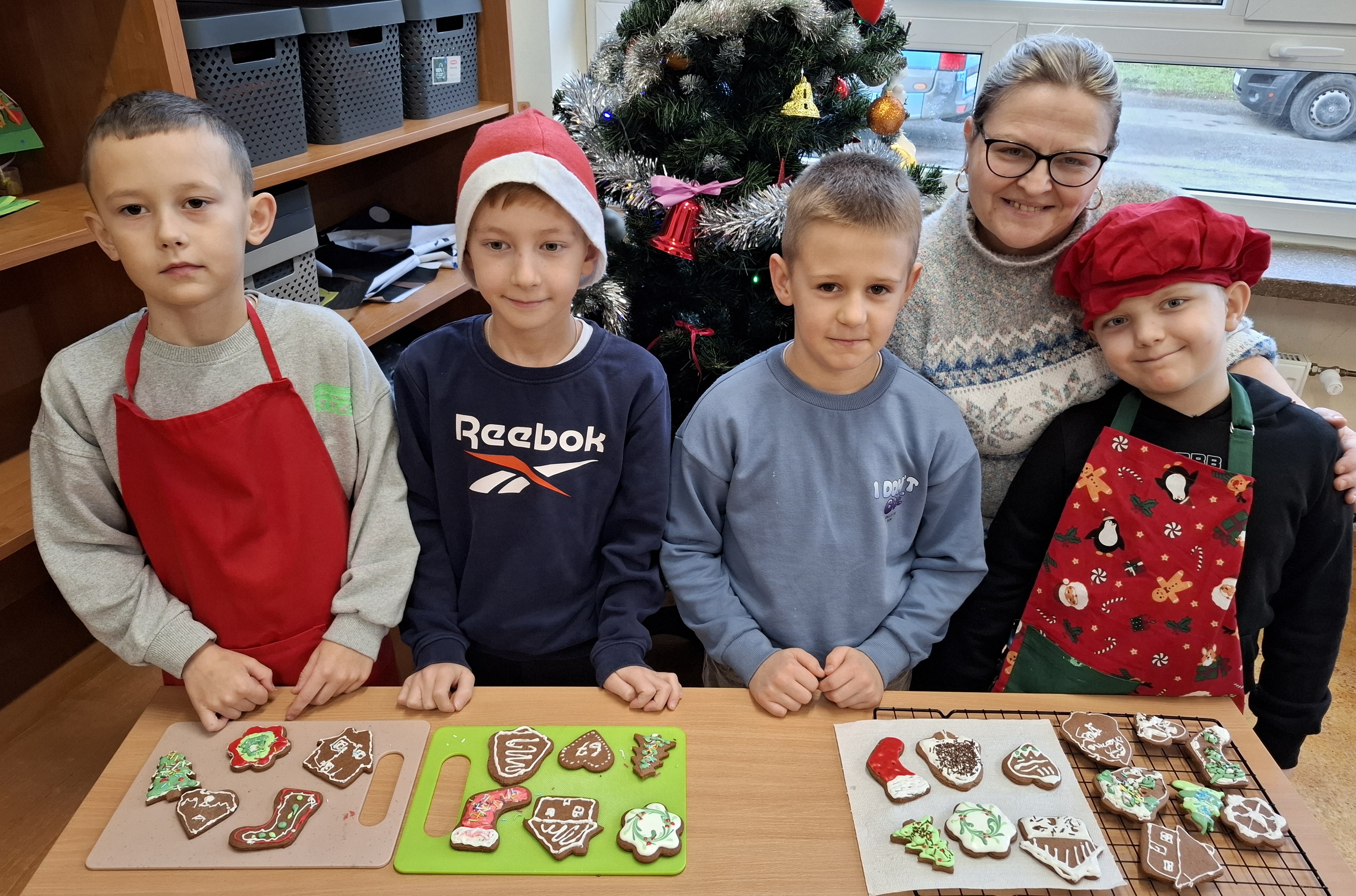 W Polsce już w XII wieku wyrabiano ciasto z miodem. 200 lat później przyprawiono je ostrymi, wonnymi korzeniami: pieprzem, goździkami, imbirem i cynamonem. To były już prawdziwe pierniki. Pieczono je na szczególne uroczystości, także dla zdrowia. W XV wieku spopularyzowano produkcję piernika, a takie miasta jak Gdańsk, Toruń i Kraków zasłynęły z ich wybornego smaku. Ciasto zarabiano 20 lat wcześniej, aby długo leżakowało i przeszło aromatem. W XVII i XVIII wieku pierniki zdobyły najwyższe uznanie. Pieczono nie tylko dla smaku i zdrowia, lecz także dla zabawy. Dla przybliżenia niezwykłej piernikowej tajemnicy przyrządzania średniowiecznych piernikowych delicji, zaprosiliśmy do naszej klasy mamę jednego z chłopców, panią Marię, która zapoznała uczniów z recepturą piernikowego ciasta, jak również wyczarowała aromatyczne pierniki o przeróżnych kształtach. Drugoklasiści własnoręcznie je udekorowali wyjątkowymi wzorami z błyszczącego lukru. Wykazali się ogromnym zaangażowaniem i kreatywnością. Było przy tym dużo śmiechu i zabawy. W czasie zajęć wszyscy degustowali korzenne ciasteczka. Warsztaty dekorowania pierników to doskonała okazja, by poczuć magię nadchodzących świąt i stworzyć własne, słodkie ozdoby świąteczne. Każdy uczestnik opuścił lekcję z piękną i smaczną pamiątką w dłoniach! Szczególne podziękowania, kierujemy do naszego gościa – pani Marii.