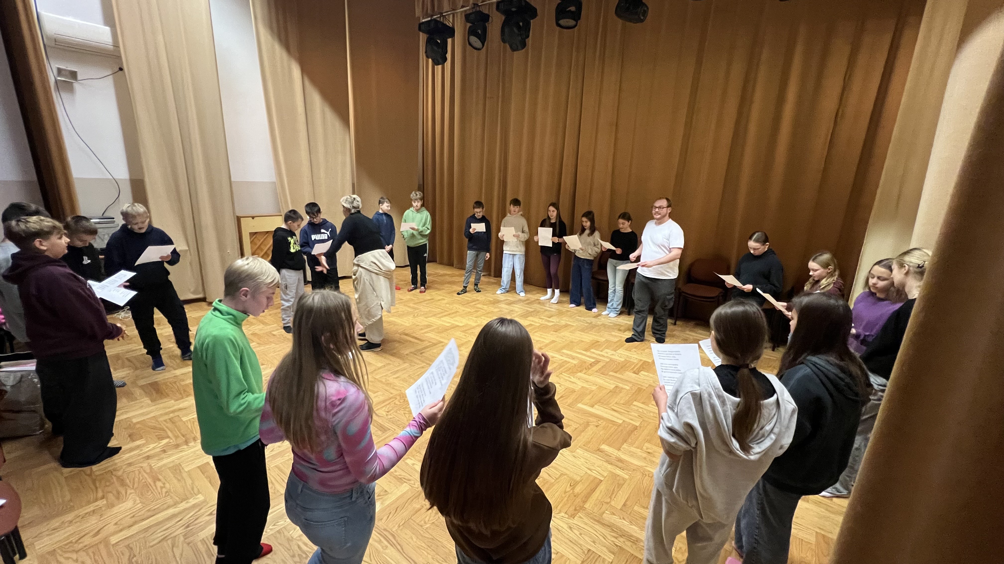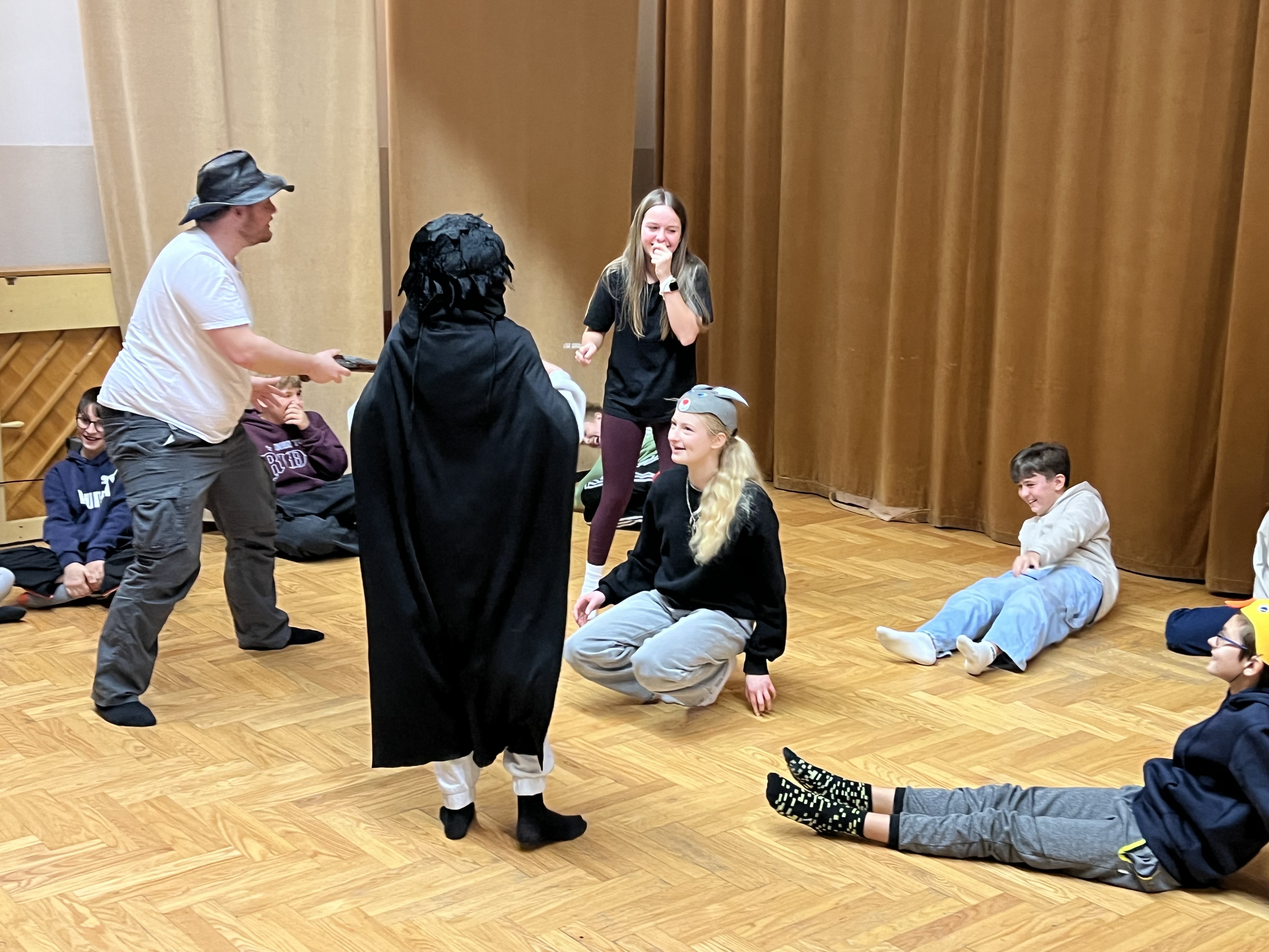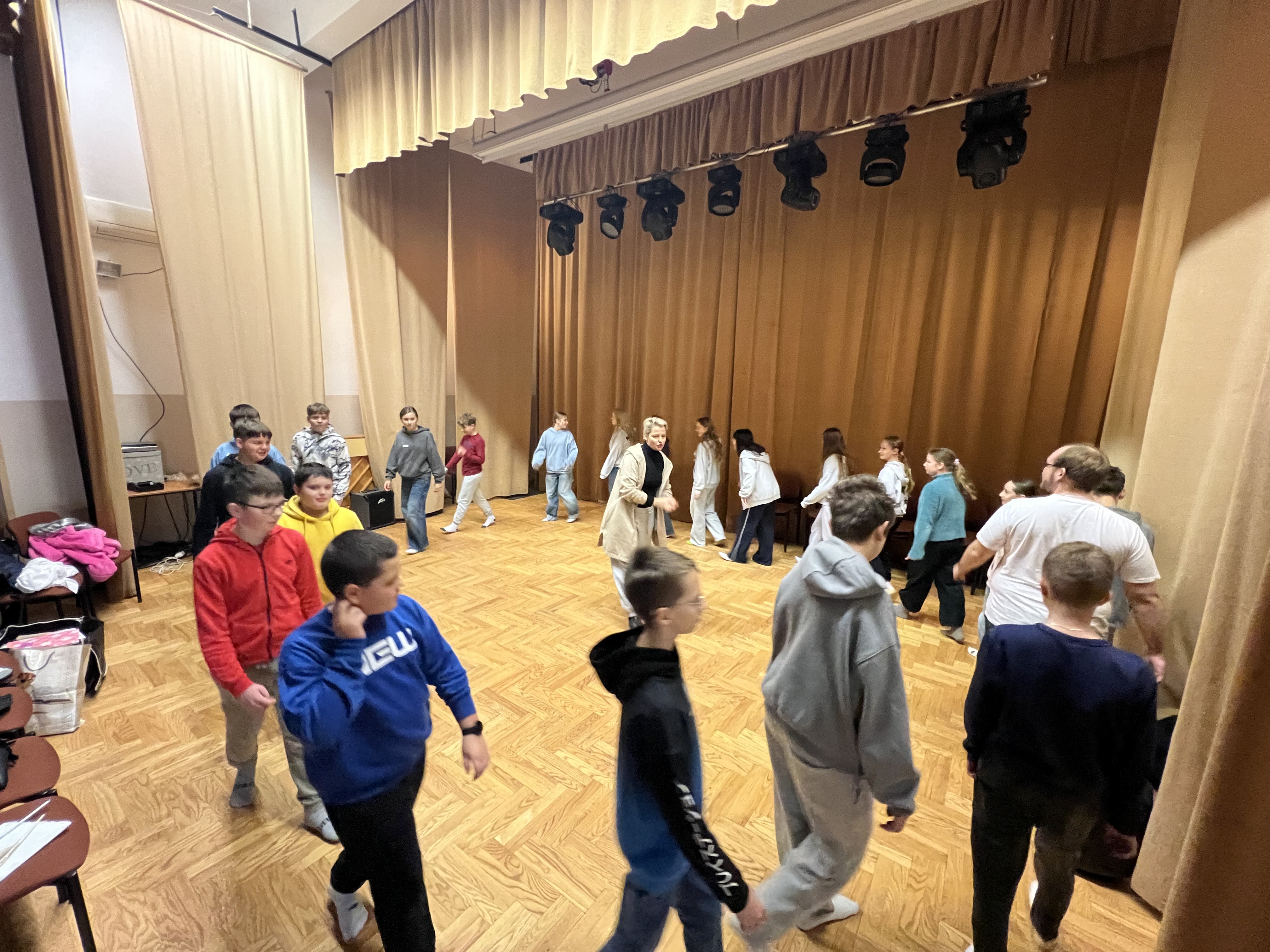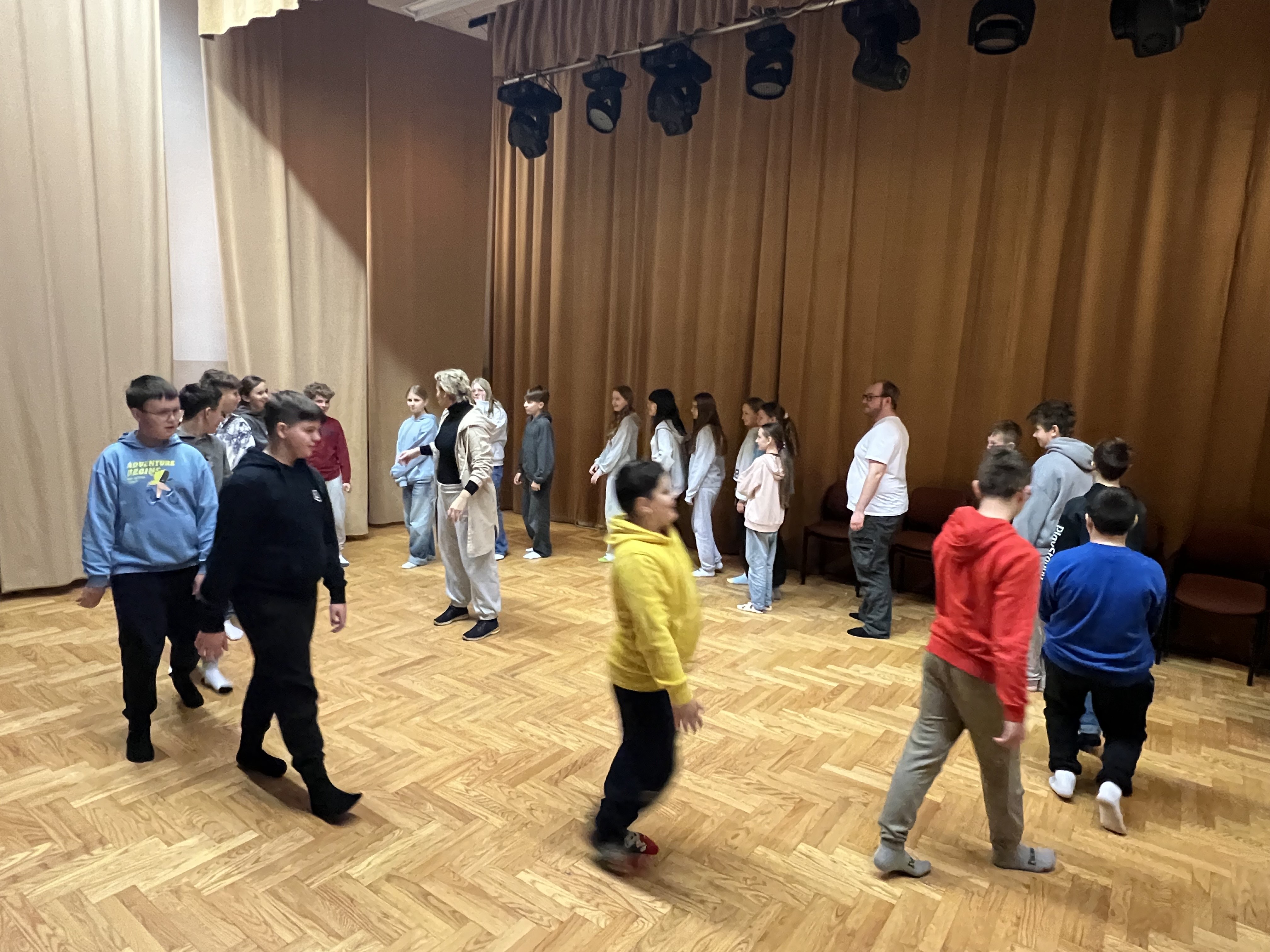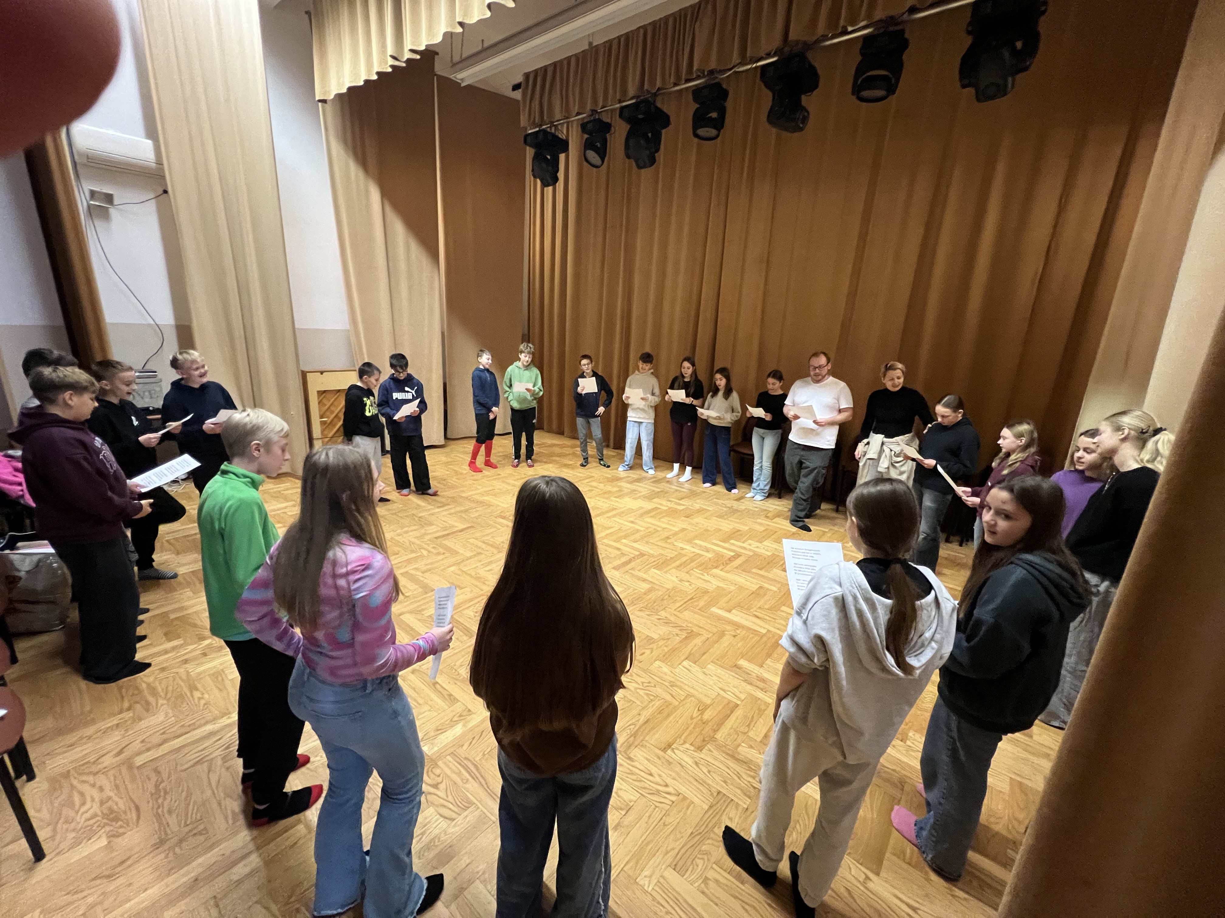 Uczniowie mogli wziąć udział w warsztatach dzięki uczestnictwu szkoły w rządowym programie „Wyjście z klasą”, którego celem jest uatrakcyjnienie procesu edukacyjnego poprzez organizowanie zajęć poza murami szkoły oraz rozwijanie kompetencji społecznych i kulturalnych dzieci i młodzieży. Program ten umożliwia uczniom zdobywanie nowych doświadczeń, rozwijanie pasji oraz odkrywanie talentów w różnorodnych dziedzinach. Podczas warsztatów teatralnych dzieci brały udział w ćwiczeniach ruchowych, improwizacjach aktorskich oraz zabawach integracyjnych, które sprzyjały rozwijaniu wyobraźni, kreatywności i umiejętności współpracy w grupie. Artyści z grupy Krak Art w przystępny i angażujący sposób wprowadzali uczestników w podstawy pracy aktora, ucząc ich wyrażania emocji, pracy z głosem oraz świadomego poruszania się na scenie.