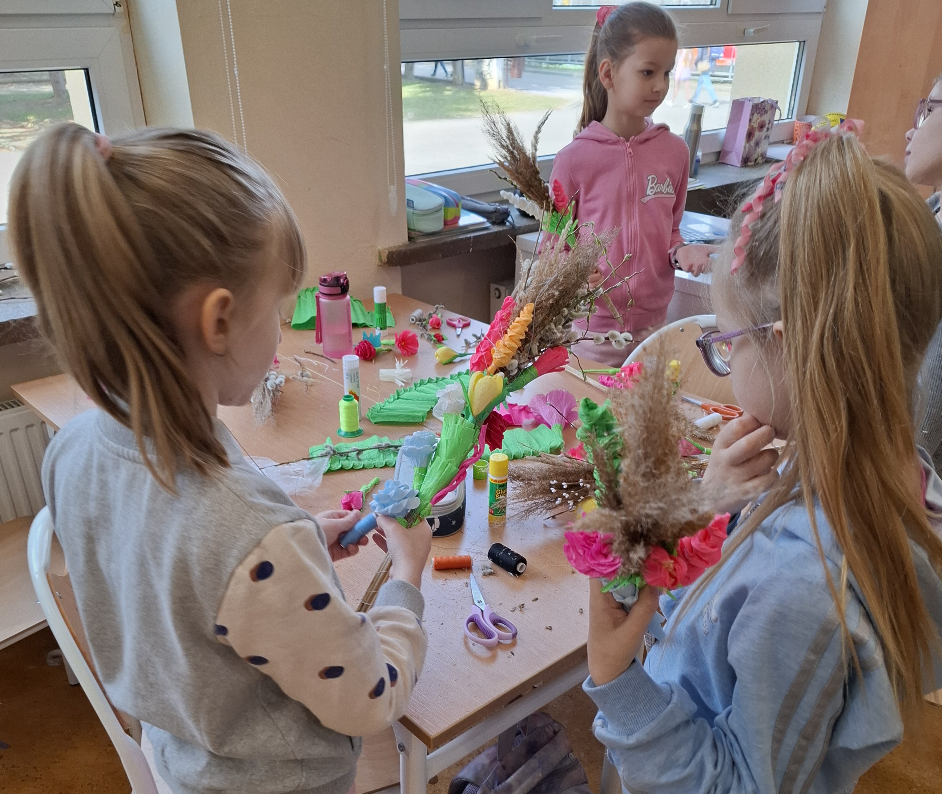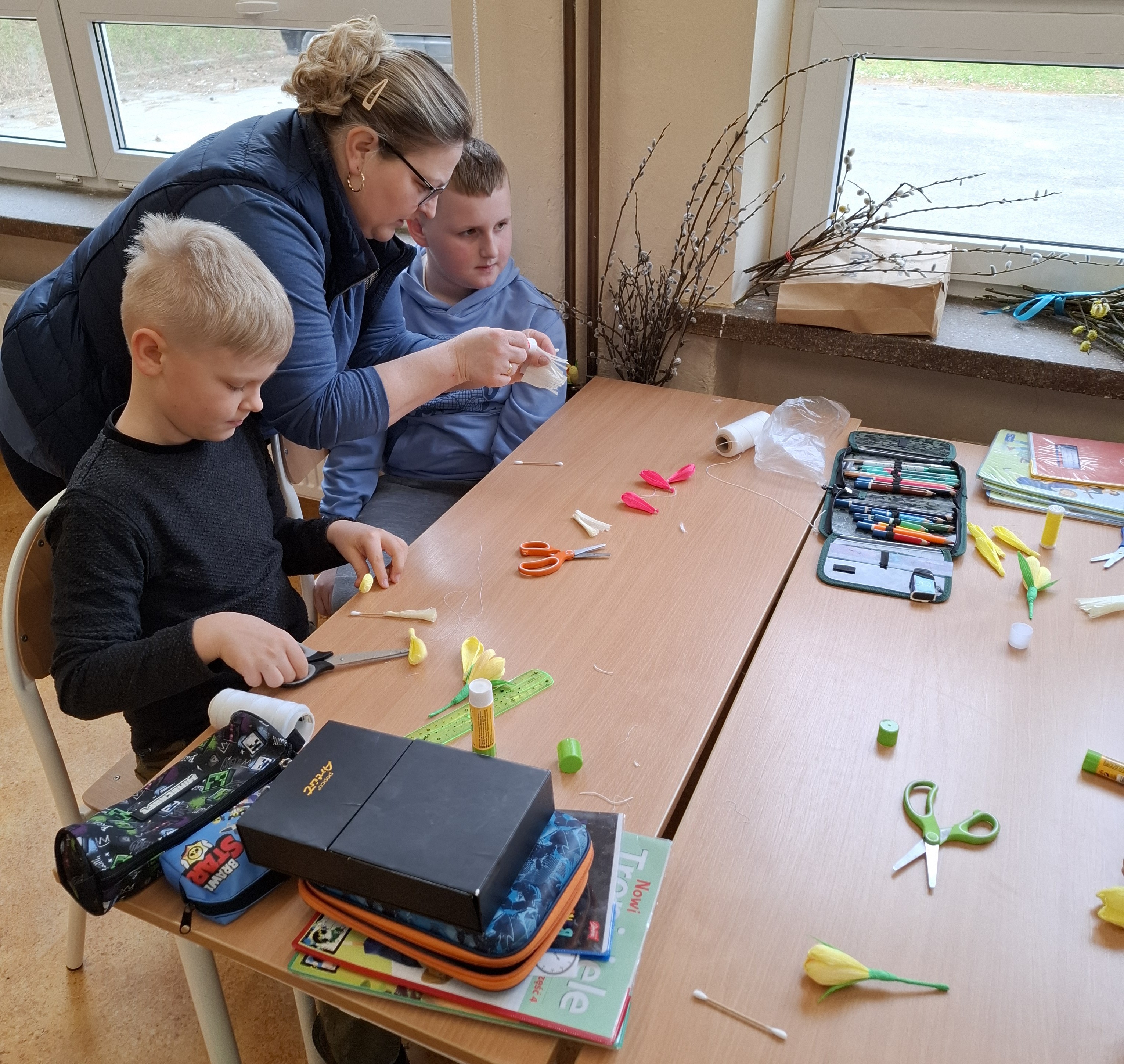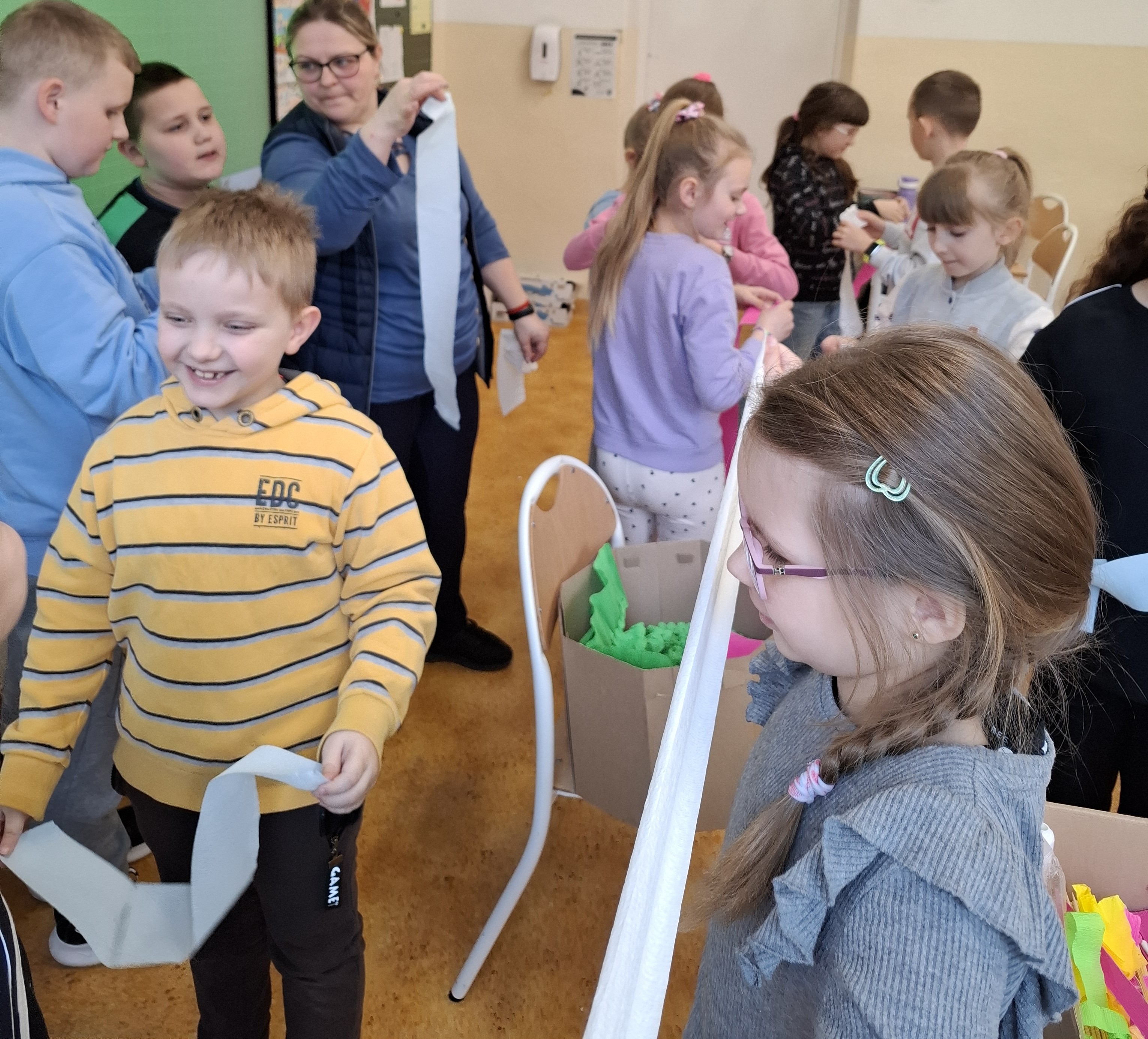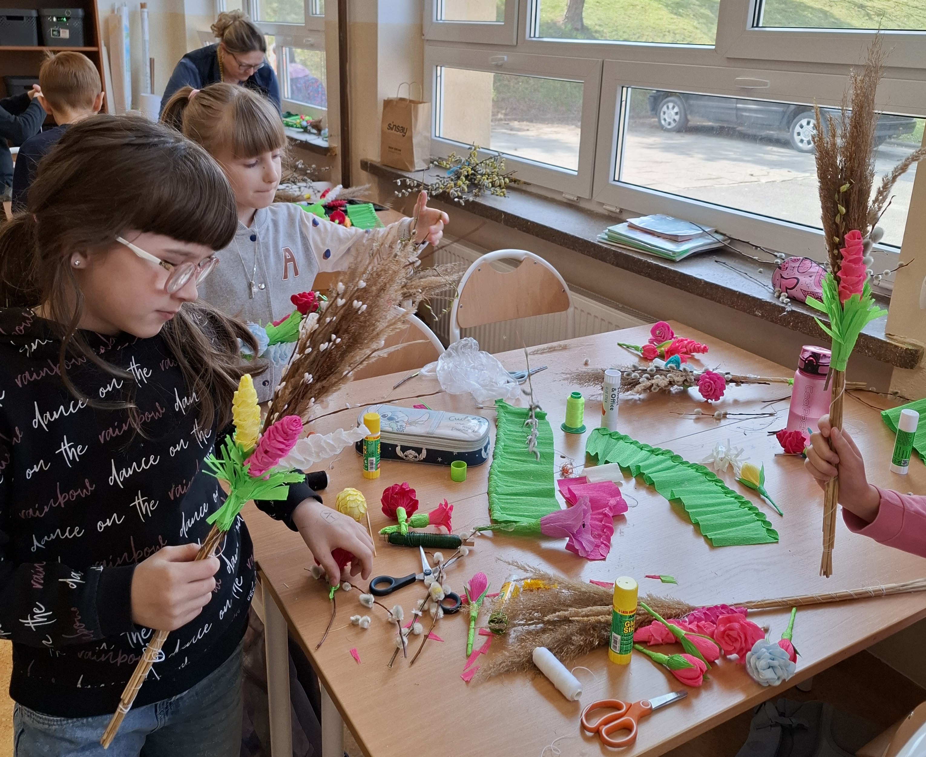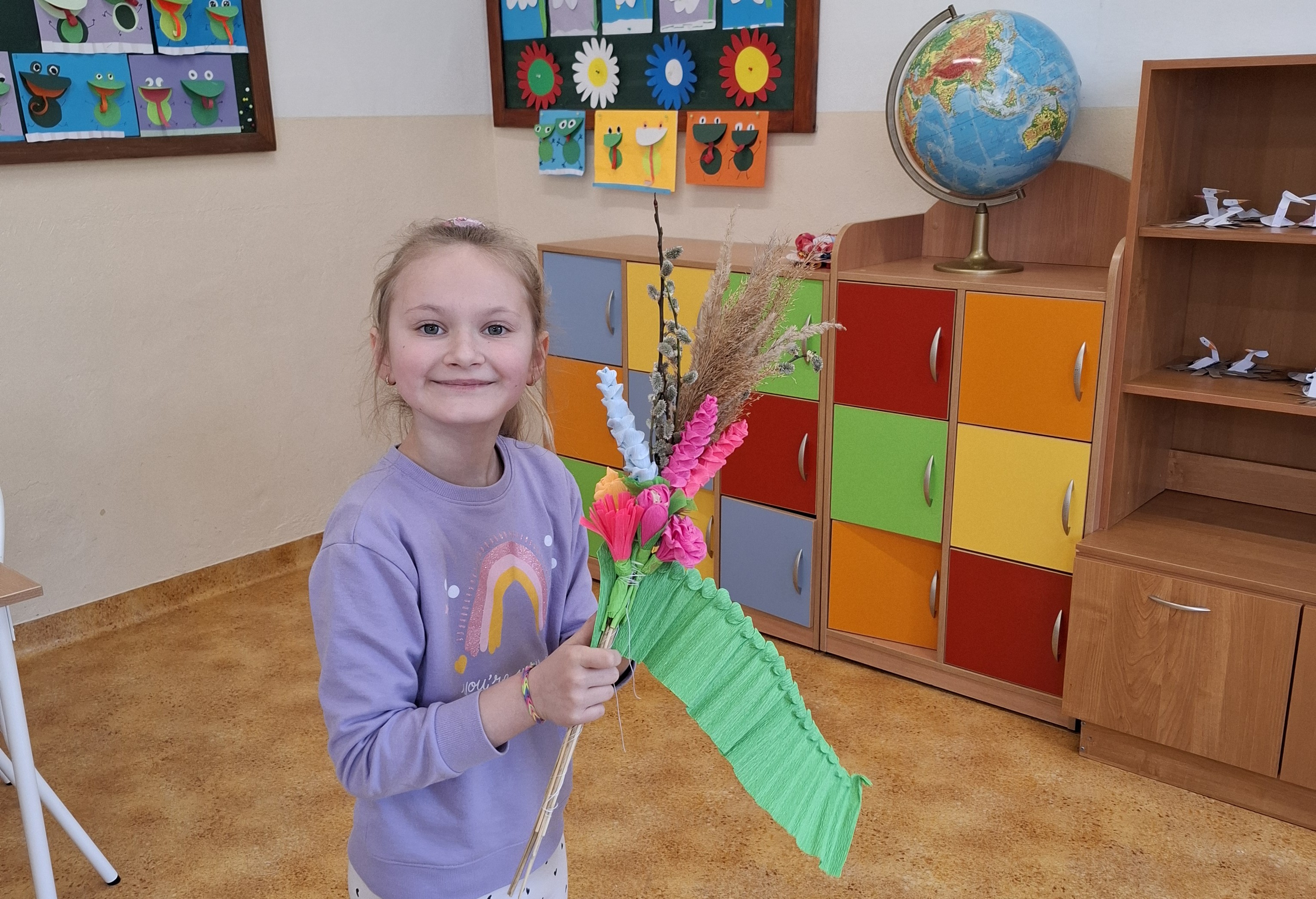 To już kolejny raz, gdy do klasy 2c zawitała mama jednego z naszych uczniów, pani Maria. Krok po kroku przedstawiła drugoklasistom technikę wykonania palmy wielkanocnej. Dzieci wykorzystały do zrobienia rękodzieła różne materiały plastyczne i ekologiczne. Wykonanie palmy było pracochłonne, ale sprawiło uczniom dużo frajdy i satysfakcji. Uczniowie klasy 2c bardzo dziękują pani Marii za poświęcony czas oraz przekazanie informacji na temat tradycji wielkanocnych