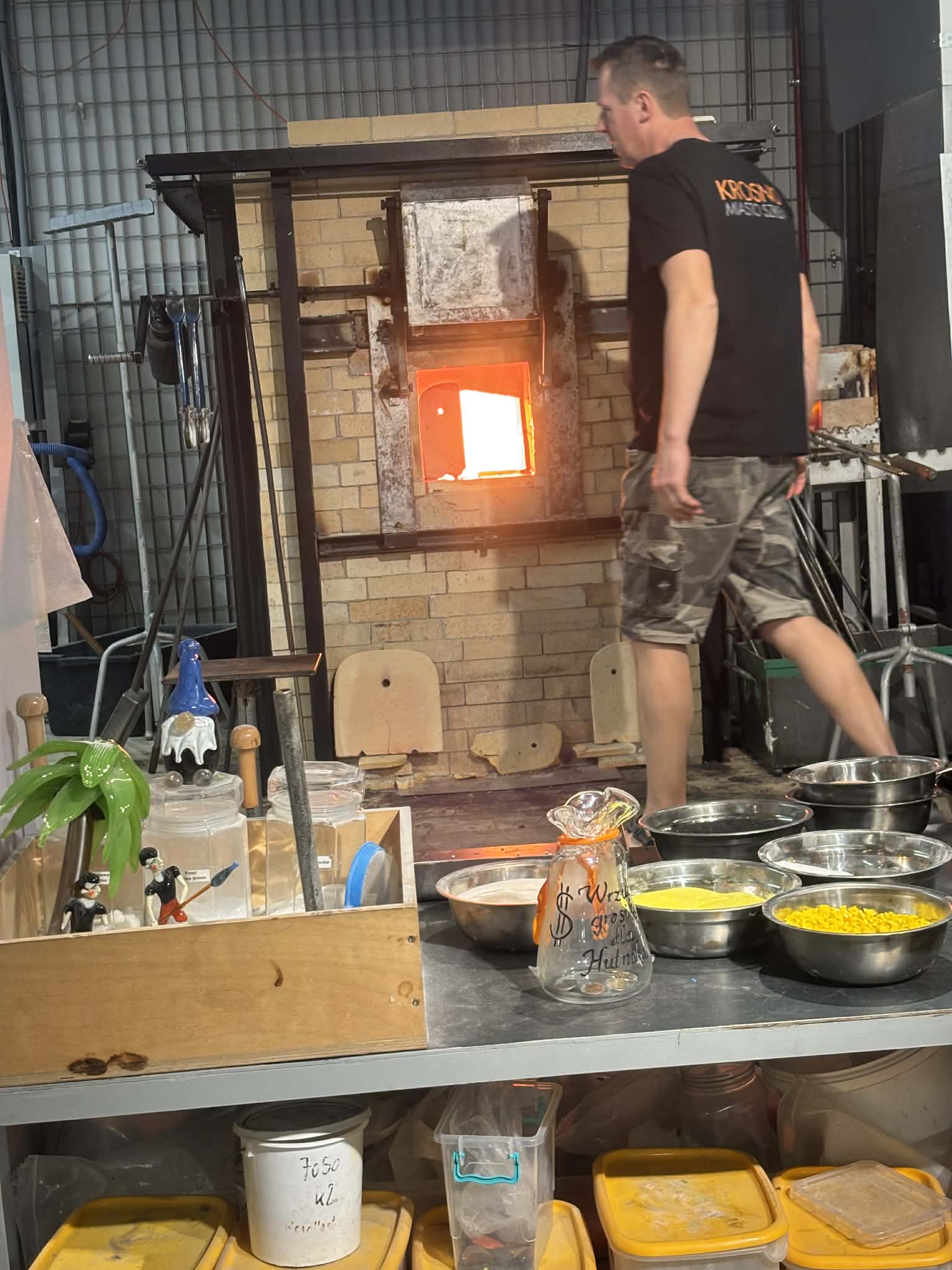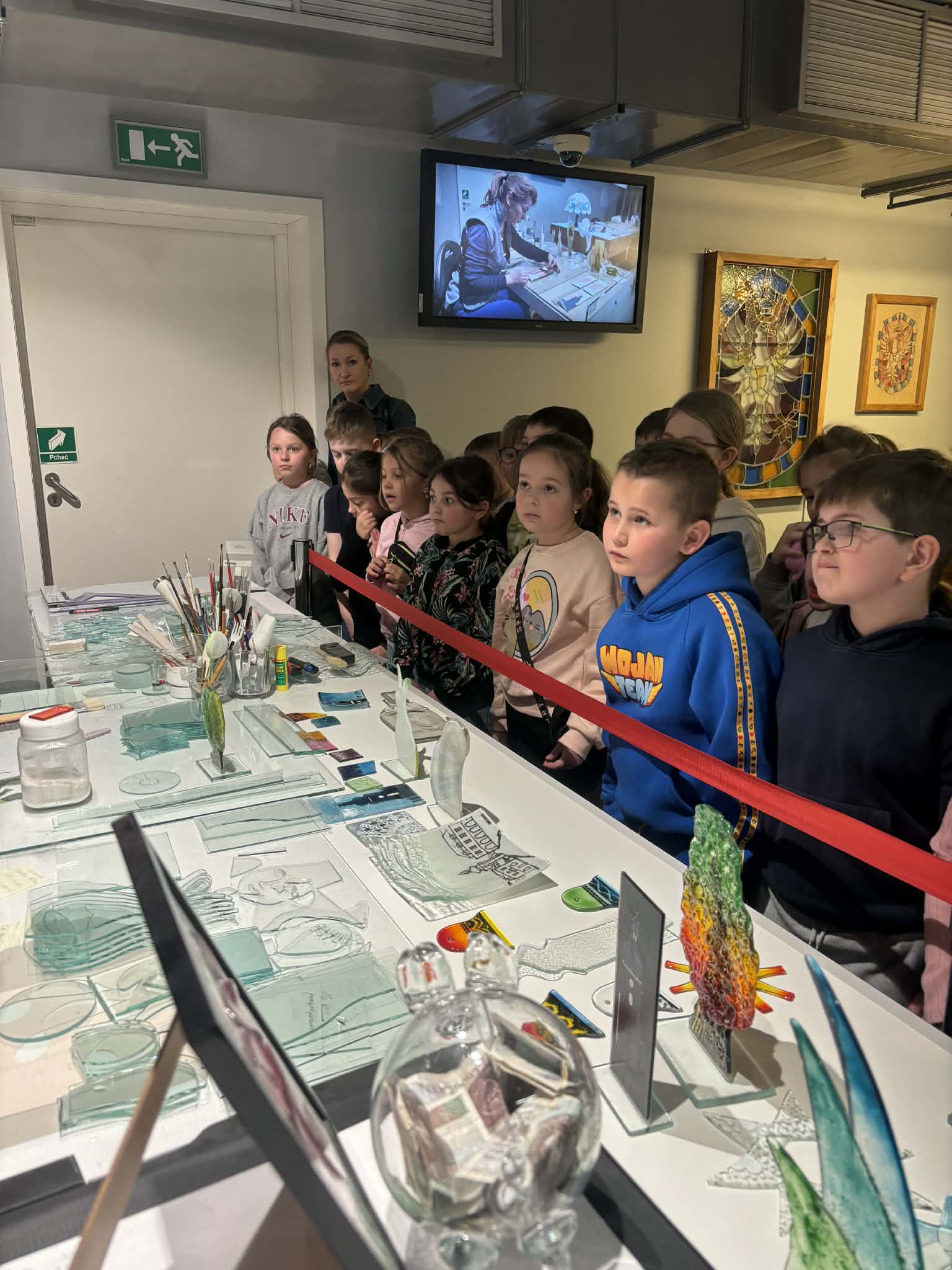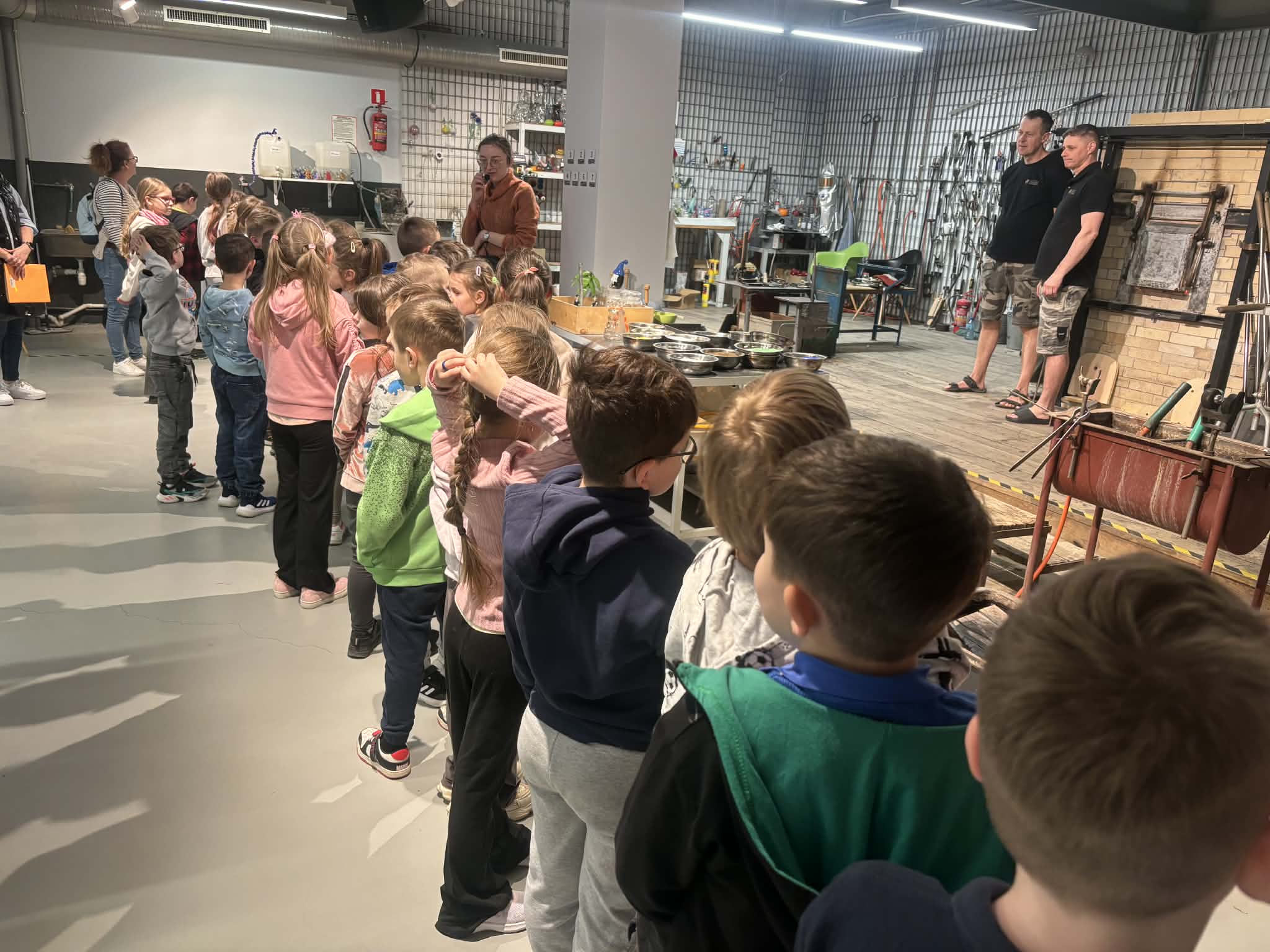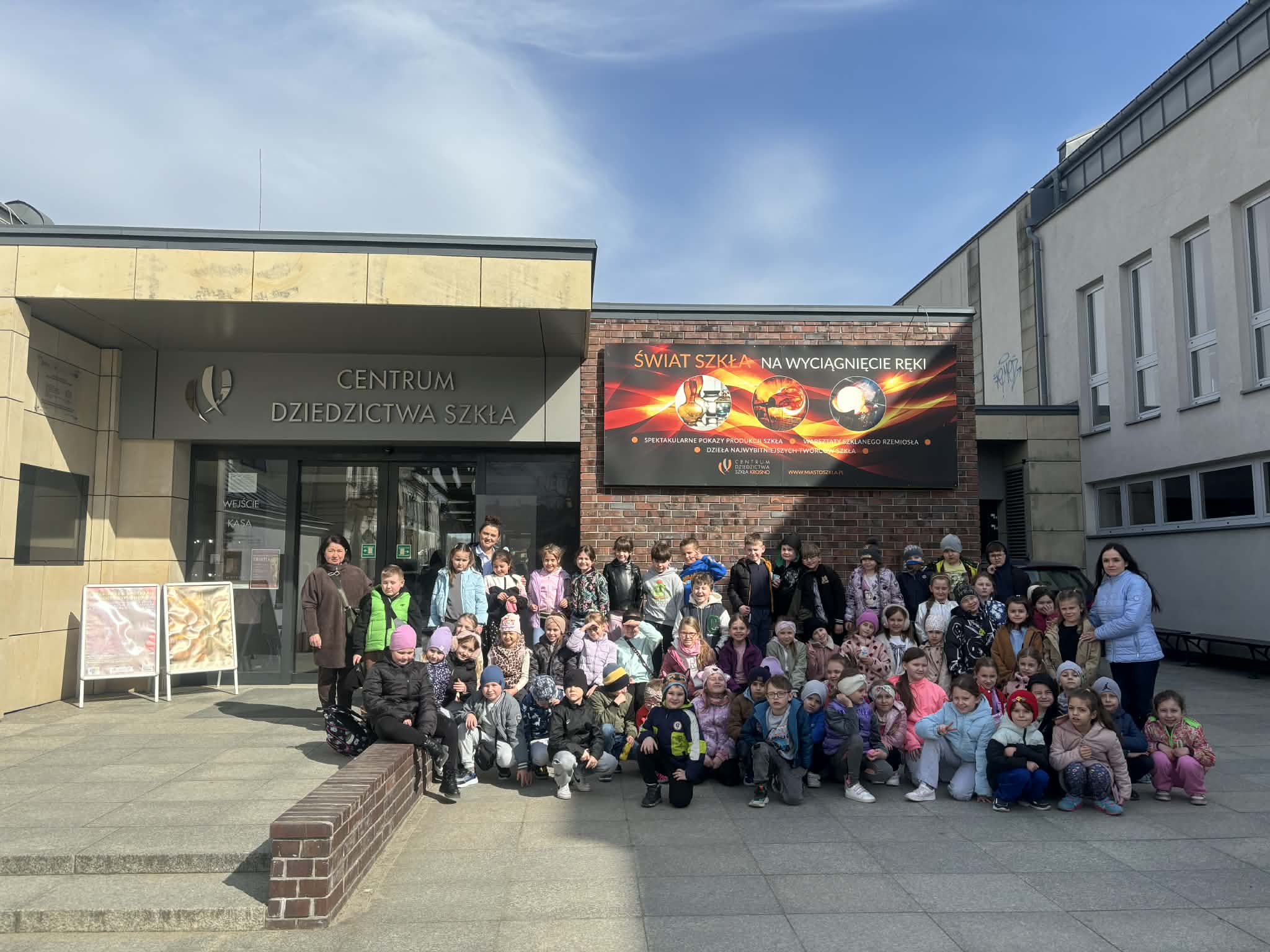 Kolejnym etapem wycieczki była wizyta w Centrum Dziedzictwa Szkła w Krośnie. Uczniowie mieli okazję zobaczyć, jak powstają niezwykłe szklane przedmioty. Podczas zwiedzania poznali etapy wytwarzania szkła – od surowca aż do gotowego produktu. Z dużym zainteresowaniem obserwowali pracę rzemieślników oraz działanie specjalistycznych maszyn wykorzystywanych w procesie produkcji szkła.